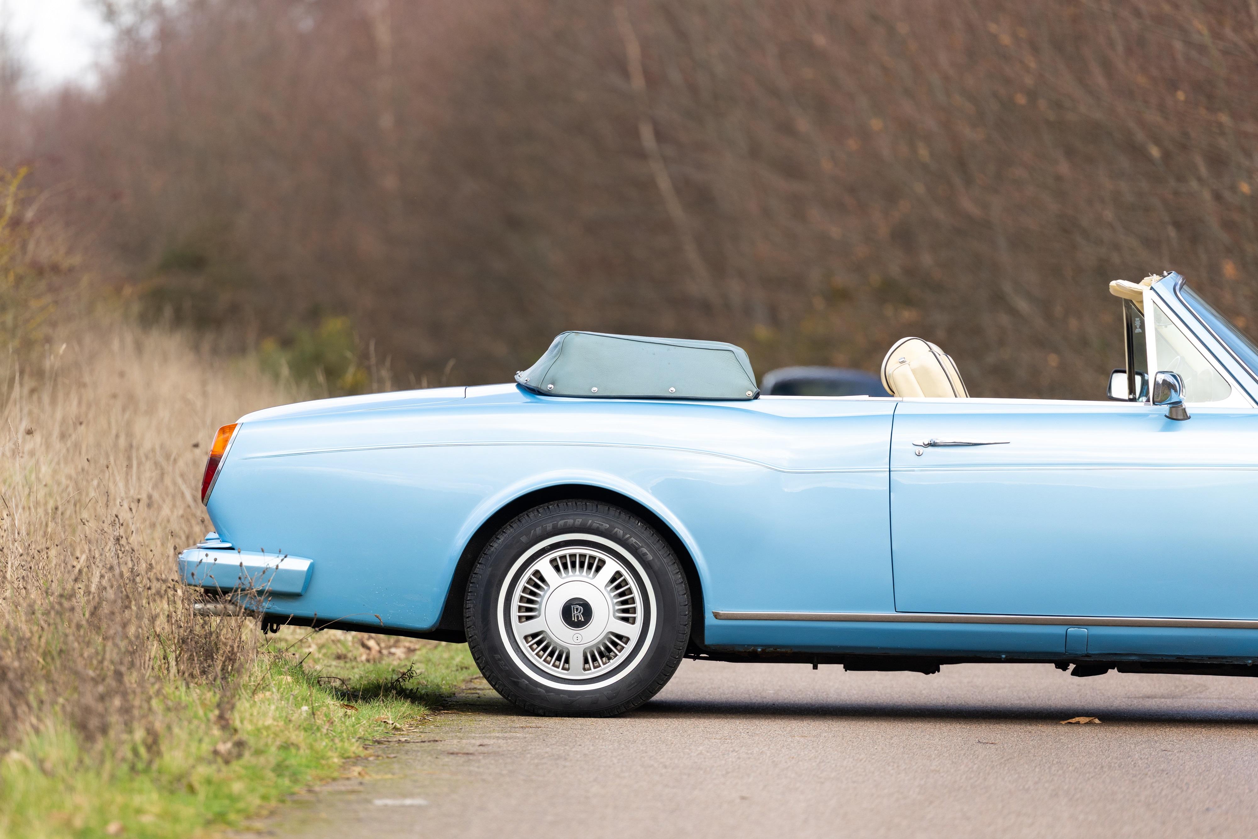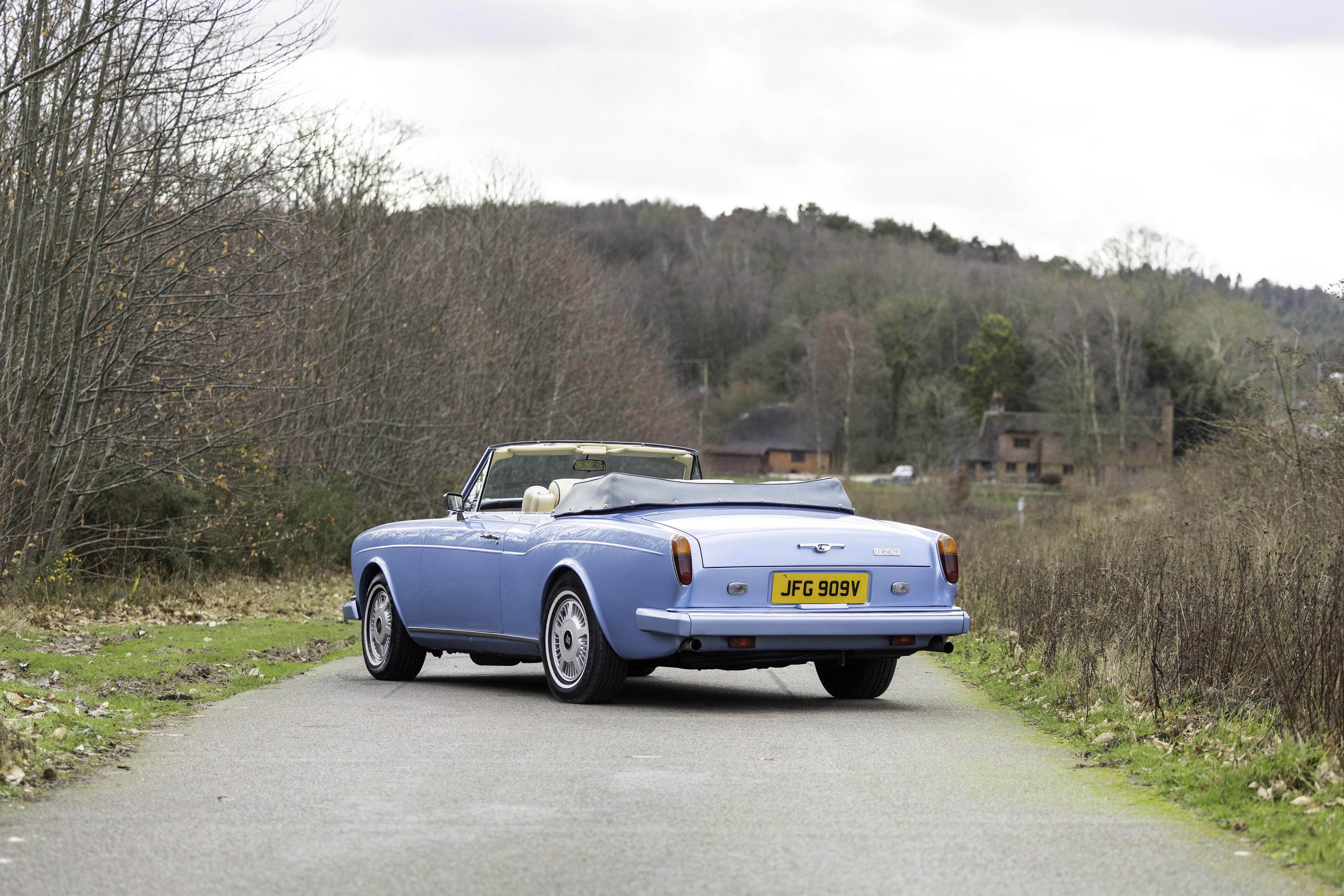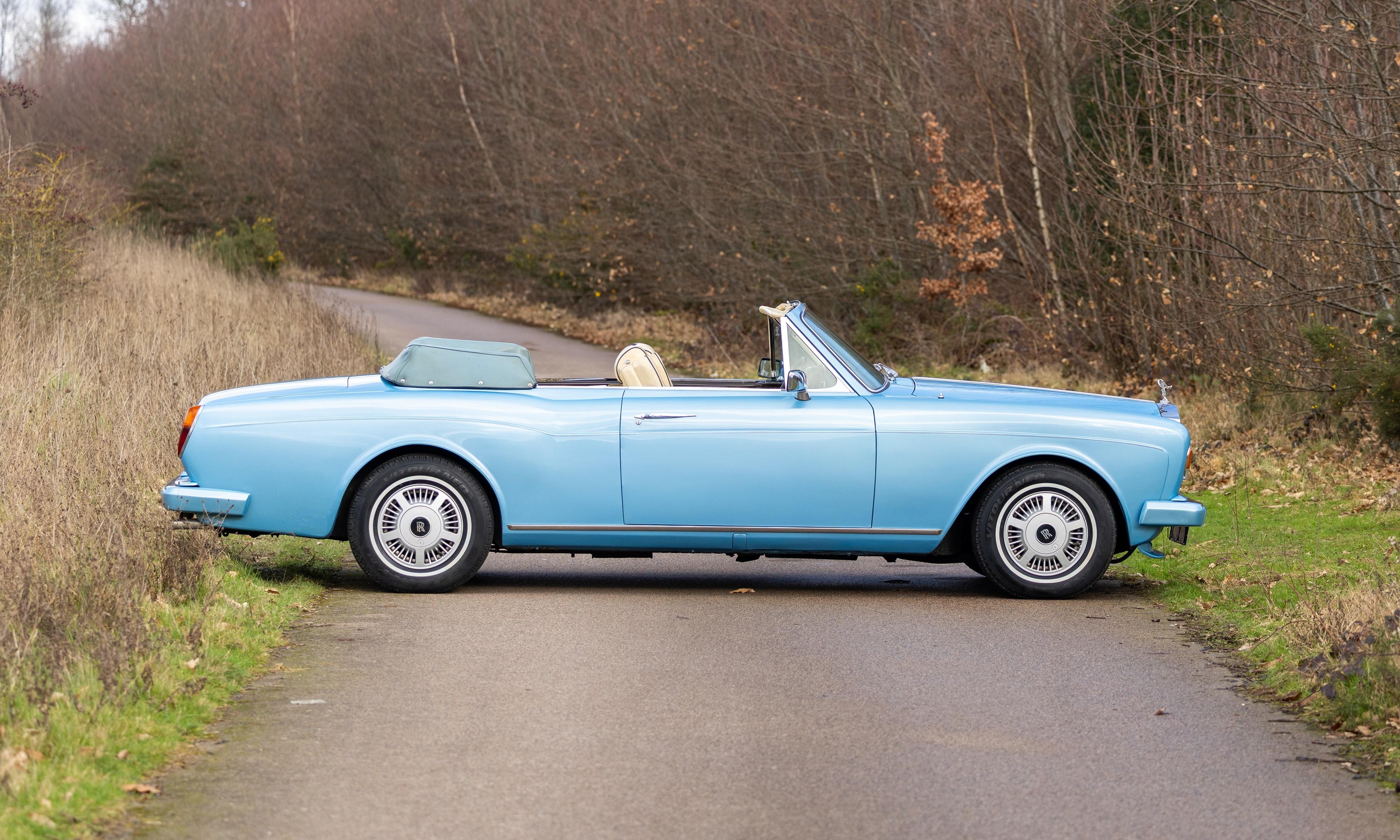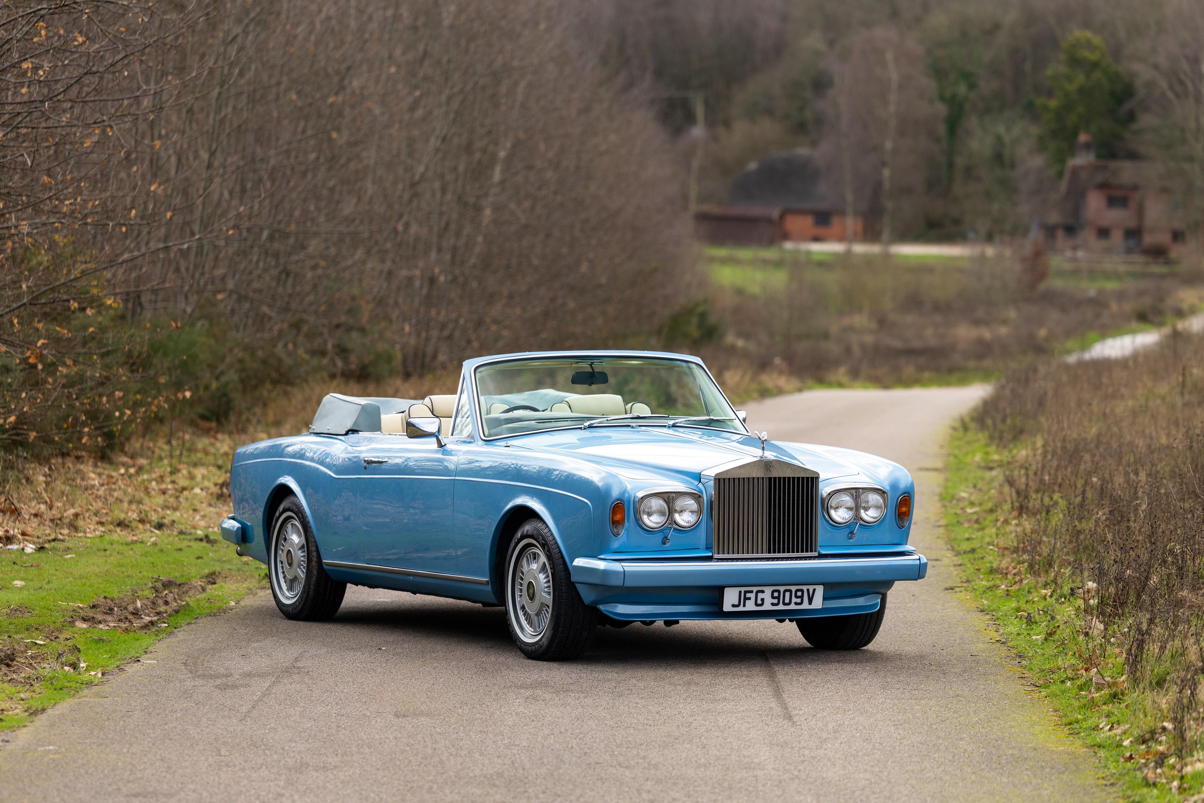 This wonderful example is offered in blue coachwork with a cream leather interior and looks fantastic. Registered new on 22nd April 1980 it comes complete with its original registration number 'JFG 909V' and is presented in good condition throughout, the paintwork shows little sign of age, and the interior is well presented and benefits from an upgraded radio. Accompanying the car is a sizeable history file which contains original maintenance books and many bills and invoices totalling over £25,000. Notable works undertaken include fitment of an upgraded fuel injected engine, along with many MoT records, and various general servicing and maintenance invoices. In February 2026, this Corniche was treated to further maintenance and a major service which included replacement spark plugs, an oil and filter change, new suspension spheres fitted to the front end, four new tyres balanced and fitted, and a fresh MoT test certificate valid until March 2026. At this time the Rolls-Royce was also road tested and is reported to be in very good running and driving condition. The car has been used and enjoyed as intended throughout its life and has been entered into various classic car shows, where it has consistently performed very well. Dry stored and always kept trickle charged, this fantastic looking example will be driven to the auction by the vendor (circa 65 miles) and is ready to be enjoyed immediately by its new owner. Consigned by Daniel Godin