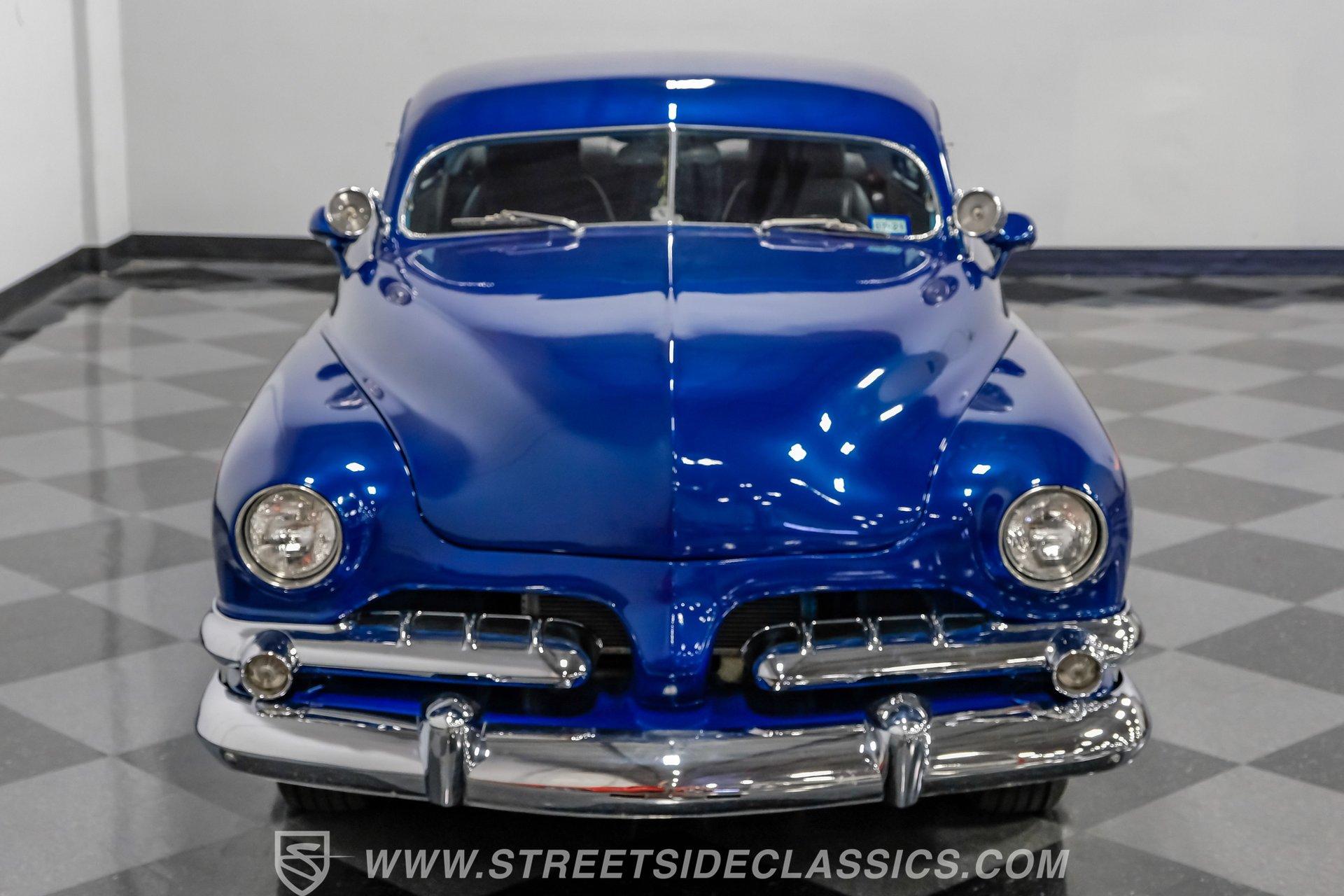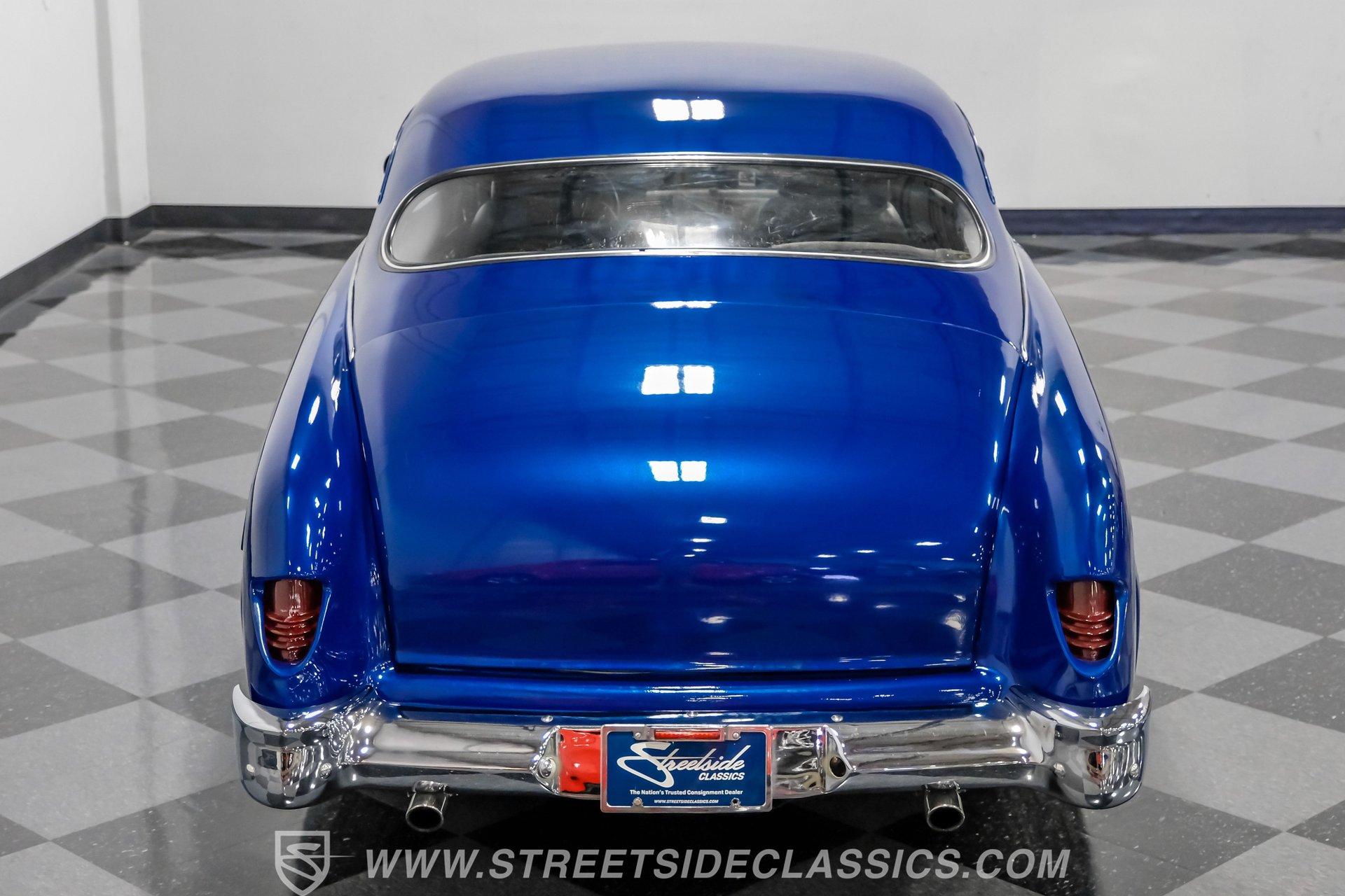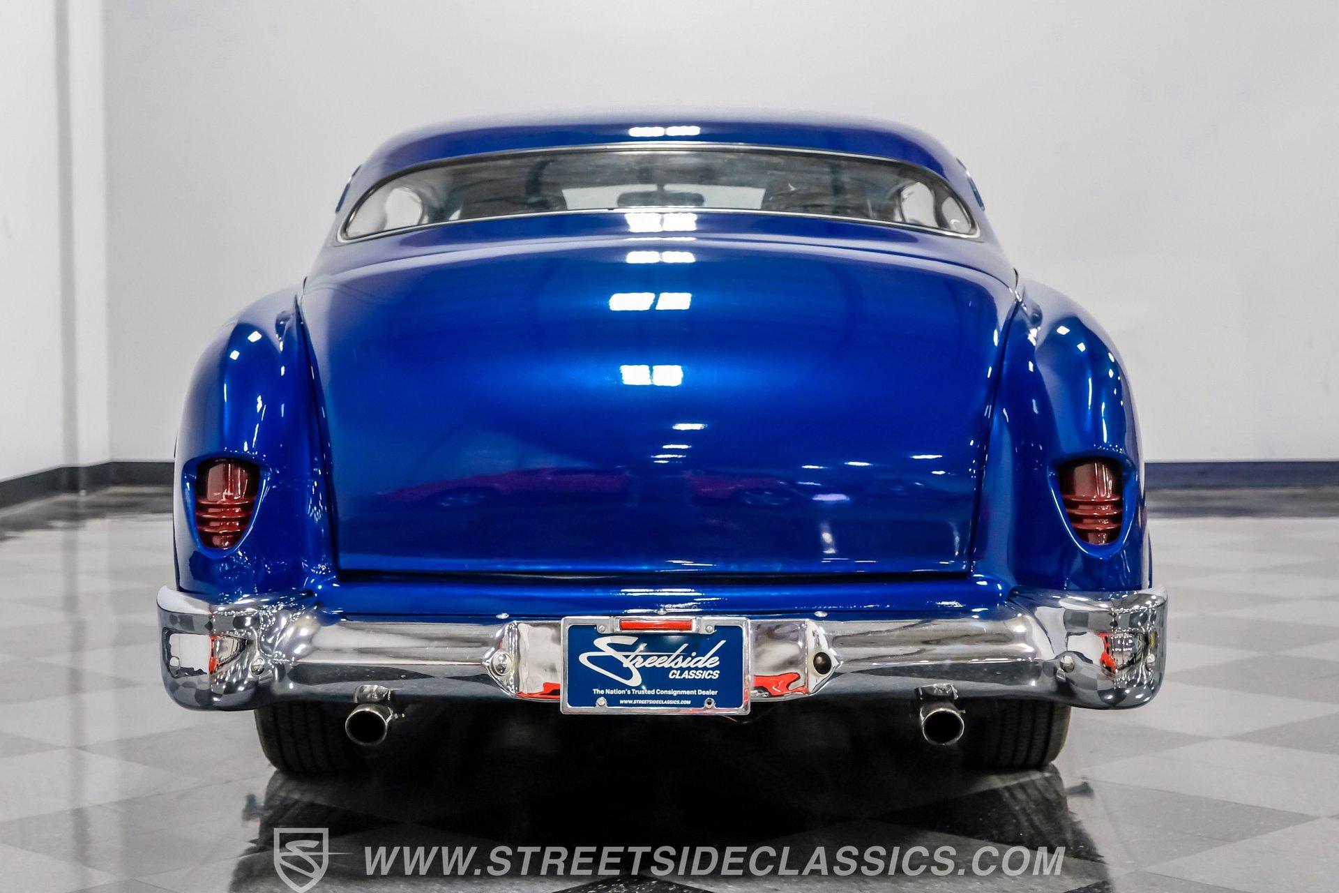 Owning a classic car means carrying a piece of history wherever you go. This 1951 Mercury Lead Sled Restomod brings that history to life with blue paint and red pinstriping applied two years ago, a 4.5-inch roof chop, Frenched headlights, rounded hood corners, a '55 Dodge front bumper and grille, and '55 Chevy taillights fitted with '54 Mercury lenses. Faux lake pipes and whitewall tires complete the vintage, custom look as it rolls down the road with unmistakable style.