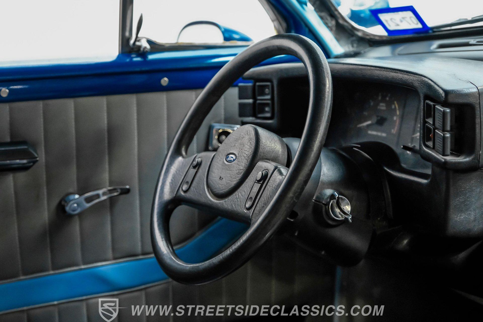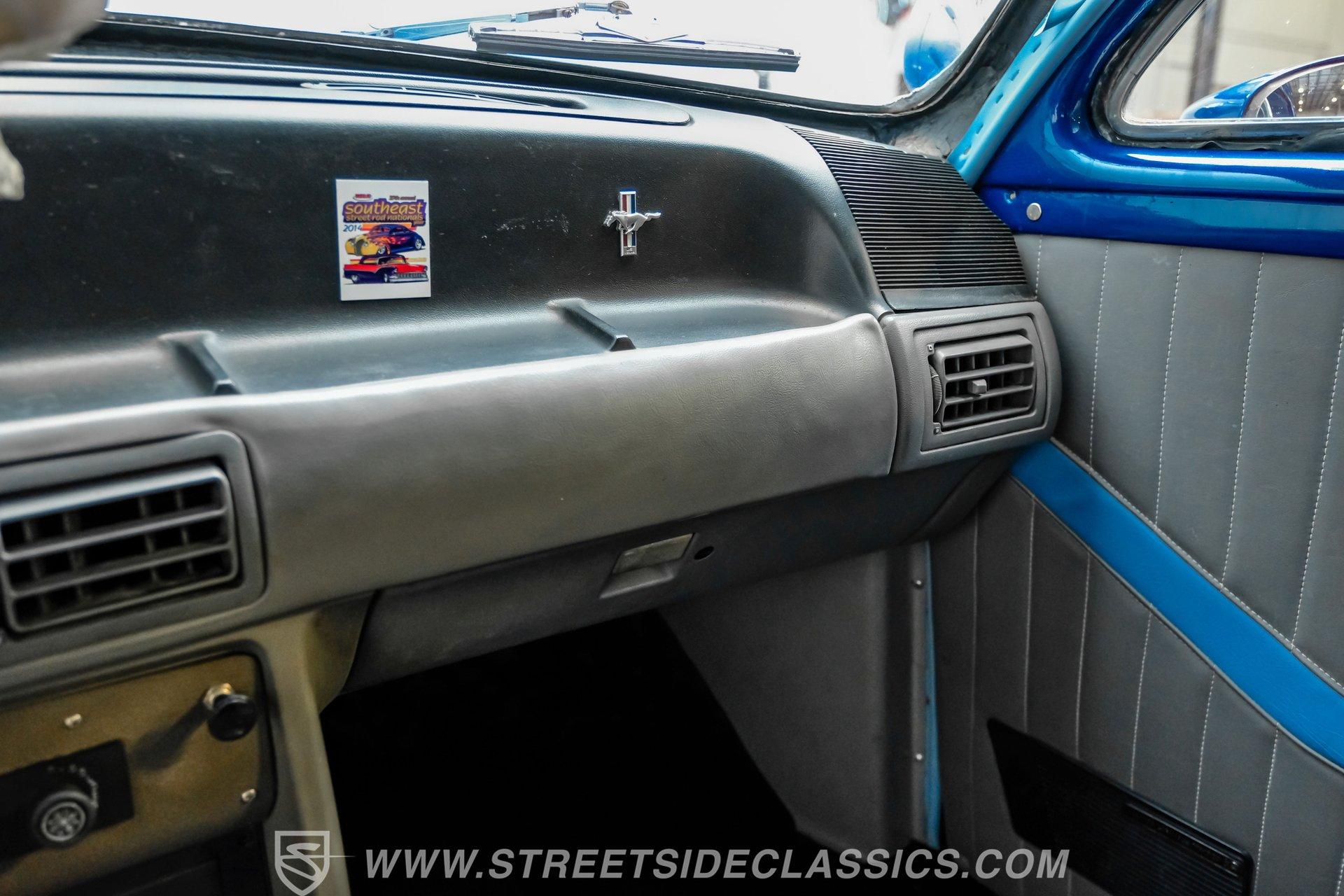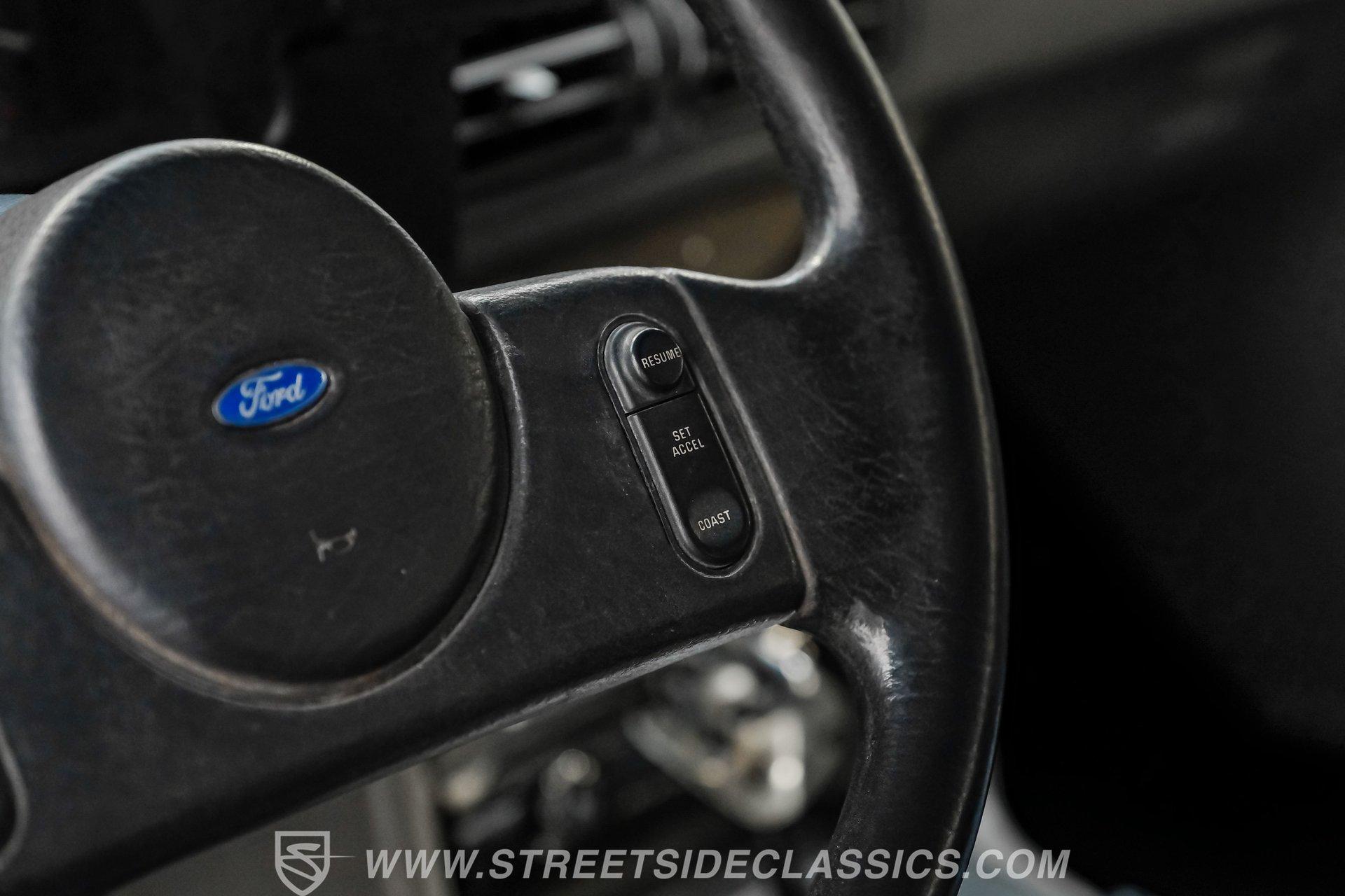 Beneath the hood, the drivetrain, including the 5.0-liter V8 engine, automatic transmission and rear end, is also sourced from the same 1989 Mustang, ensuring a harmonious blend of classic looks and modern muscle. The 5.0 delivers the kind of power and reliability that makes every drive a thrill and the four-speed automatic transmission with console shifter offers smooth, responsive performance. Power disc brakes in the front and power drums in the rear provide confident stopping power, while the Ford 7.5 rear axle and lowered factory-style suspension deliver a stable, enjoyable ride.