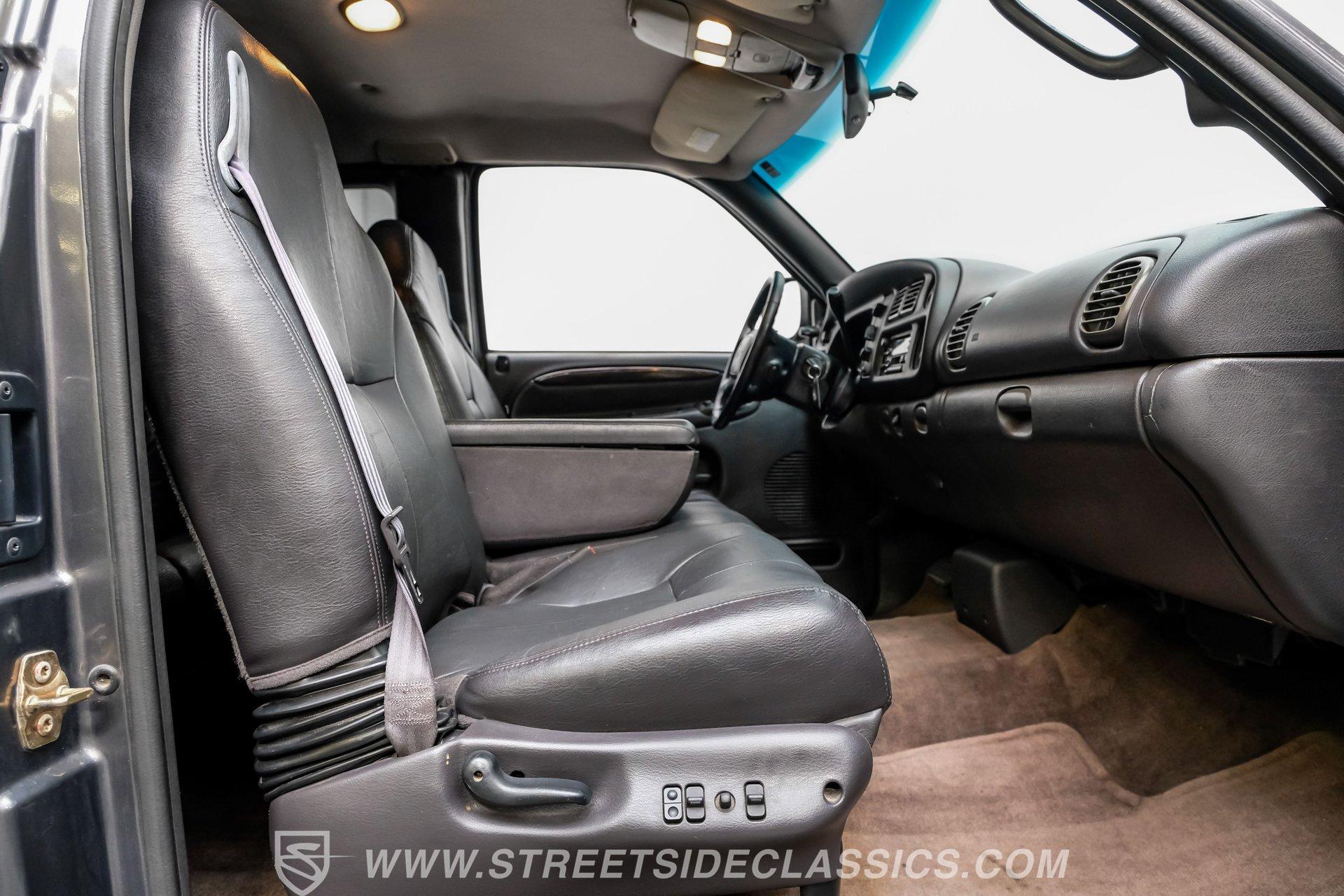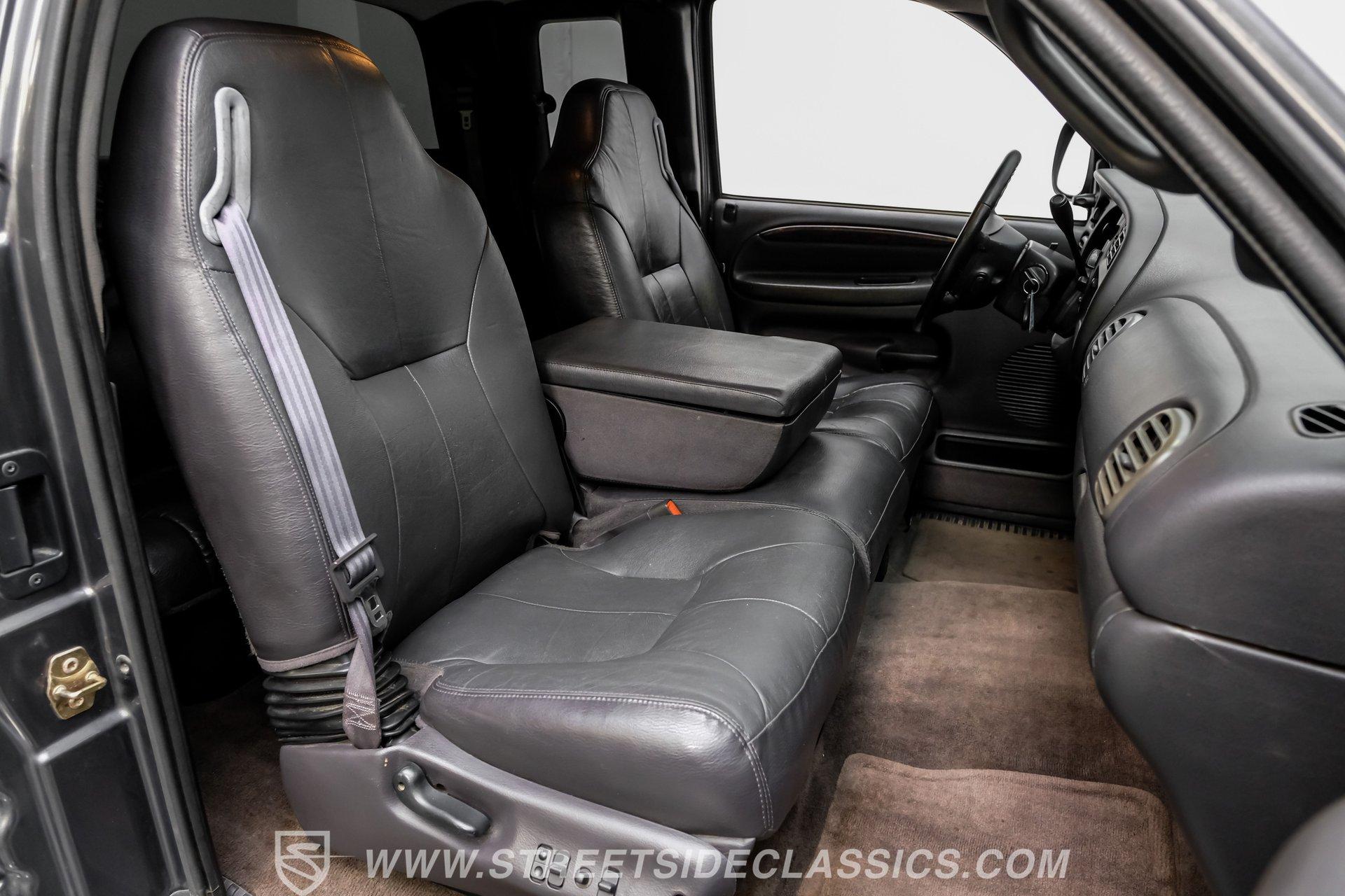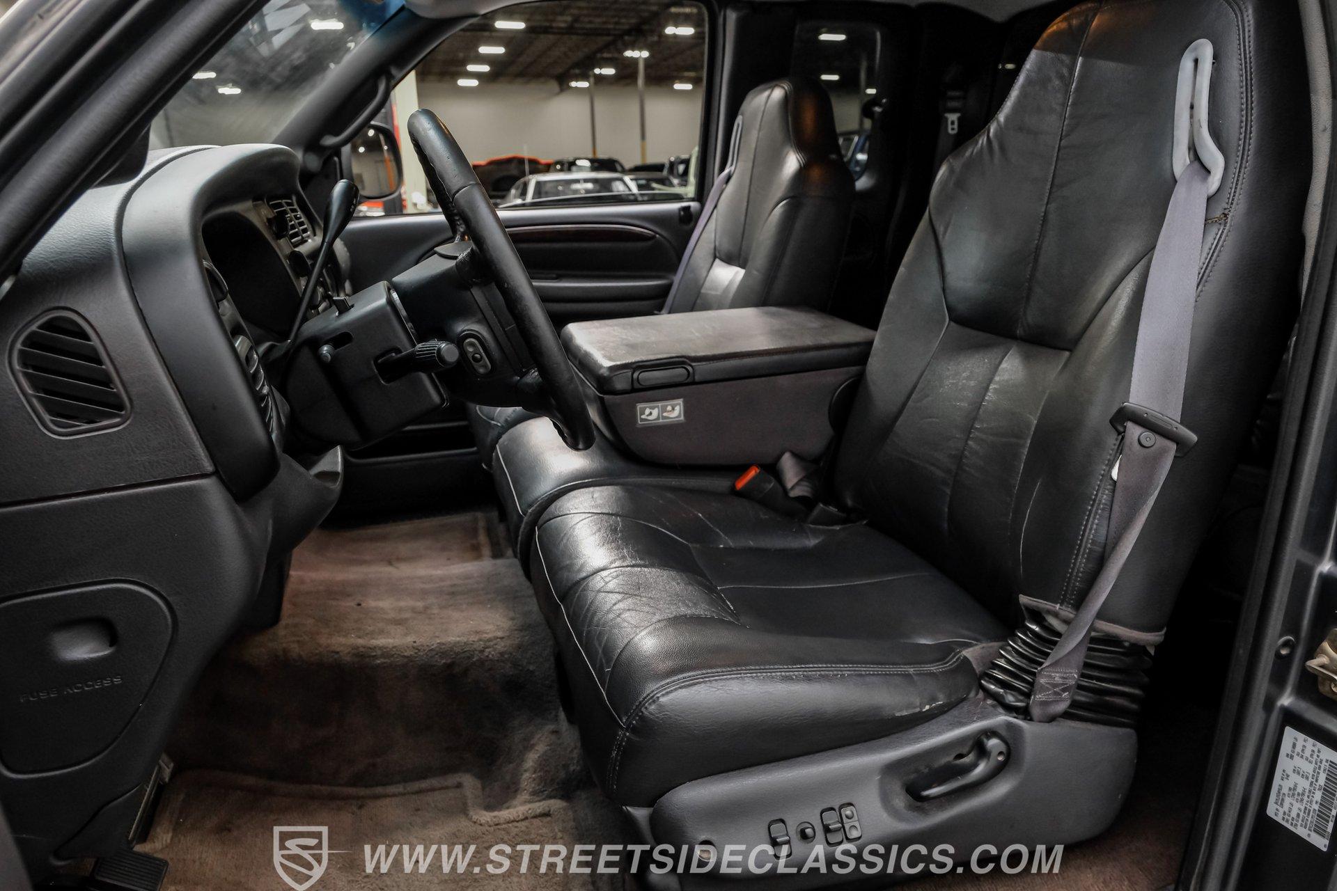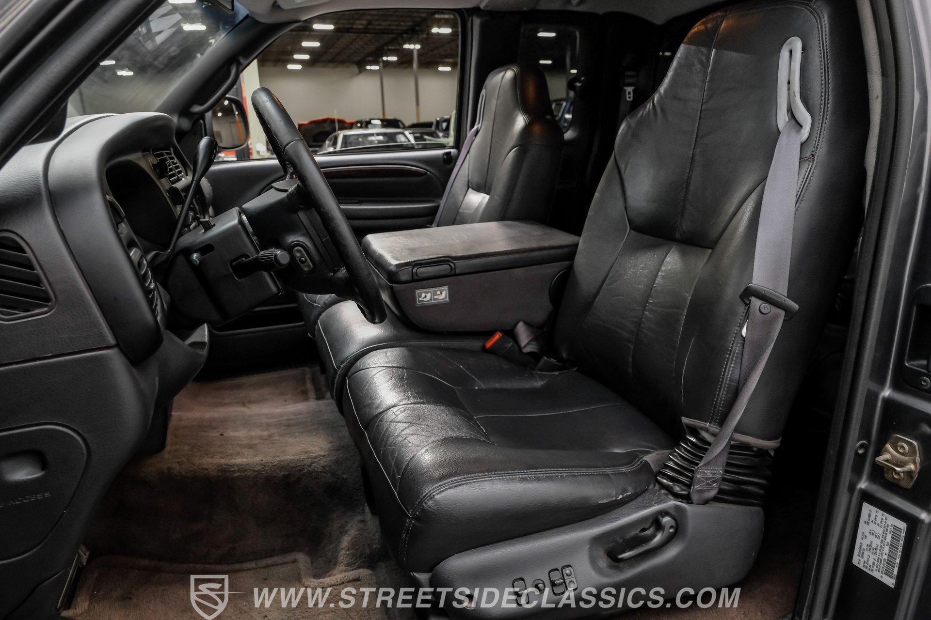 Step inside and you'll find a spacious, well-appointed interior designed for both comfort and utility. The dark gray leather seats offer power adjustments and heating up front, creating an inviting space for long hauls or daily commutes. Power windows, power locks, and power heated mirrors add convenience, while the tilt steering and cruise control make every trip a pleasure. The factory AM/FM/CD/cassette radio offers a touch of nostalgia, and the clean dash layout keeps controls at your fingertips.