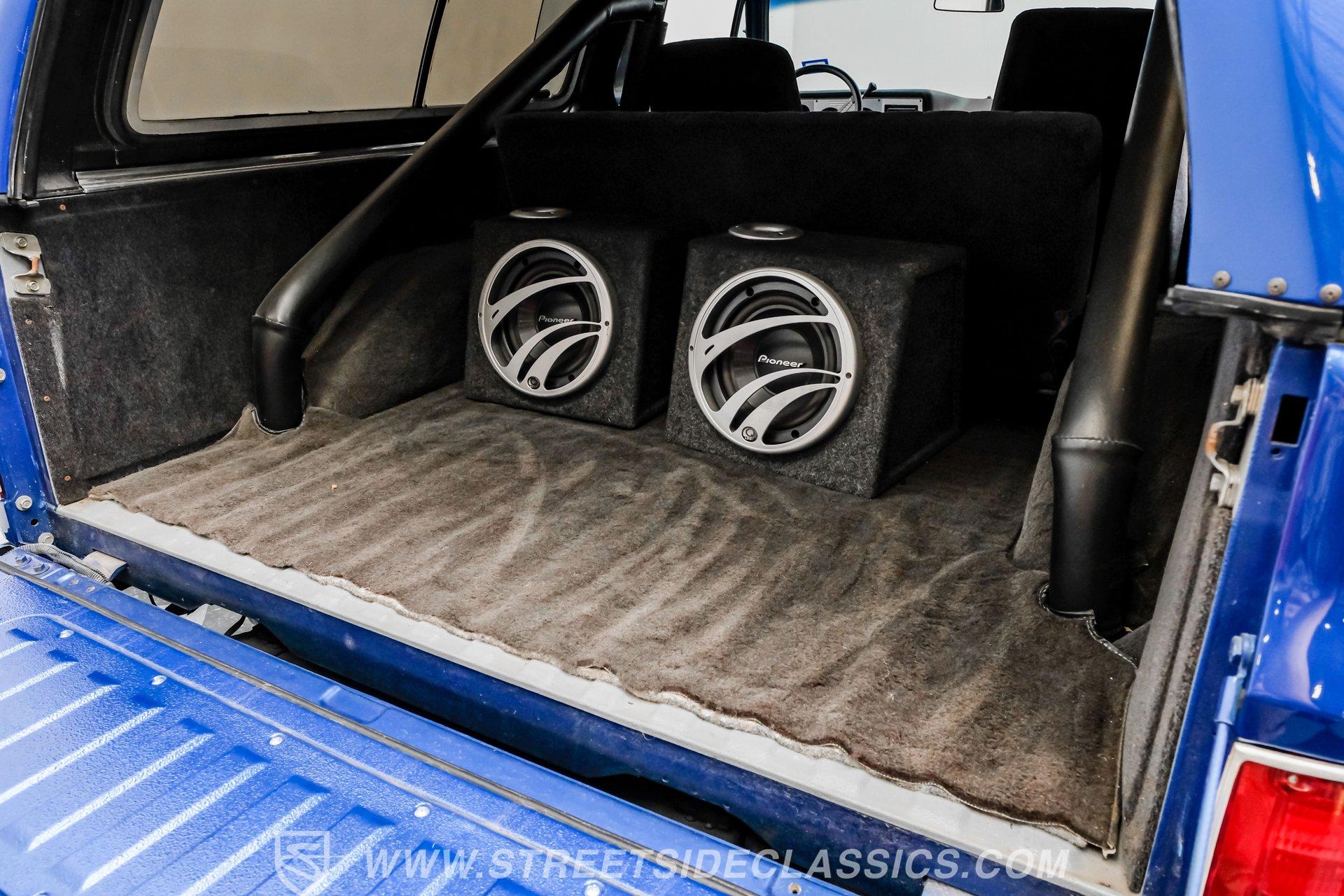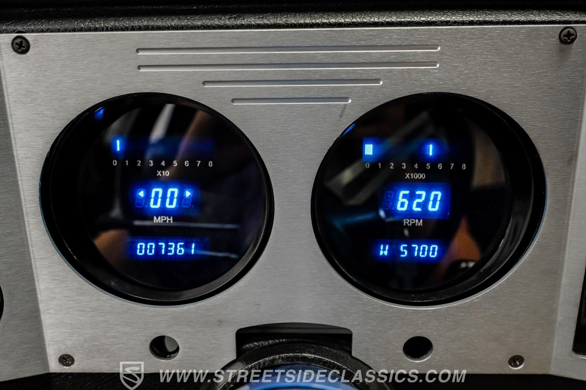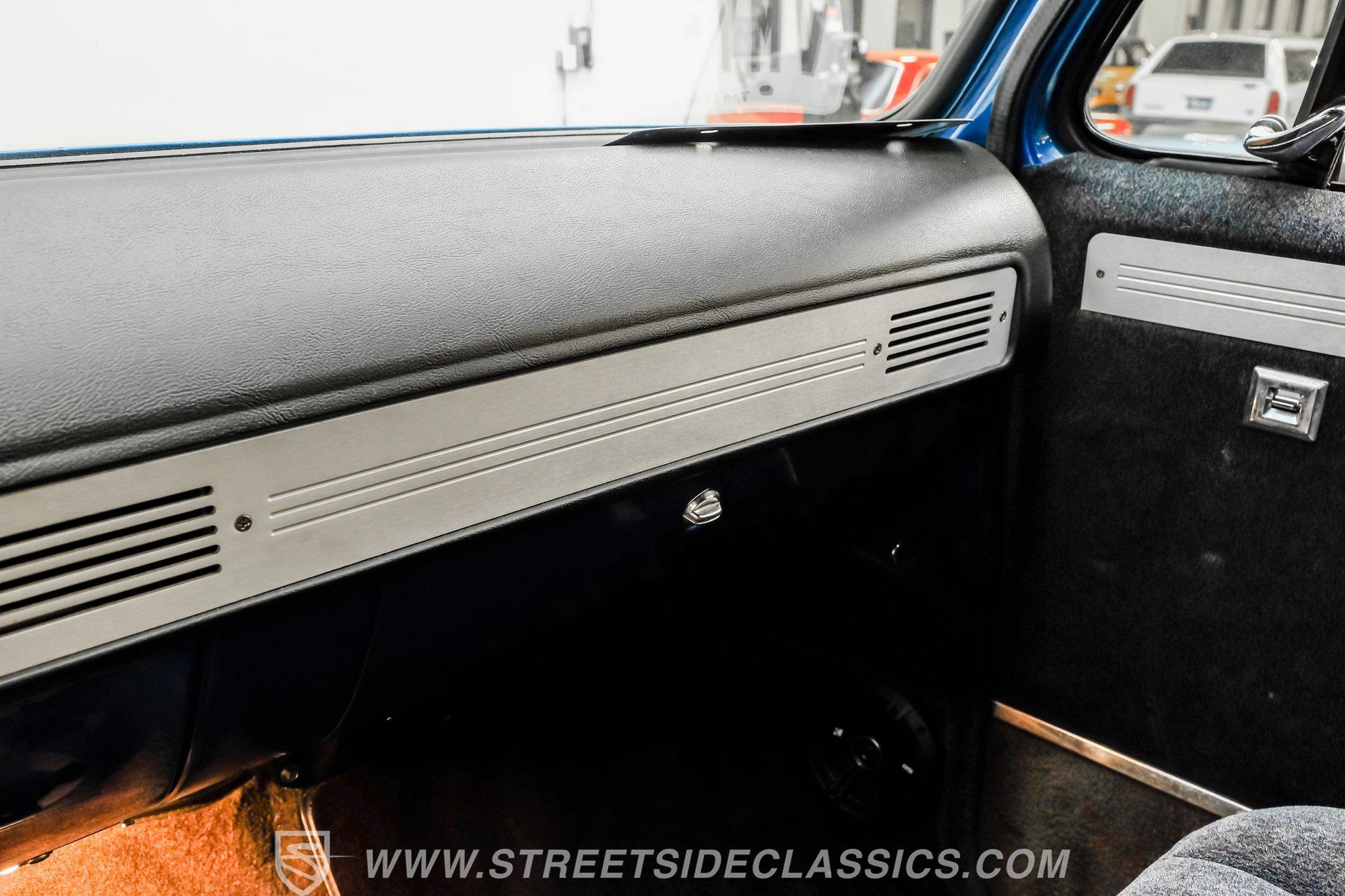 Step inside to discover a fully restored interior designed for both comfort and utility. Gray cloth bucket seats up front and a matching rear bench provide ample space for family and friends, while the center console adds convenient storage. Modern touches like Dakota Digital blue-lit gauges, a Sony AM/FM/Aux/Bluetooth stereo, and Kicker speakers with Pioneer subs ensure you travel with style and sound. Power windows and locks, a tilt column with an aftermarket steering wheel, and a Rhino-lined headliner and rear floor round out a cabin that's as functional as it is inviting.