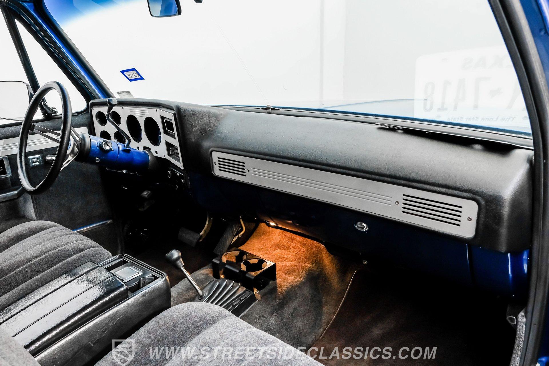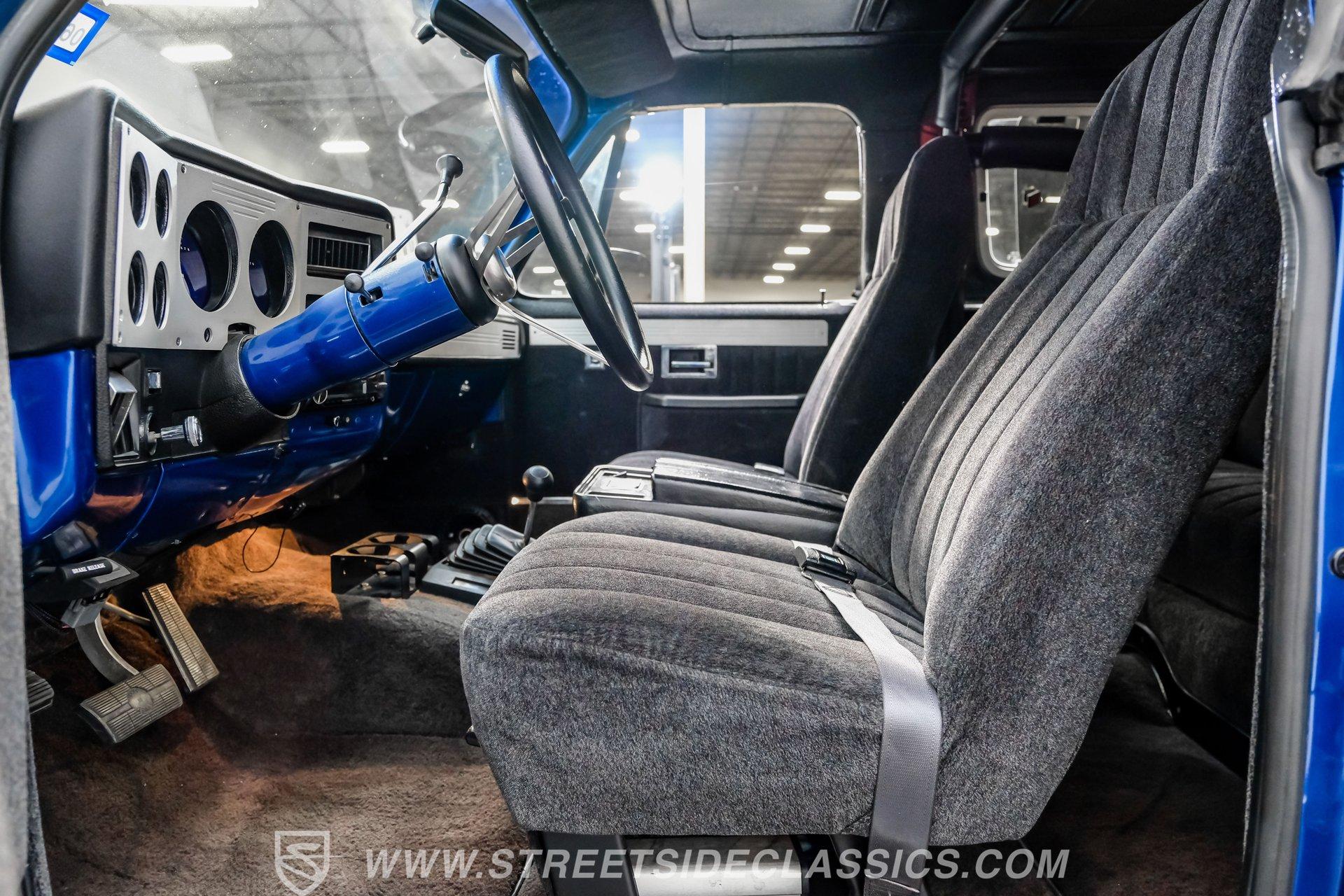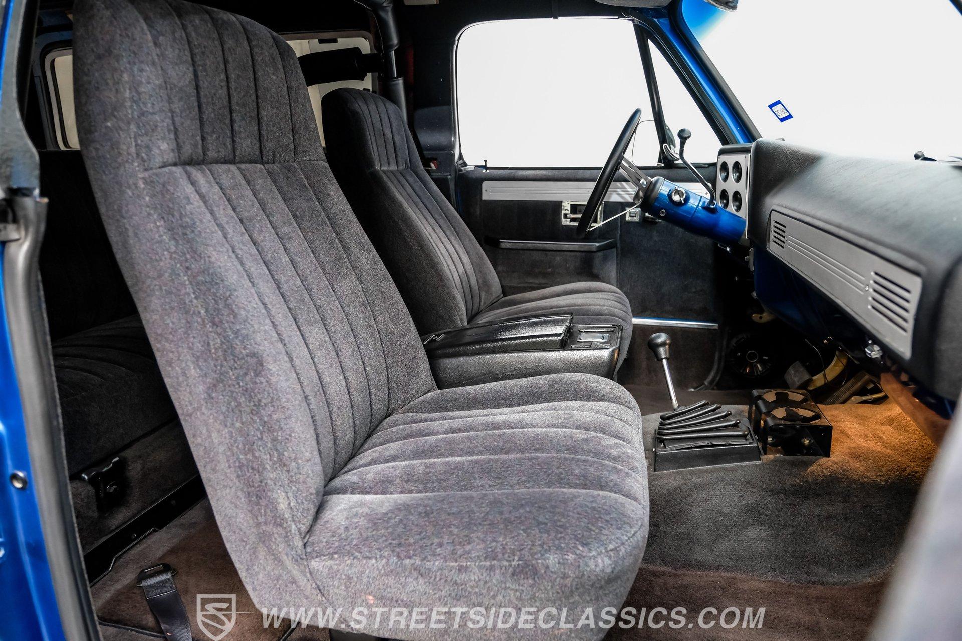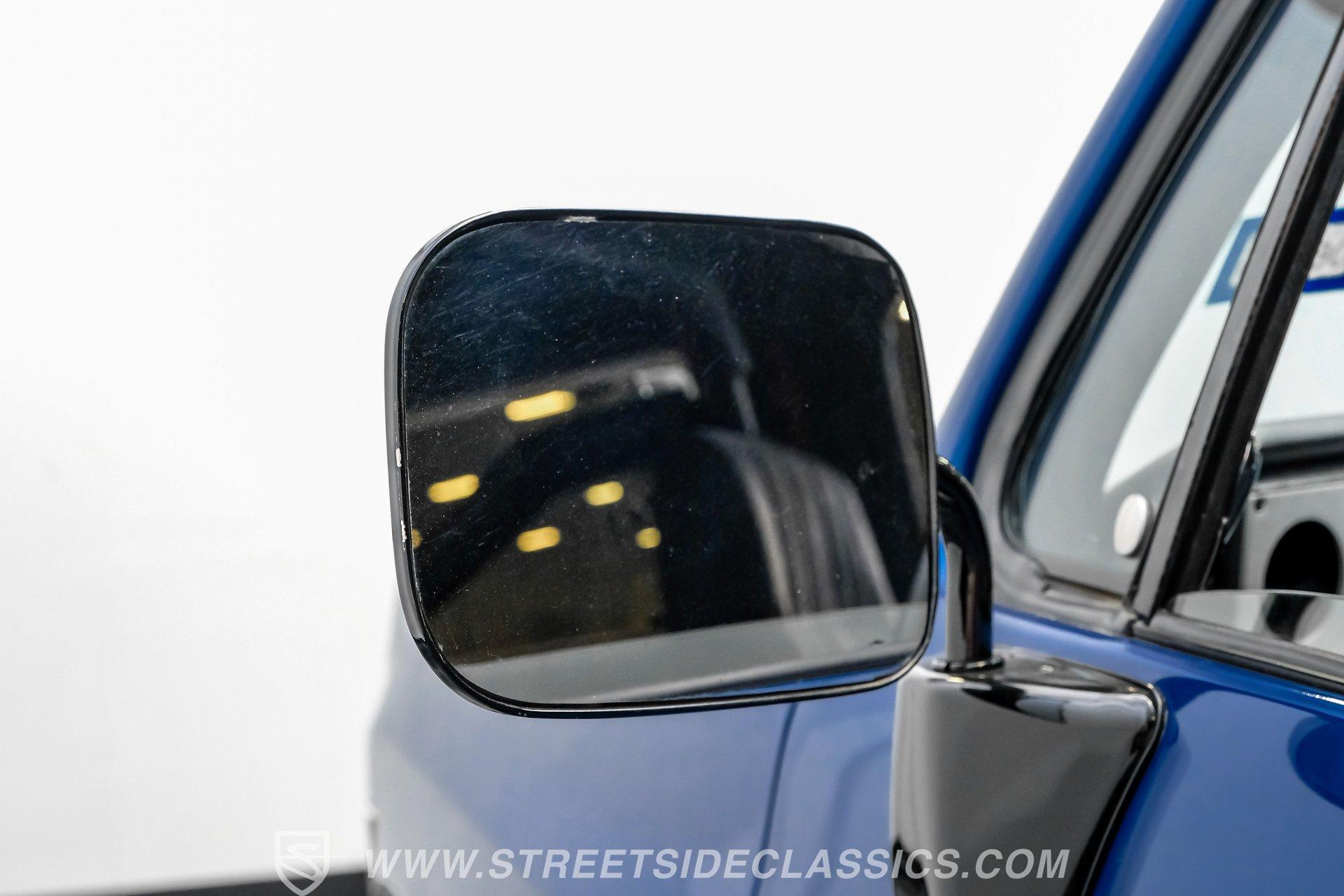 Step inside to discover a fully restored interior designed for both comfort and utility. Gray cloth bucket seats up front and a matching rear bench provide ample space for family and friends, while the center console adds convenient storage. Modern touches like Dakota Digital blue-lit gauges, a Sony AM/FM/Aux/Bluetooth stereo, and Kicker speakers with Pioneer subs ensure you travel with style and sound. Power windows and locks, a tilt column with an aftermarket steering wheel, and a Rhino-lined headliner and rear floor round out a cabin that's as functional as it is inviting.