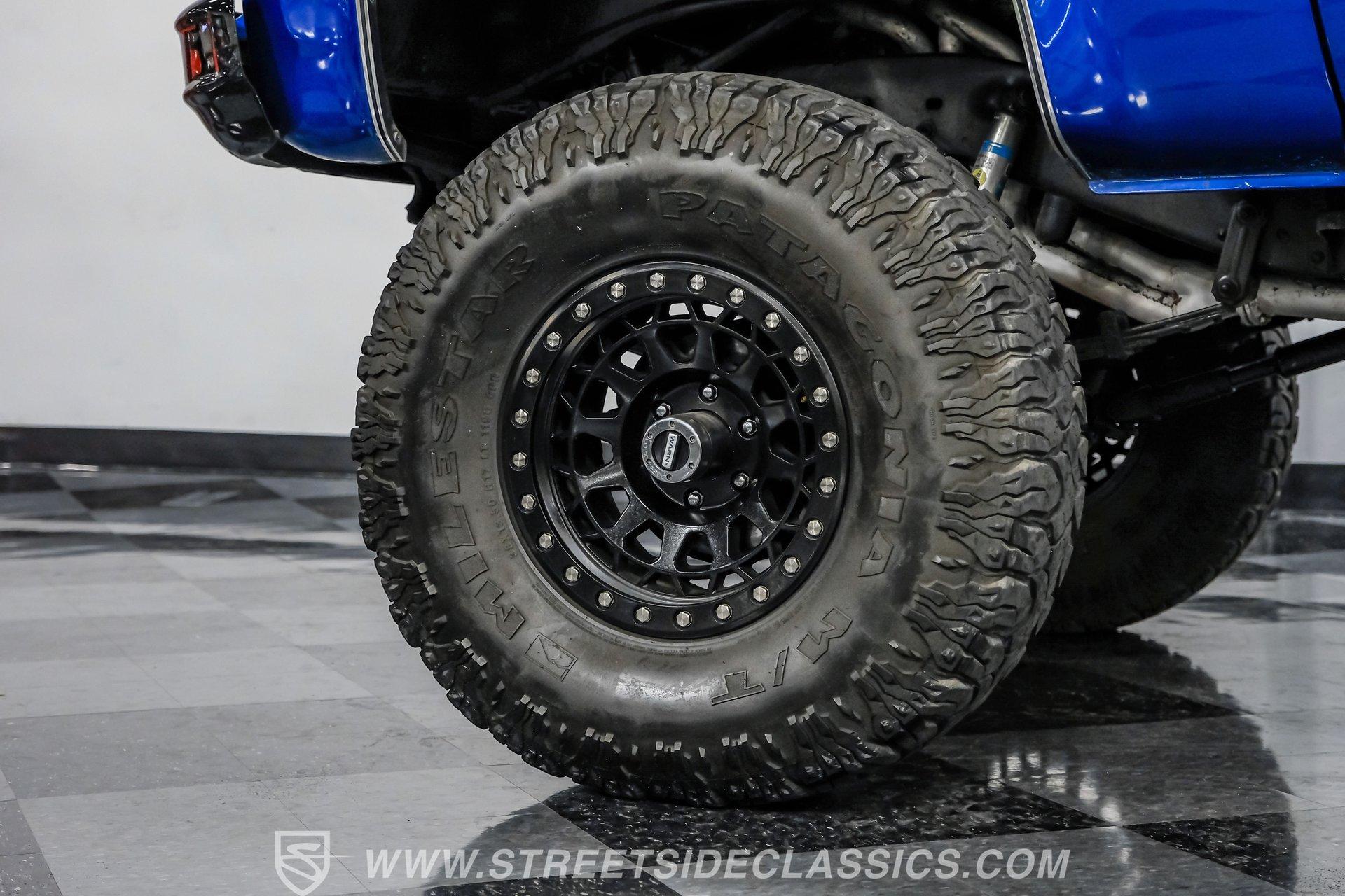 Owning a classic SUV isn't just about getting around-it's about enjoying a machine built with purpose and personality. This 1974 Chevrolet K5 Blazer 4x4 brings that spirit to life with bold style and solid capability. Fully repainted in Blue with a matching removable hard top, it features semi gloss Black bumpers, trim, and side steps, plus a factory Argent Gray grille and LED lighting for a clean, modern edge. It rides on 17-inch Black Rhino wheels wrapped in 38'' Milestar Patagonia tires, supported by a 6'' suspension lift and 3'' body lift that give it a commanding presence on any road.