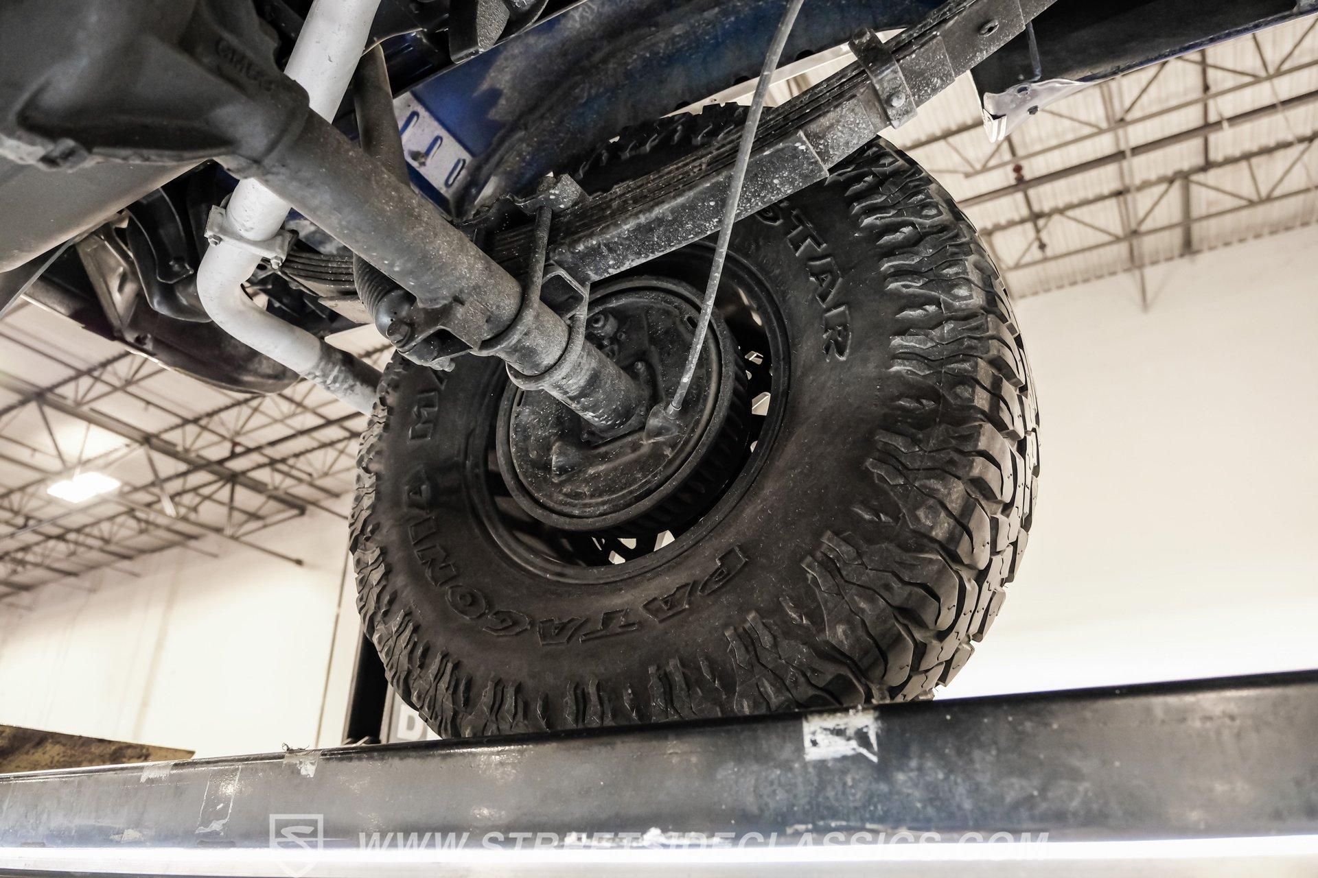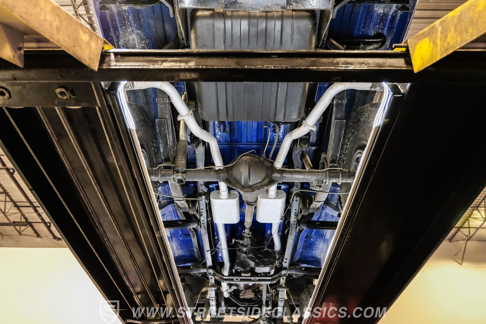Under the hood, you'll find a robust 350ci V8 paired with a 3-speed automatic transmission and a dual-range transfer case. Performance is enhanced by an Edelbrock 4-barrel carb and intake, long tube headers, and an aluminum radiator with dual electric fans for reliable cooling. The lifted suspension, Bilstein shocks, and power steering deliver a confident driving experience both on and off the road, while the Dana 44 front and 12-bolt rear axles ensure durability and traction wherever you roam.