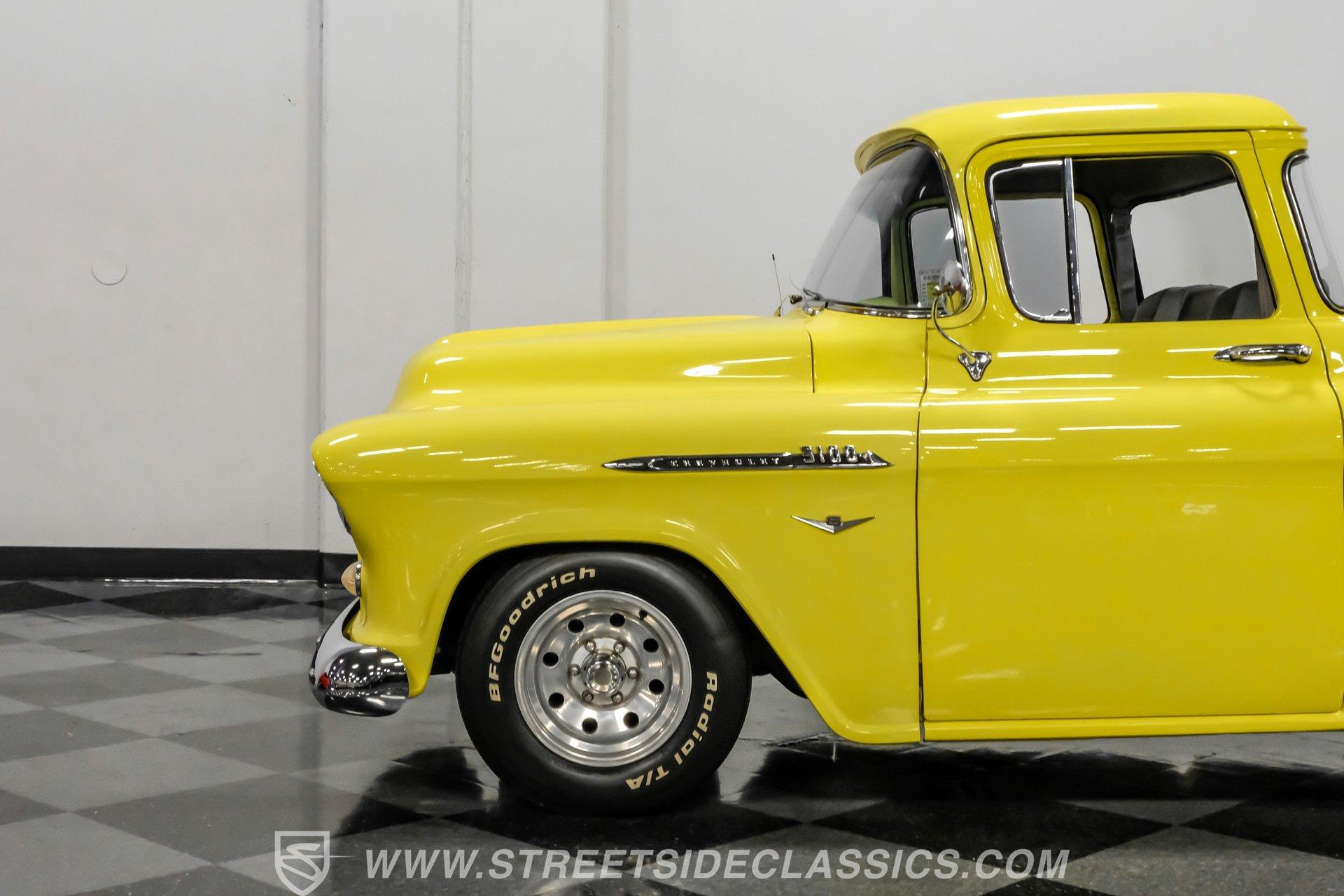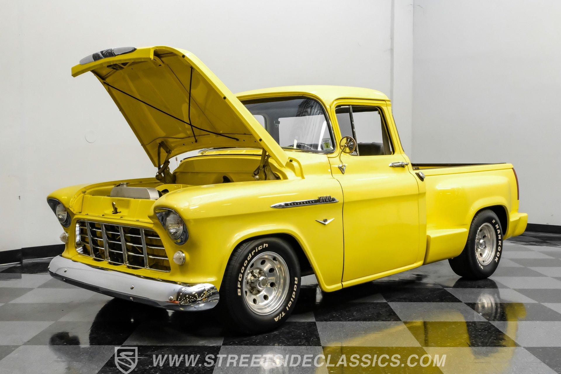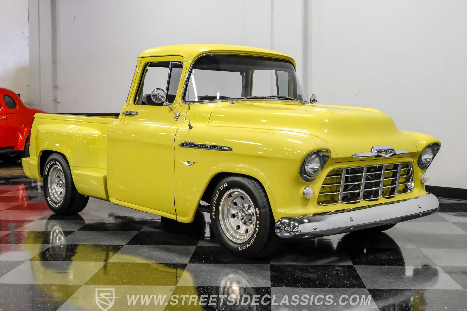 Owning a classic truck is about appreciating timeless design and craftsmanship. This 1955 Chevrolet 3100 Big Window LS2 Restomod blends vintage style with modern engineering. It features full yellow paint, an OBS Chevy bed with a wood-paneled floor and roll-up tonneau cover, a smoothed rear bumper, chrome front bumper and trim, and the signature ''Big Window'' cab. Additionally, the fuel tank has been relocated beneath the bed for improved functionality and safety.