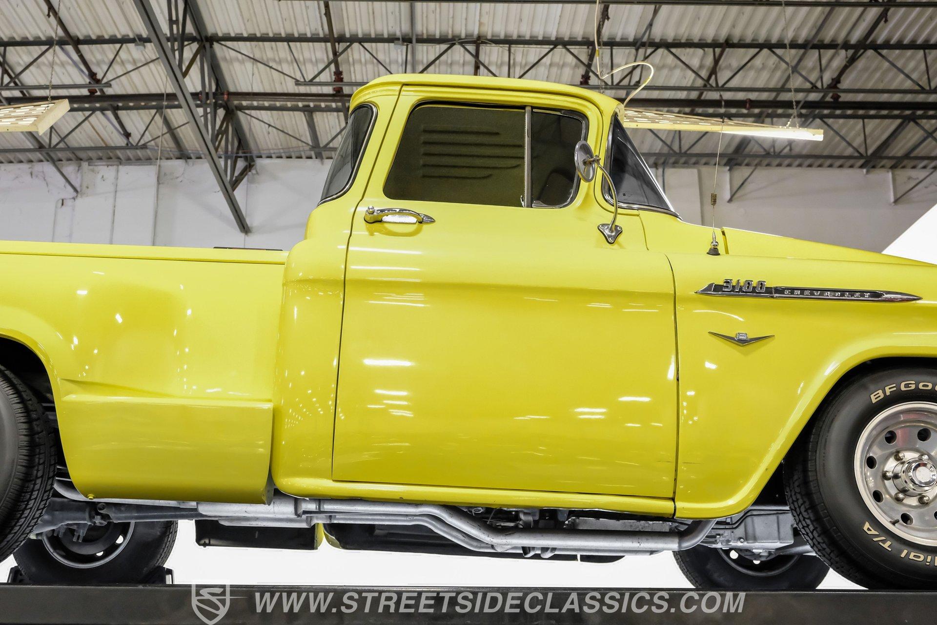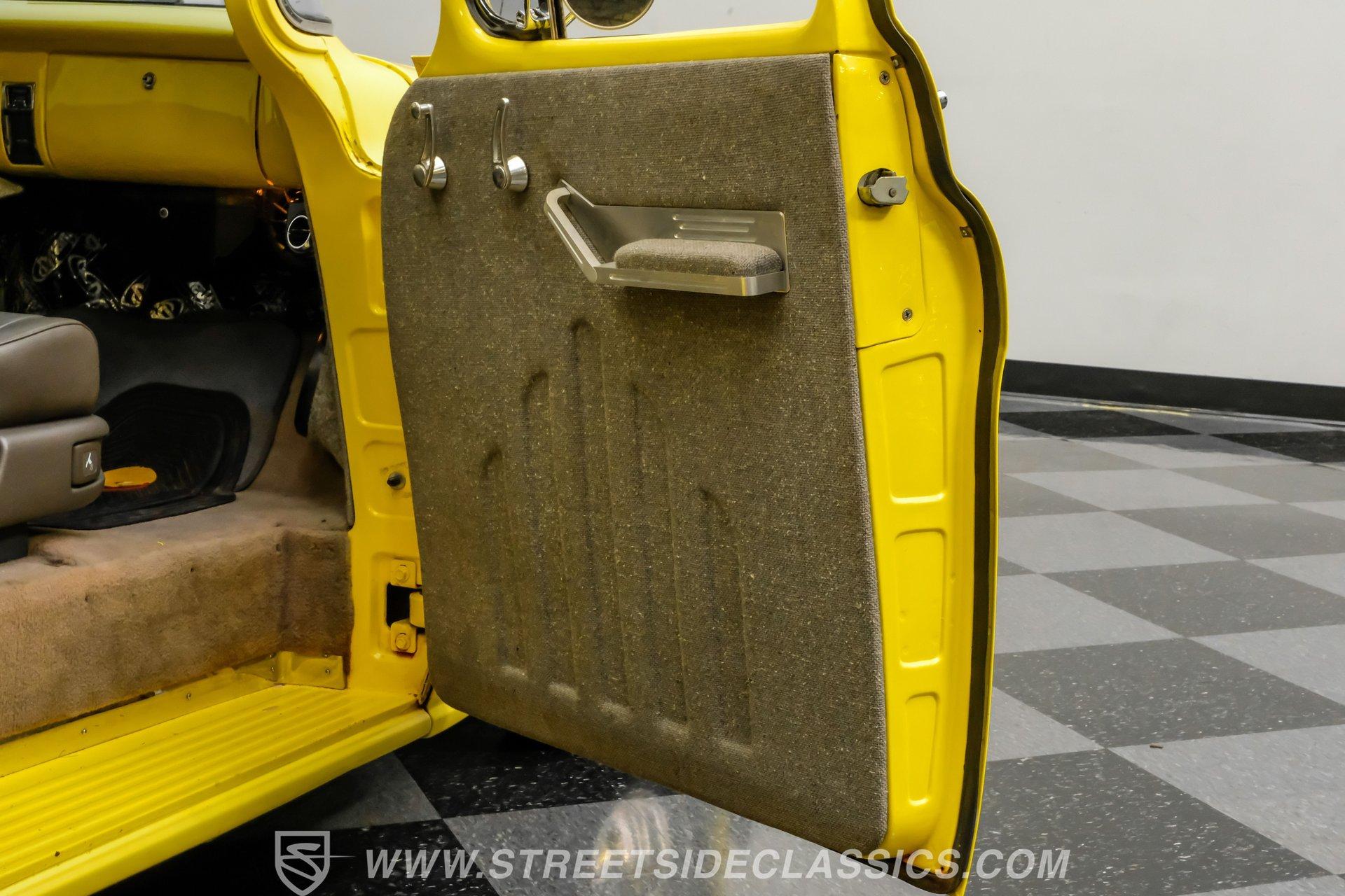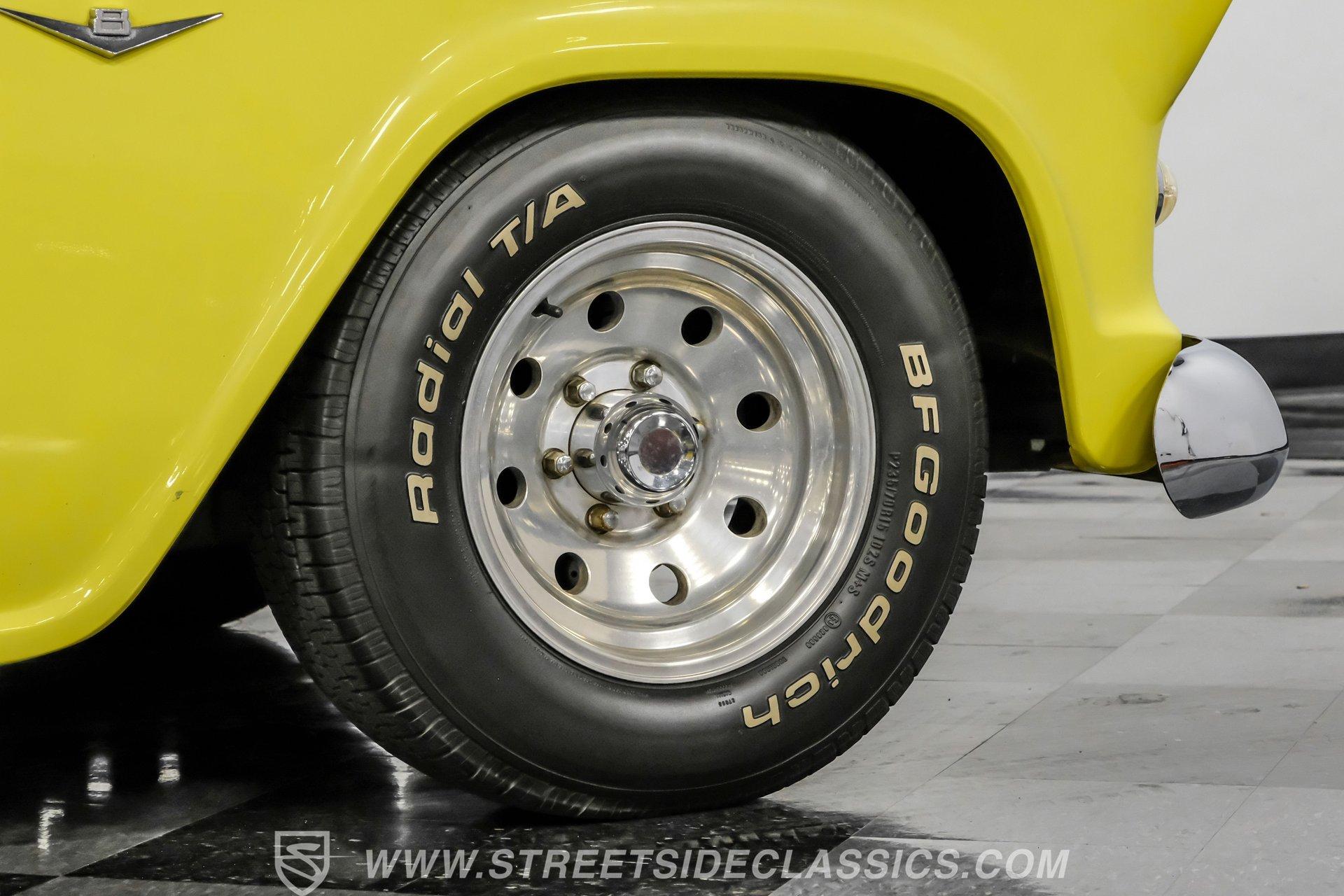 Owning a classic truck is about appreciating timeless design and craftsmanship. This 1955 Chevrolet 3100 Big Window LS2 Restomod blends vintage style with modern engineering. It features full yellow paint, an OBS Chevy bed with a wood-paneled floor and roll-up tonneau cover, a smoothed rear bumper, chrome front bumper and trim, and the signature ''Big Window'' cab. Additionally, the fuel tank has been relocated beneath the bed for improved functionality and safety.