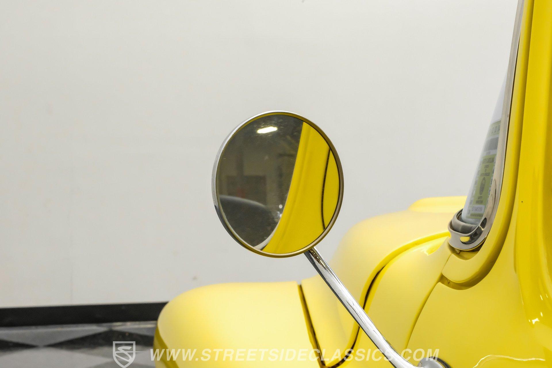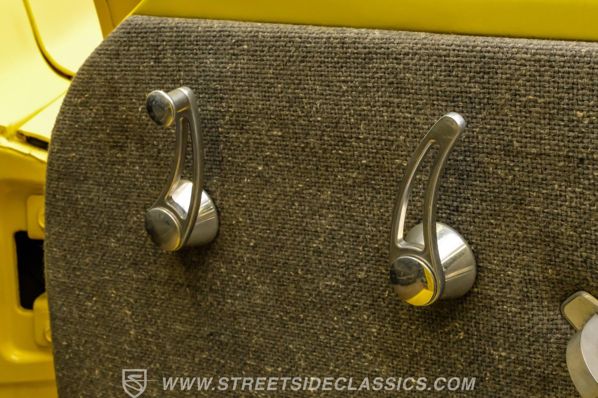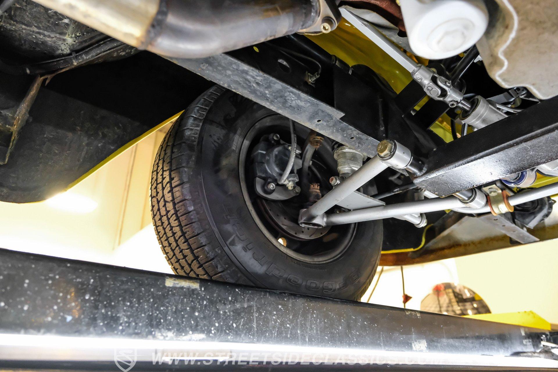 Step inside and you are greeted by a thoughtfully upgraded cabin where classic style meets modern comfort. The interior features custom gray and yellow accents, late-model gray leather bucket seats, and a custom center console with cup holders. Tweed door panels and headliner add a touch of bespoke luxury, while Dynamat insulation helps keep out the heat and noise. Dakota Digital gauges, a paint-matched tilt steering column with a billet wheel, and a Kenwood AM/FM/CD/Aux radio with Infinity speakers ensure that style and convenience are always at your fingertips. Vintage Air conditioning keeps you comfortable, making every drive enjoyable no matter the season.