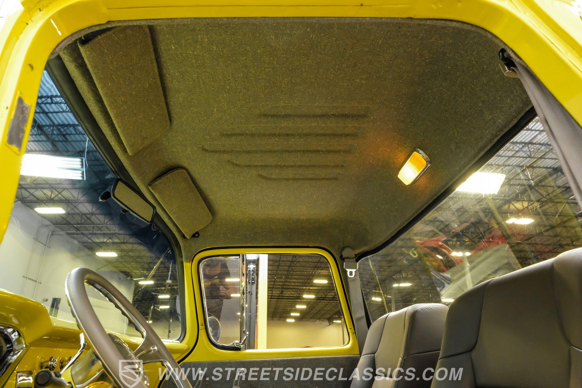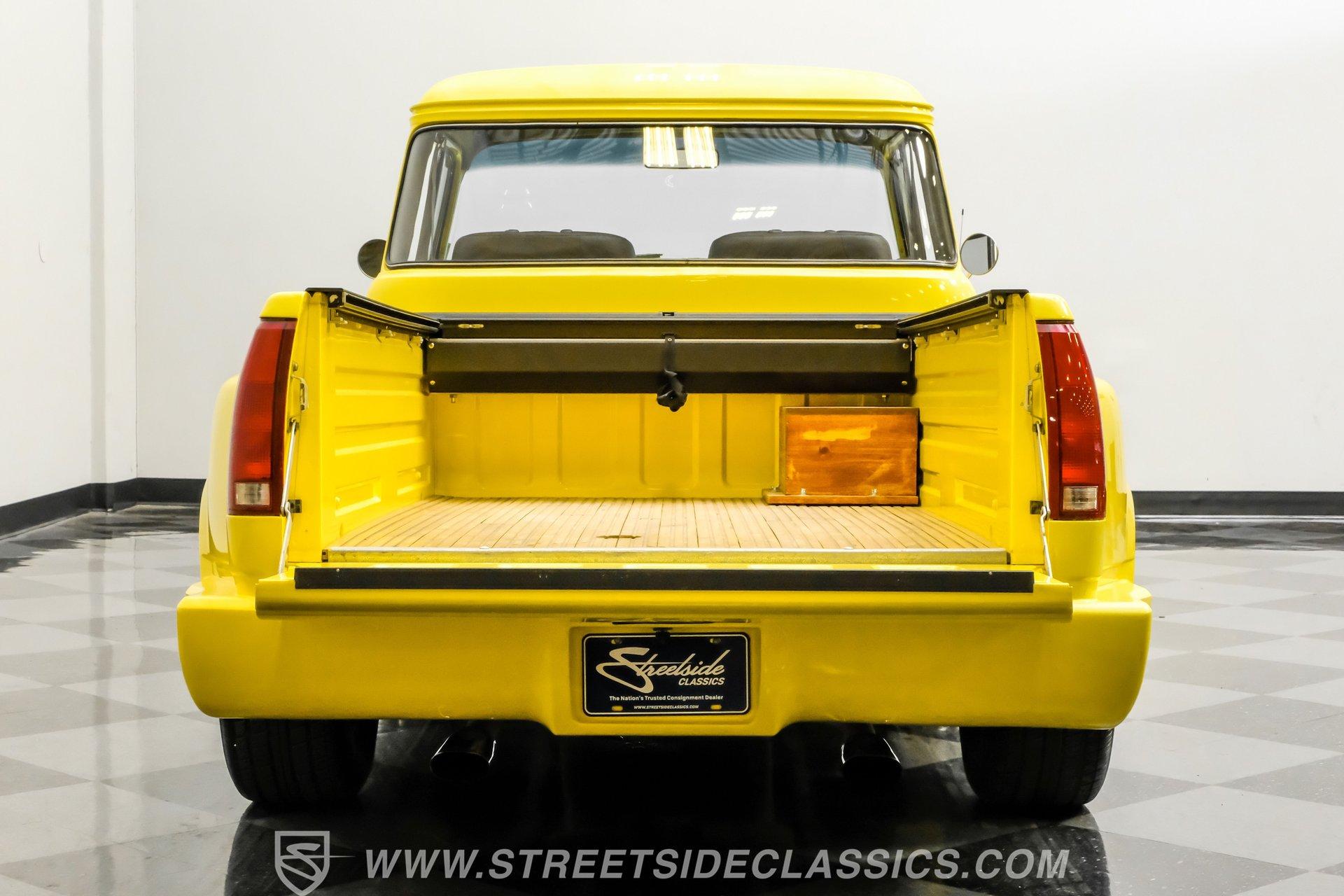 Under the hood, this restomod is powered by a 6.0L LS2 V8 with electronic fuel injection, transplanted from a 2007 Chevrolet Trailblazer SS and rebuilt for modern reliability. The 4L70E four-speed automatic transmission delivers smooth and responsive shifts, while the Scott's front suspension with coilovers and sway bar, along with a 12-bolt rear axle, provide confident handling. An aluminum radiator with electric fan, custom valve covers, and a cold air intake keep the detailed engine bay looking sharp and running cool. Power disc brakes at all four corners and power steering ensure that performance matches the truck's bold appearance, making it a joy to drive whether on the highway or around town.