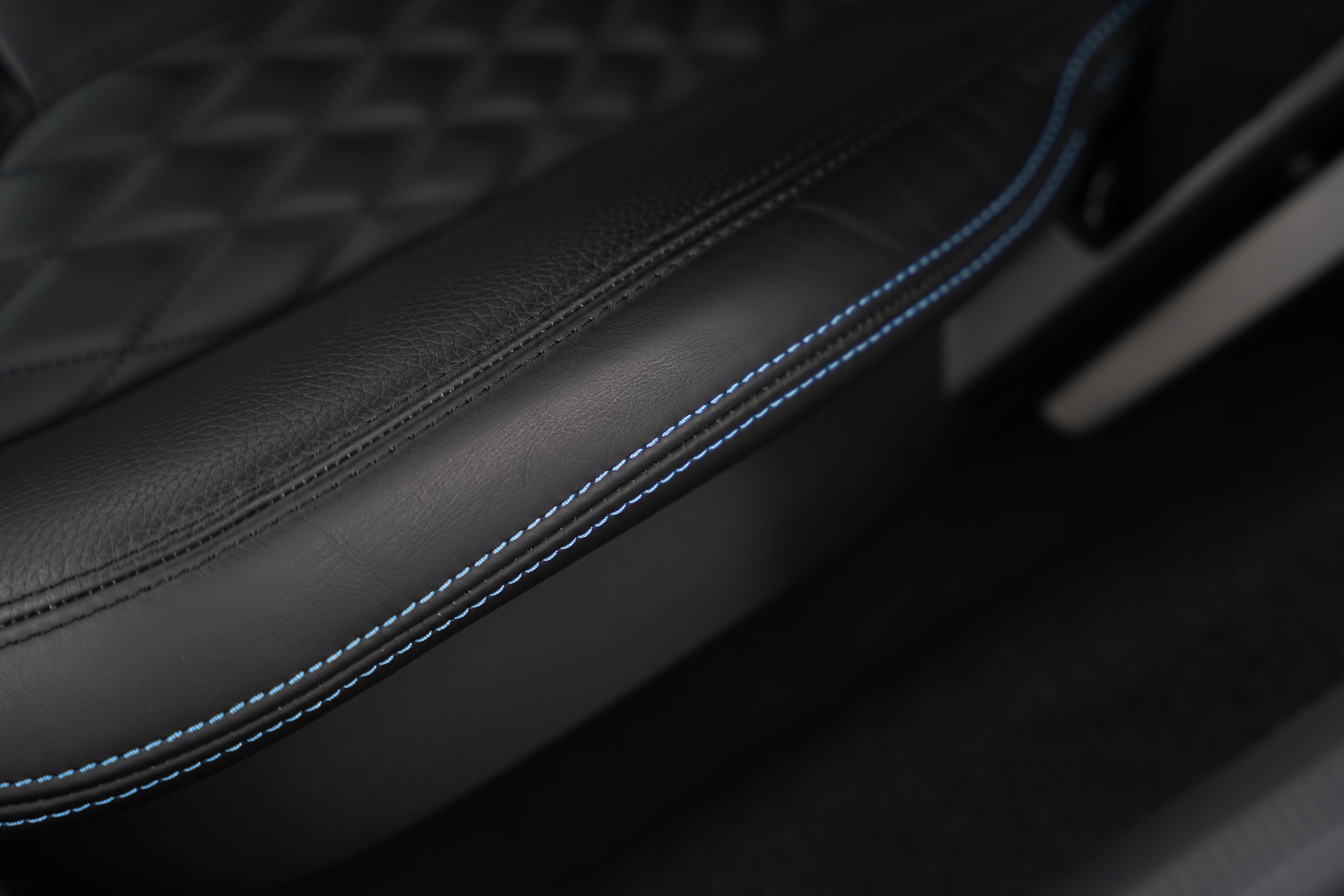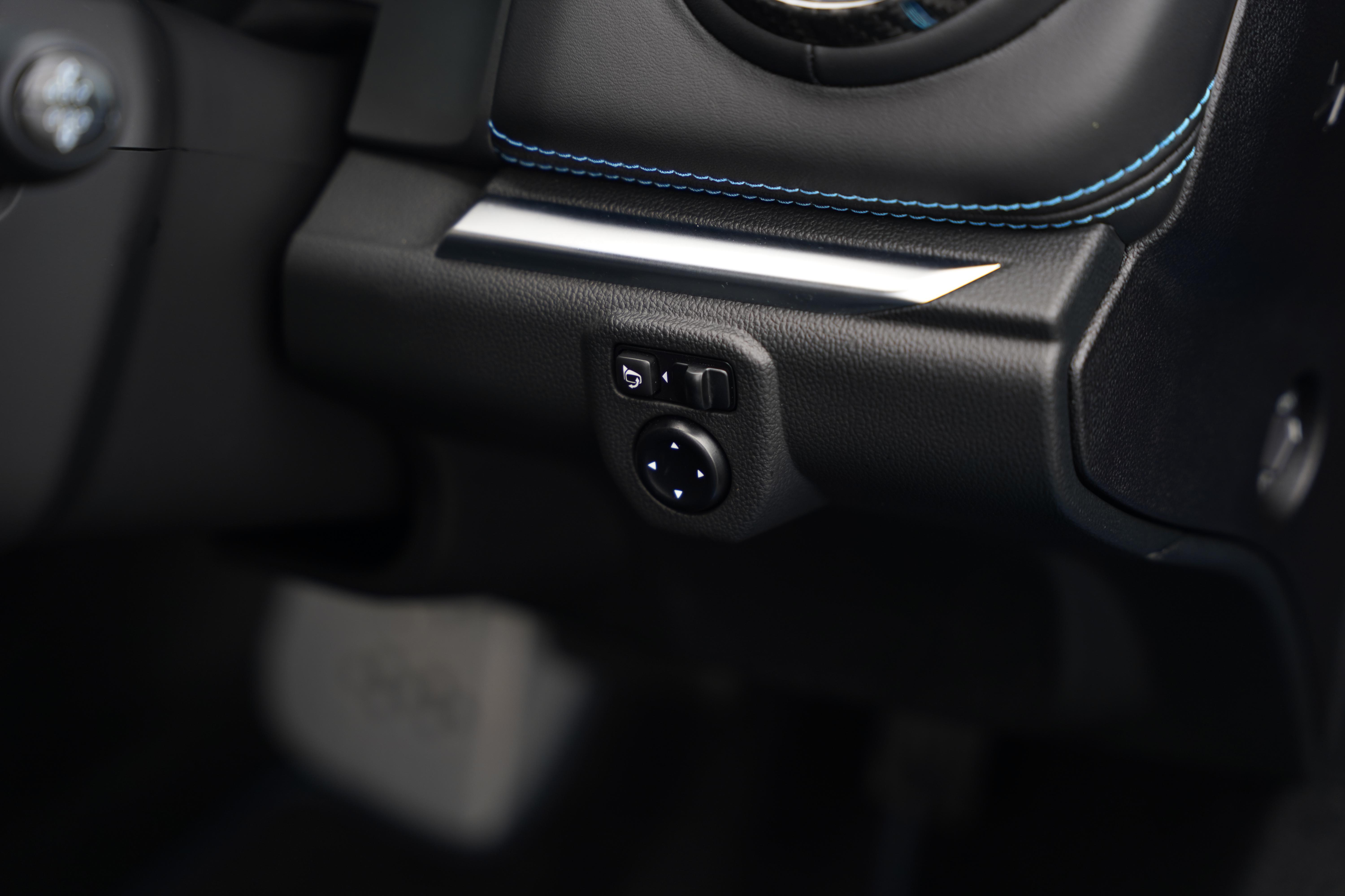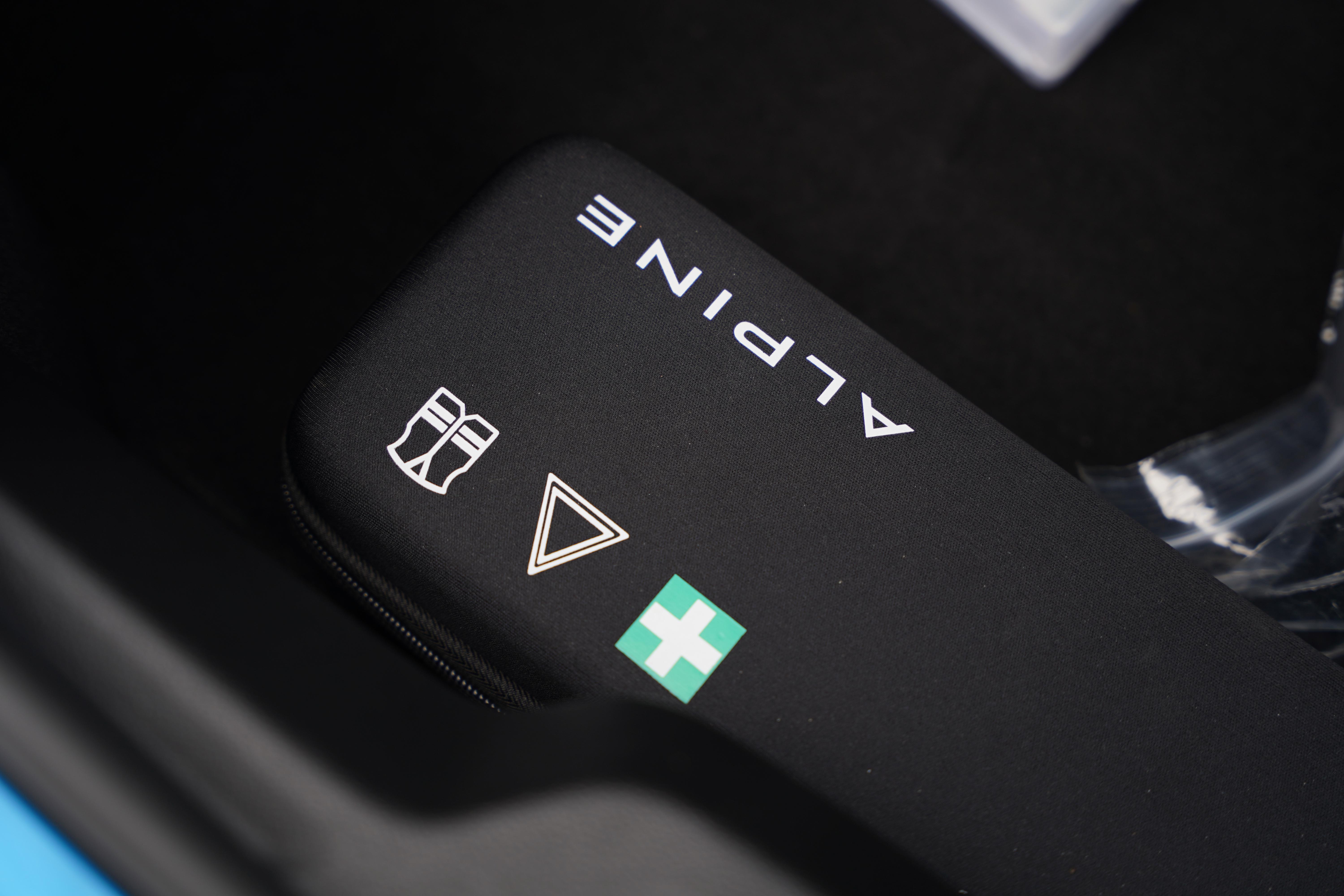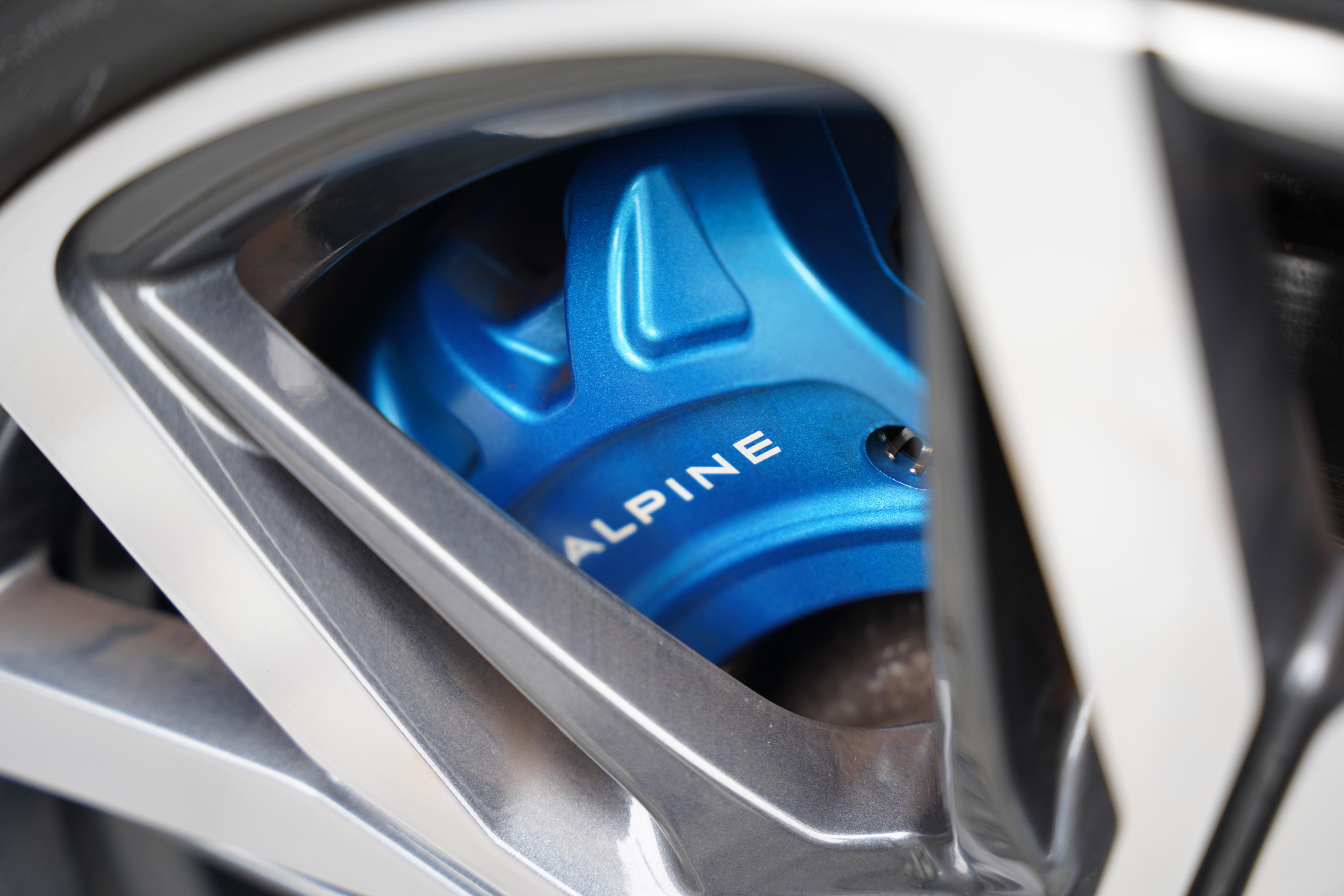 - Leather steering wheel with contrast stitch and Alpine Blue logo
