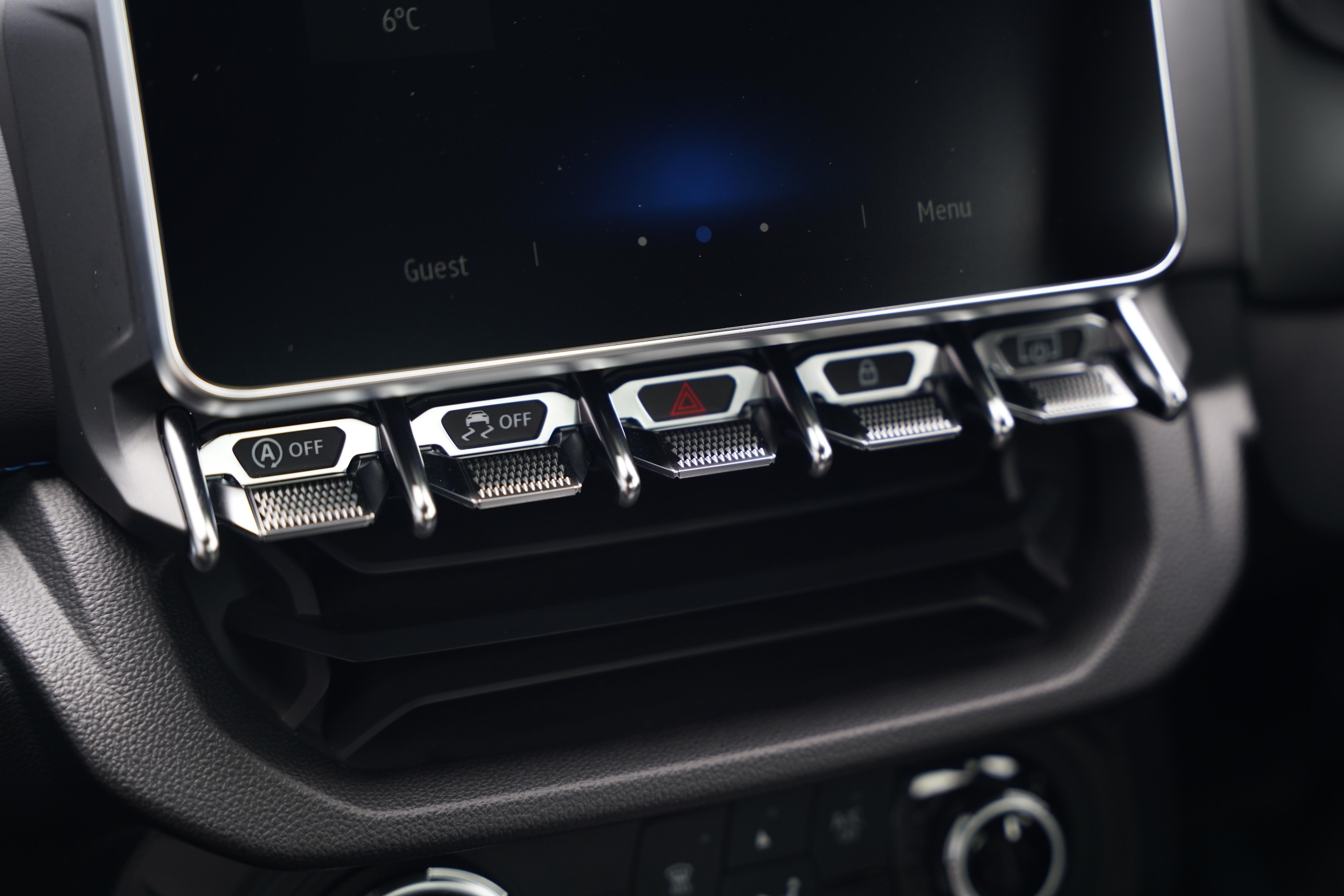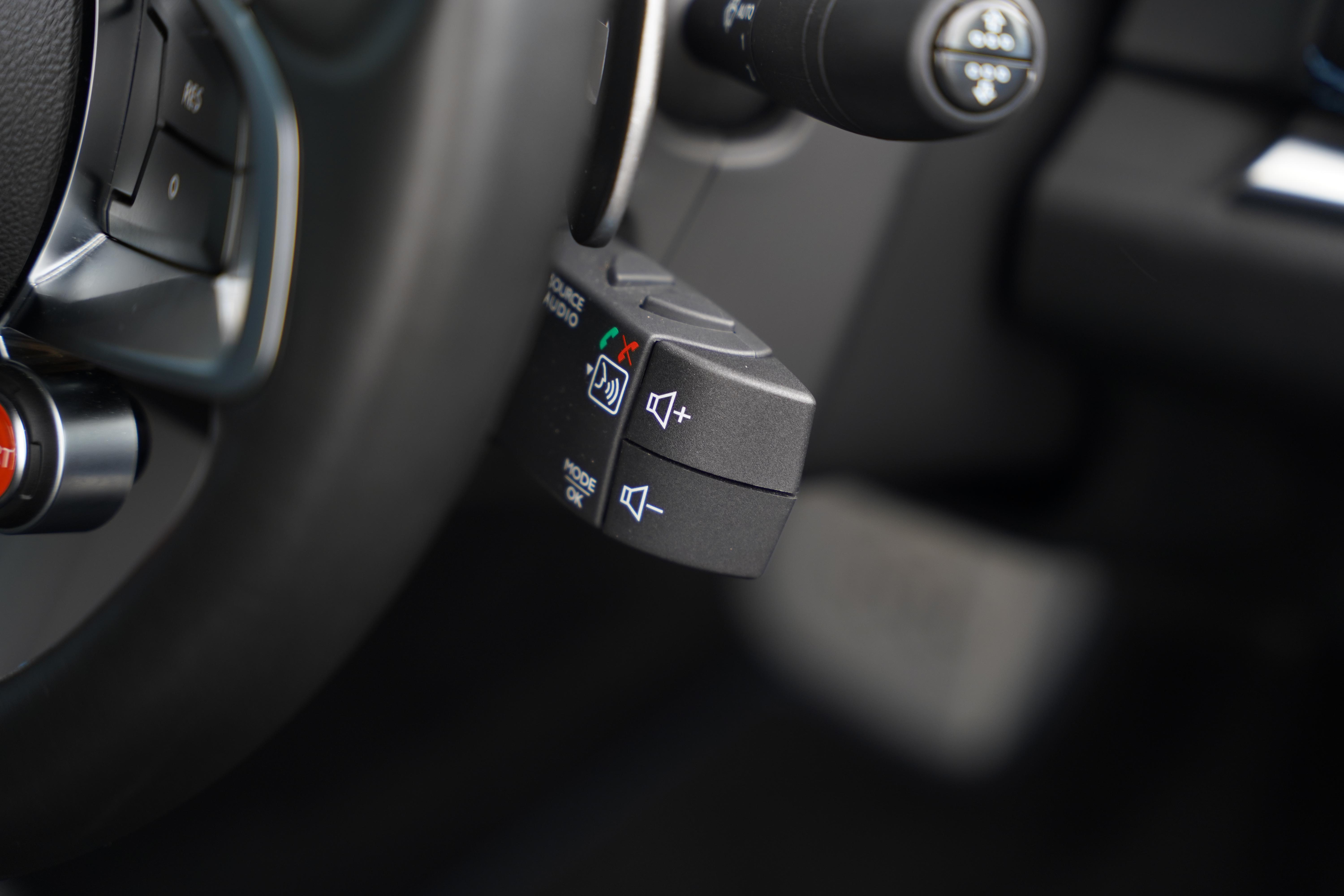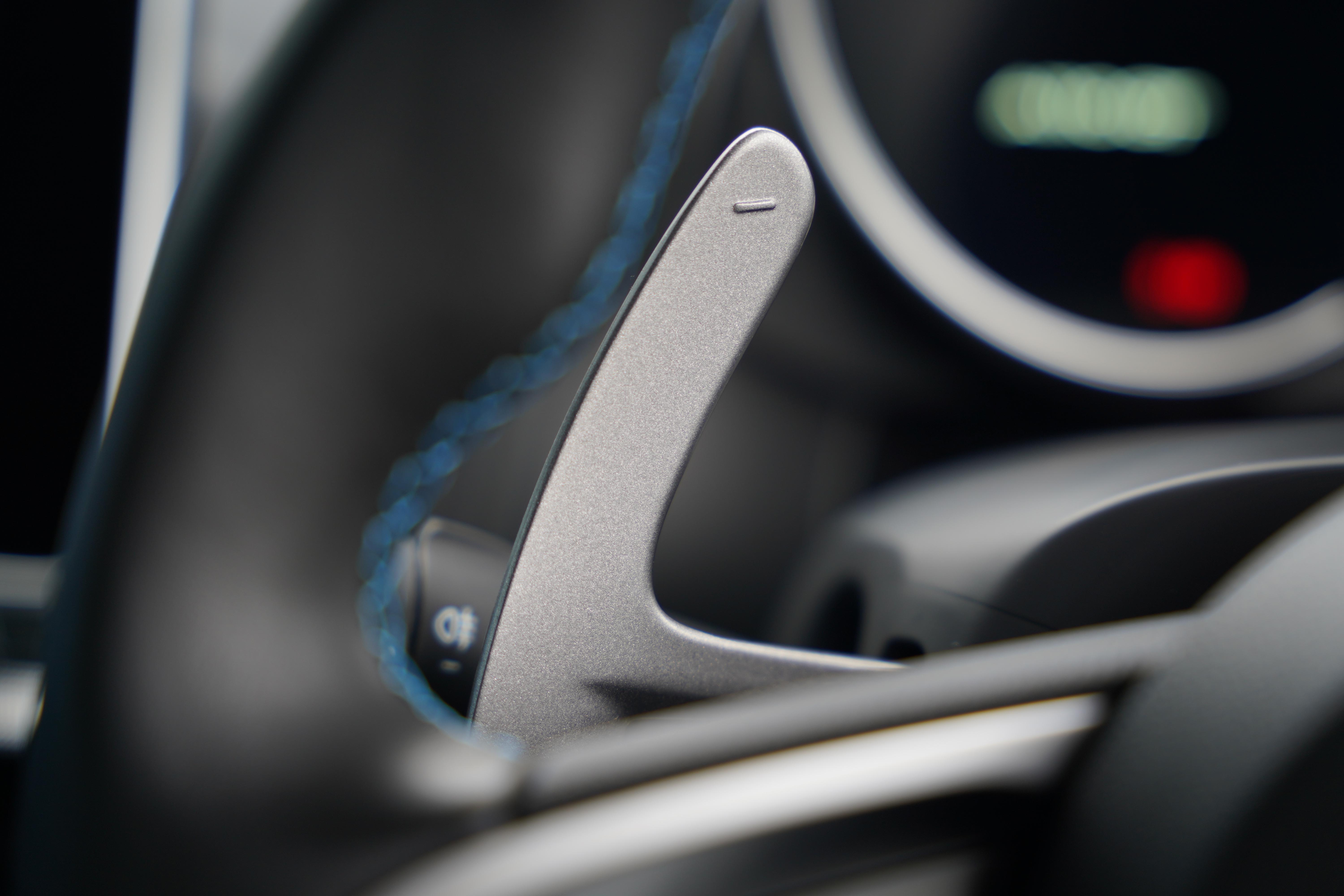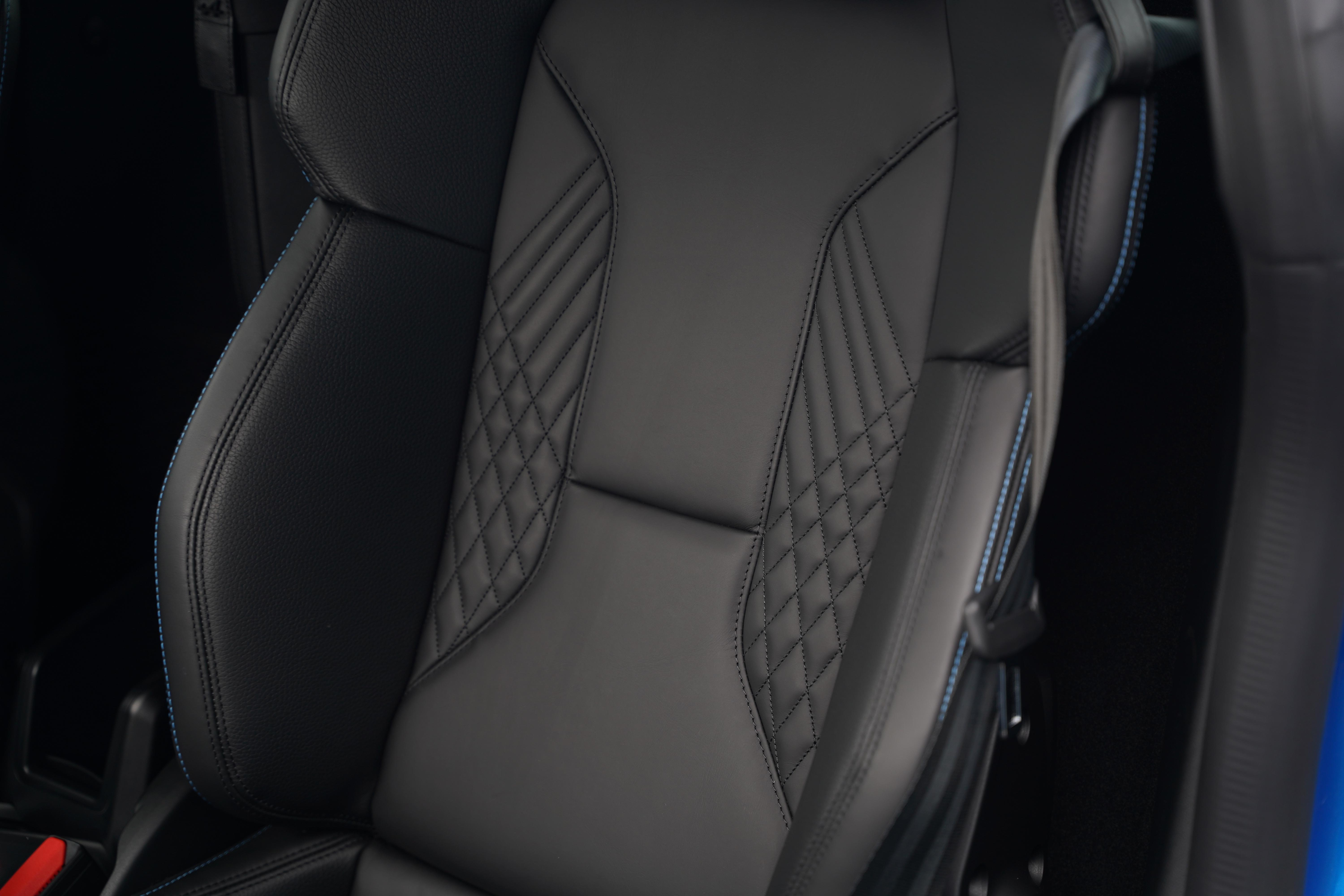 - Leather steering wheel with contrast stitch and Alpine Blue logo