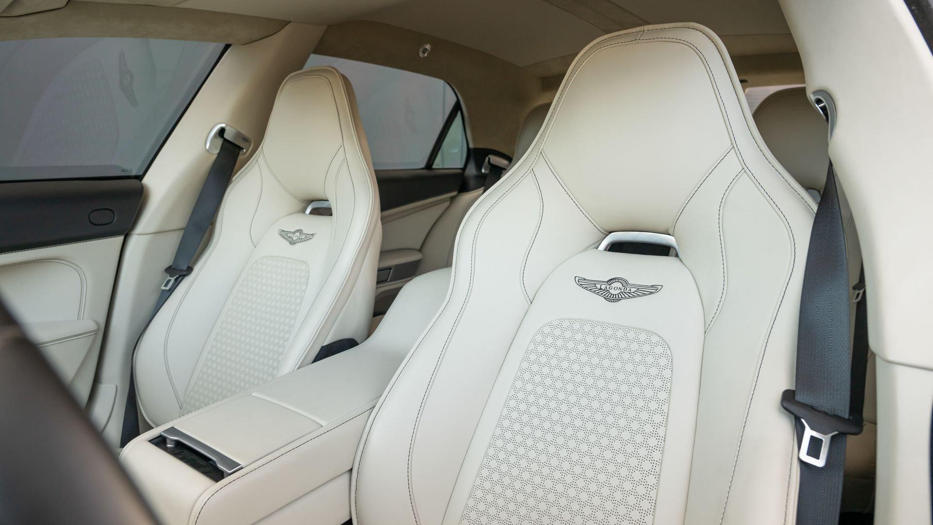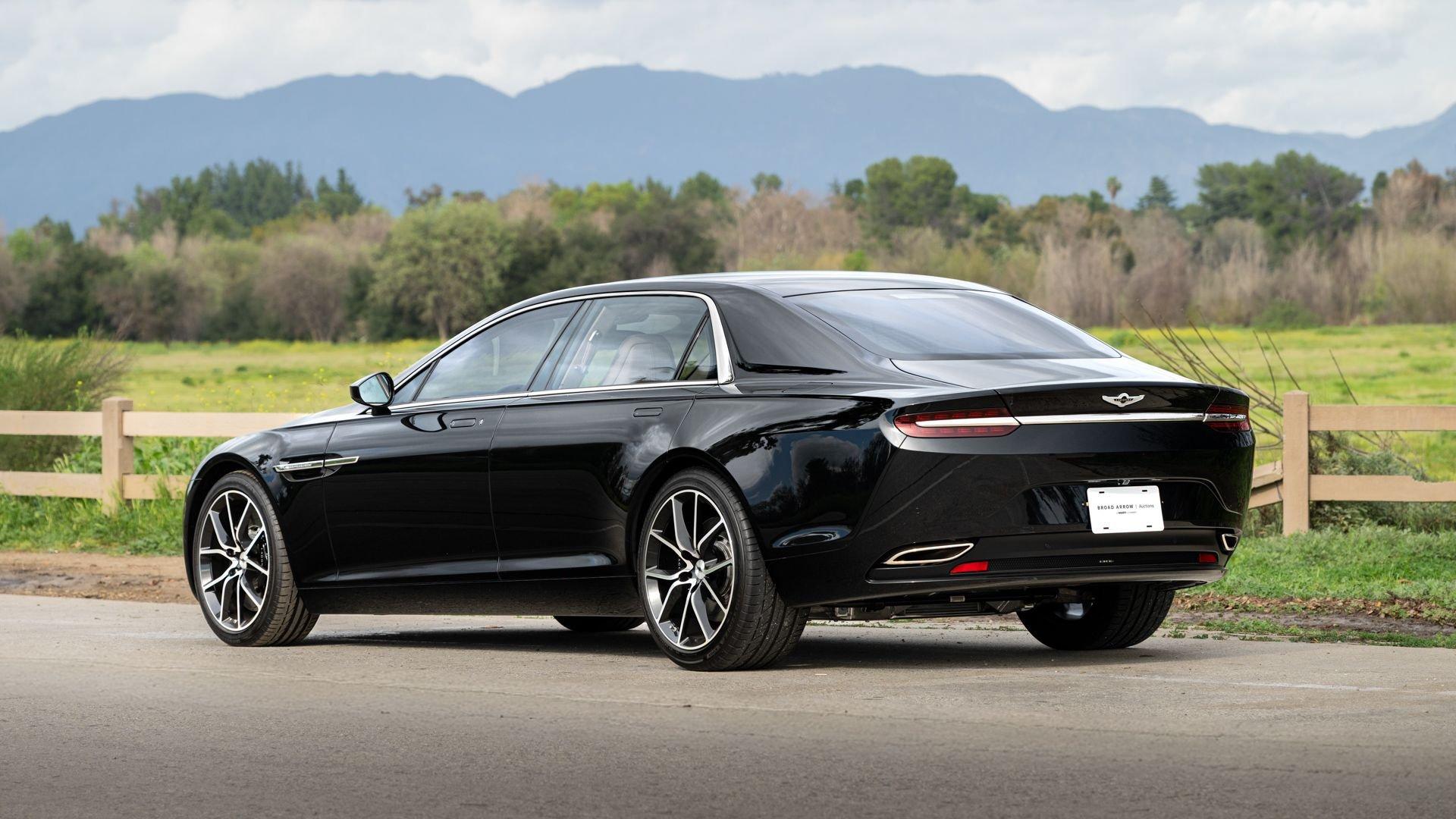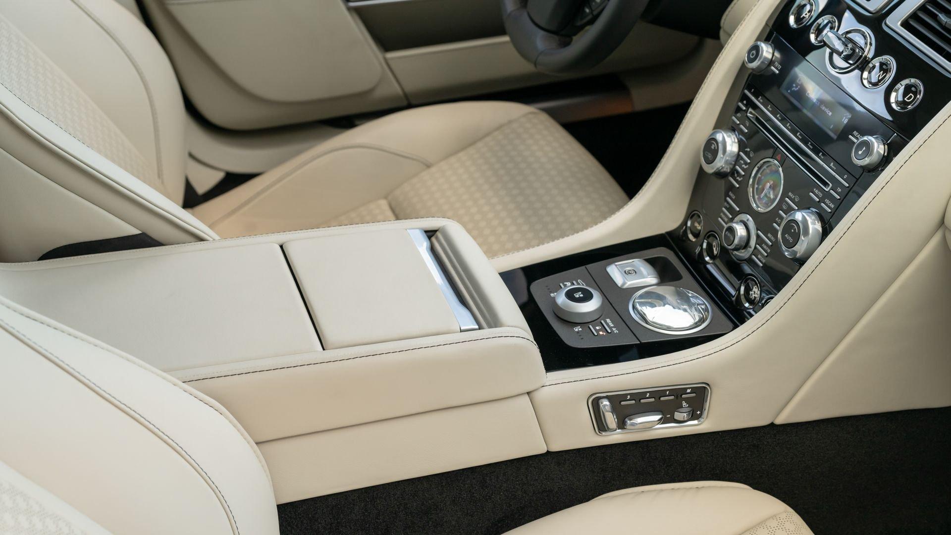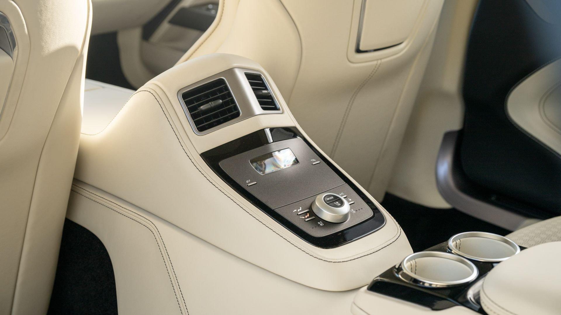 This exceptionally rare Aston now shows less than 500 miles at cataloging. It is furnished with its delivery items including iPad Minis with frame assemblies that attach to the front seatbacks, Bang & Olufsen headphones, owner's manual, Aston Martin-branded first aid kit, tire inflator, and Lagonda-badged umbrella.