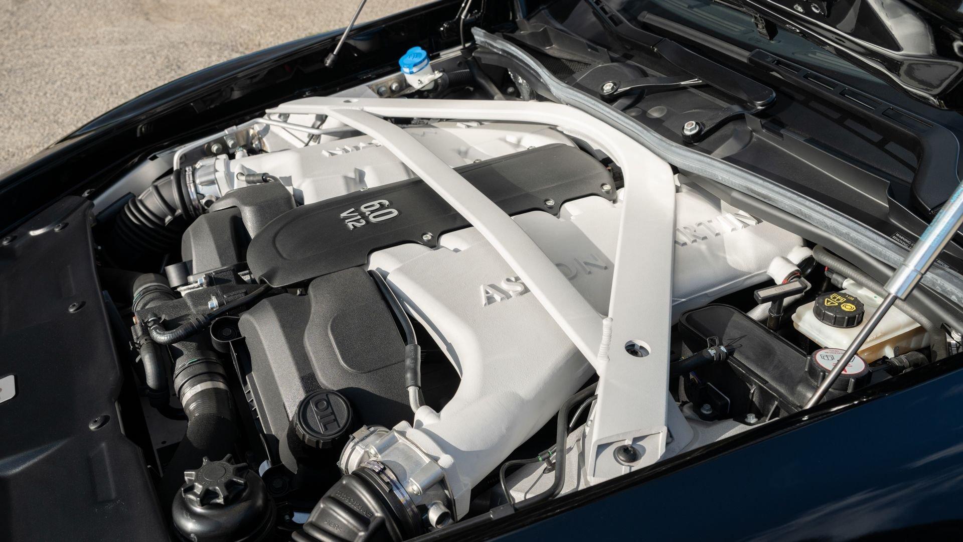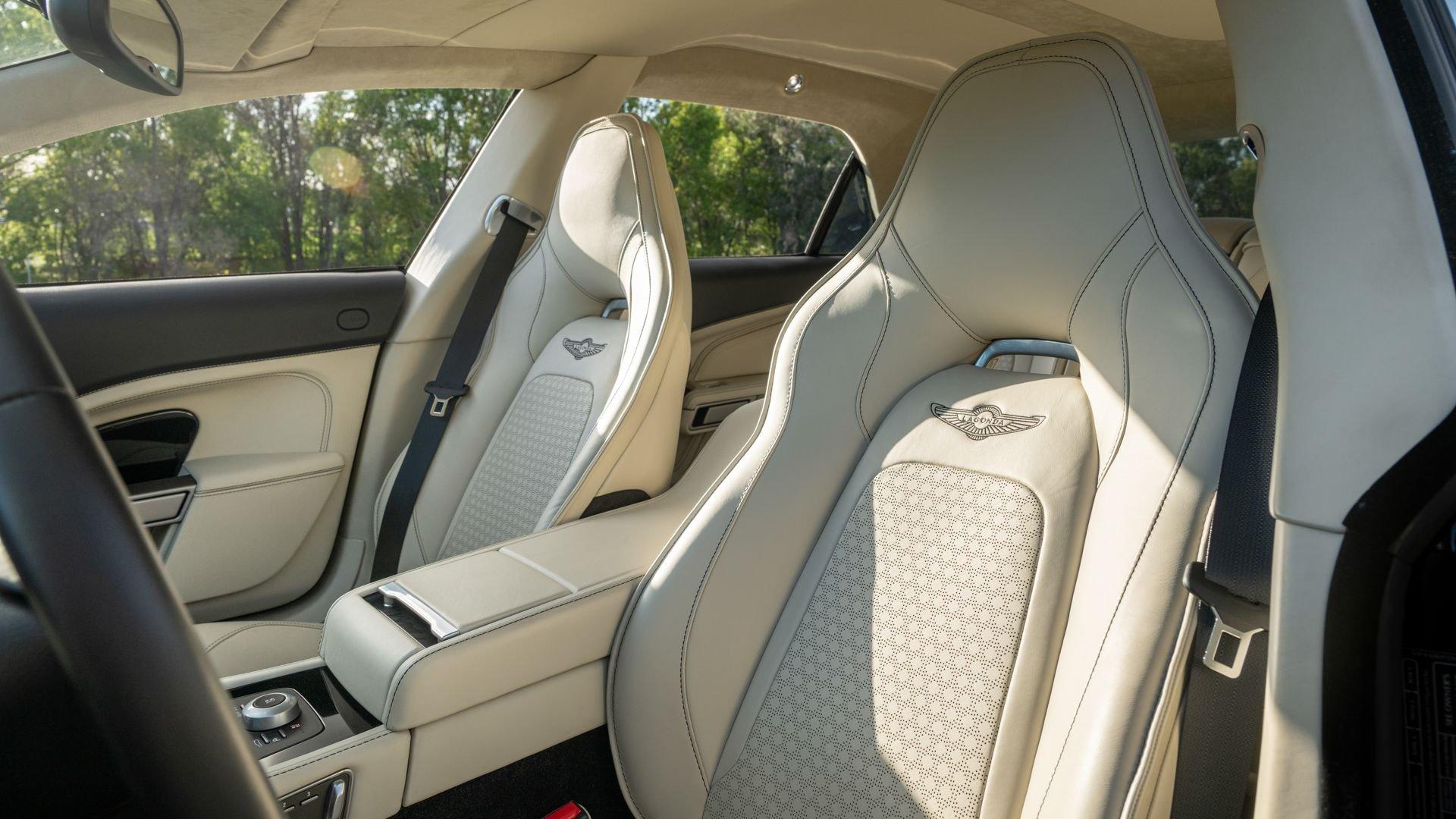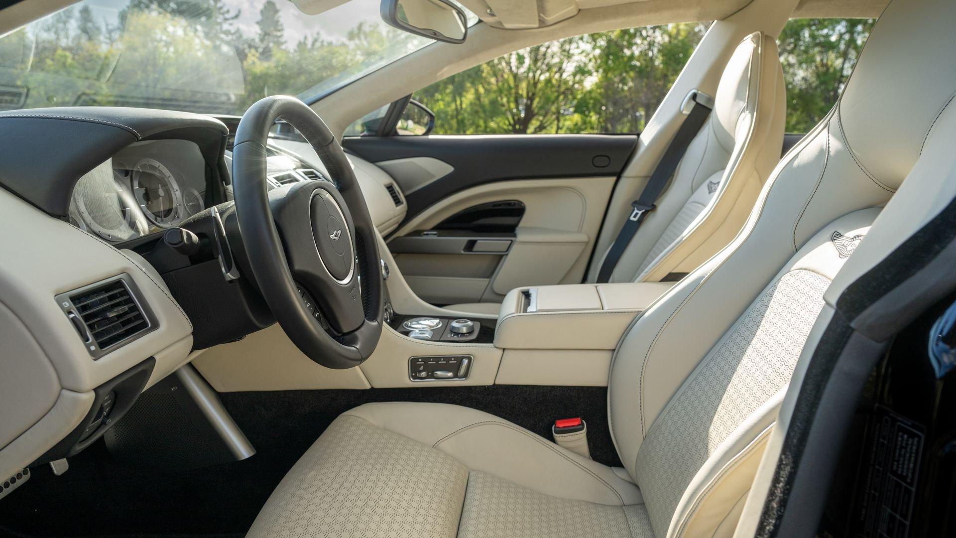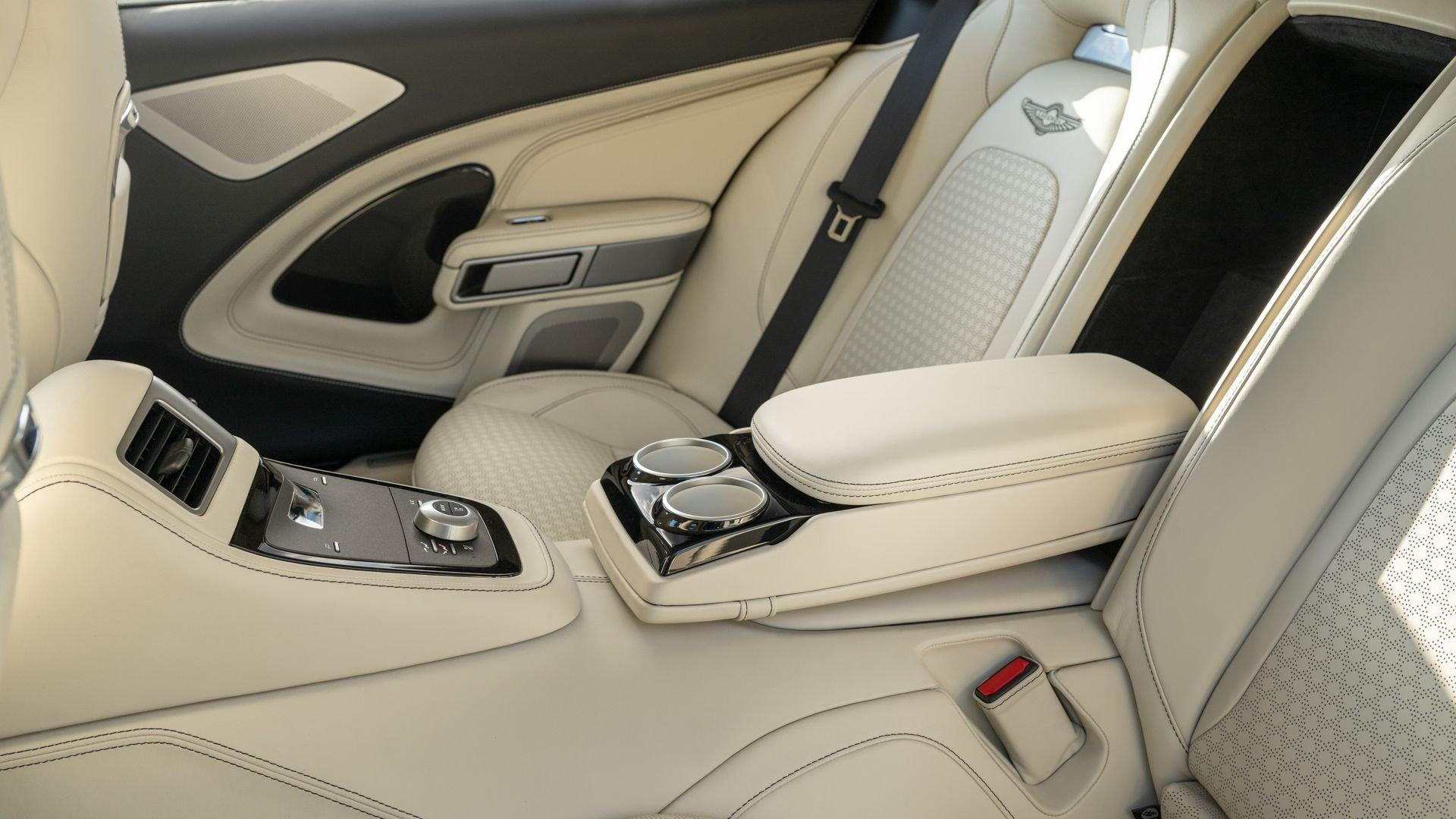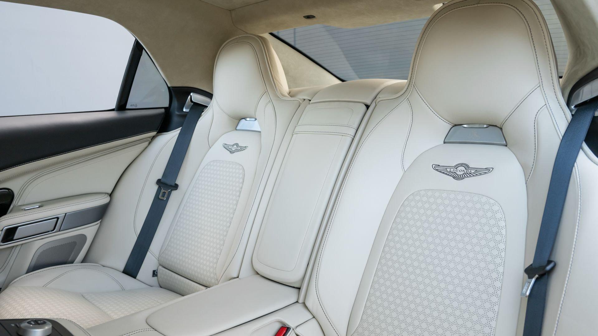 This exceptionally rare Aston now shows less than 500 miles at cataloging. It is furnished with its delivery items including iPad Minis with frame assemblies that attach to the front seatbacks, Bang & Olufsen headphones, owner's manual, Aston Martin-branded first aid kit, tire inflator, and Lagonda-badged umbrella.
