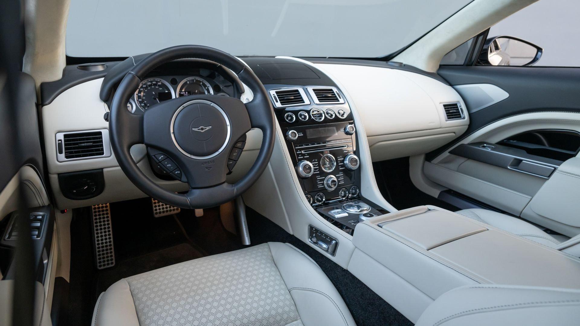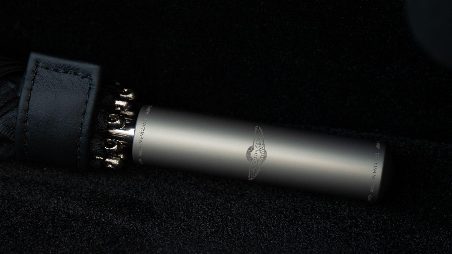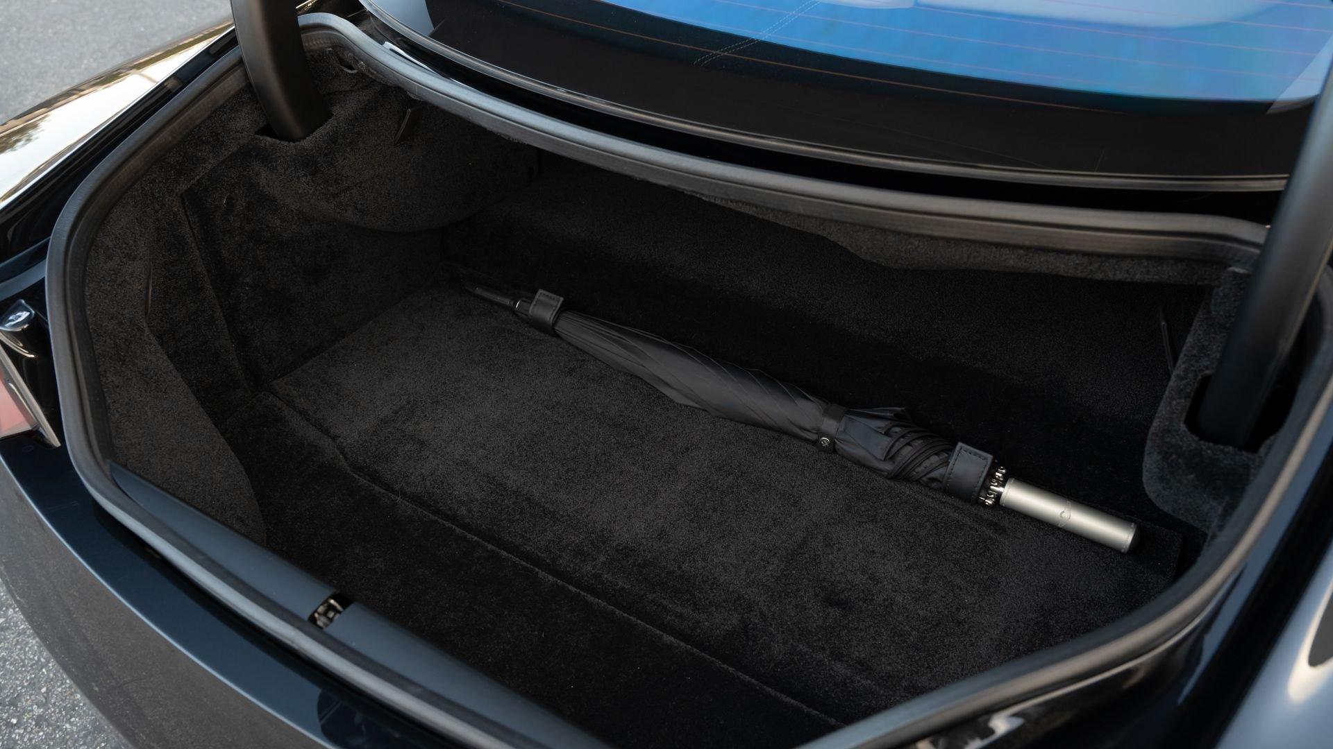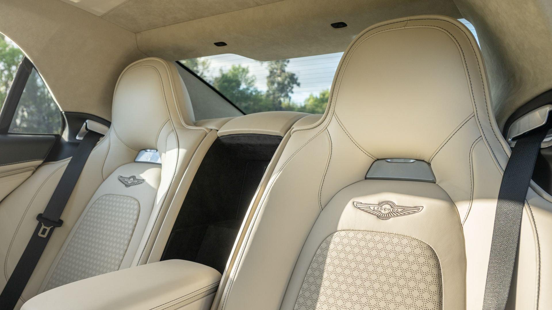 This exceptionally rare Aston now shows less than 500 miles at cataloging. It is furnished with its delivery items including iPad Minis with frame assemblies that attach to the front seatbacks, Bang & Olufsen headphones, owner's manual, Aston Martin-branded first aid kit, tire inflator, and Lagonda-badged umbrella.