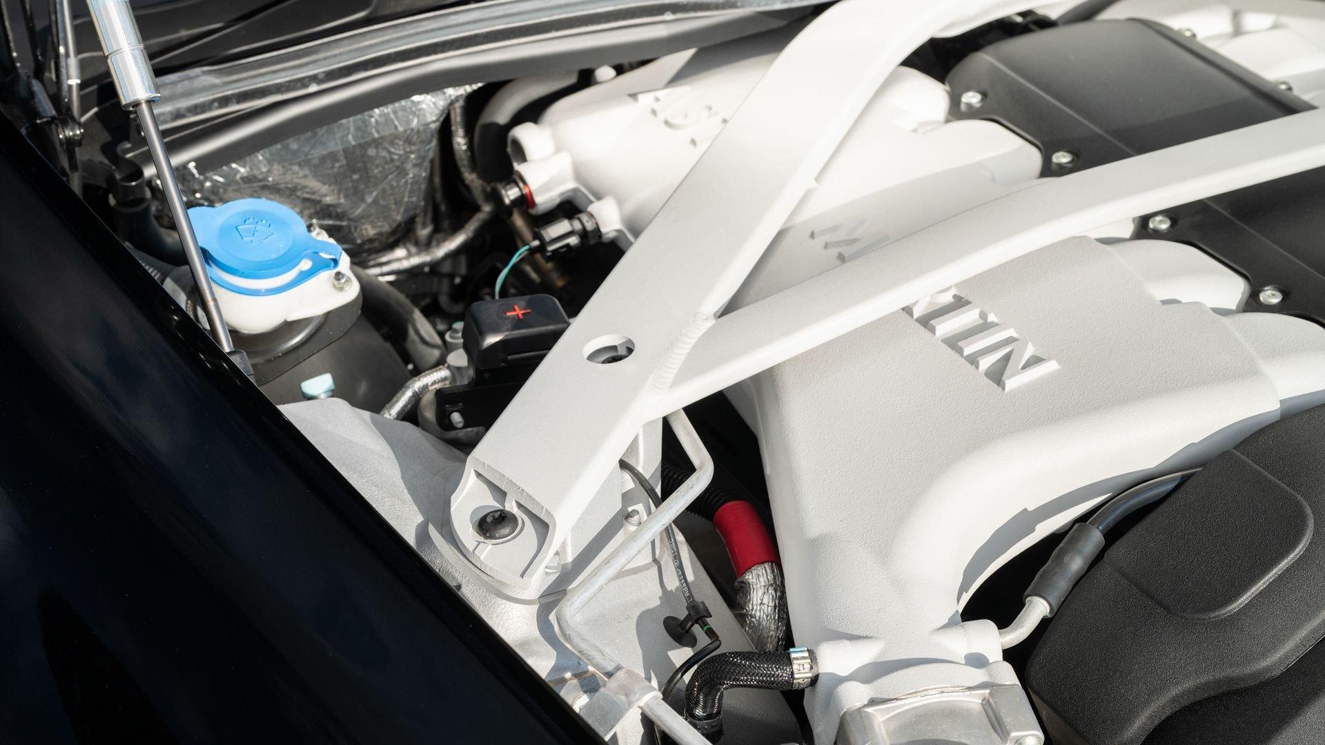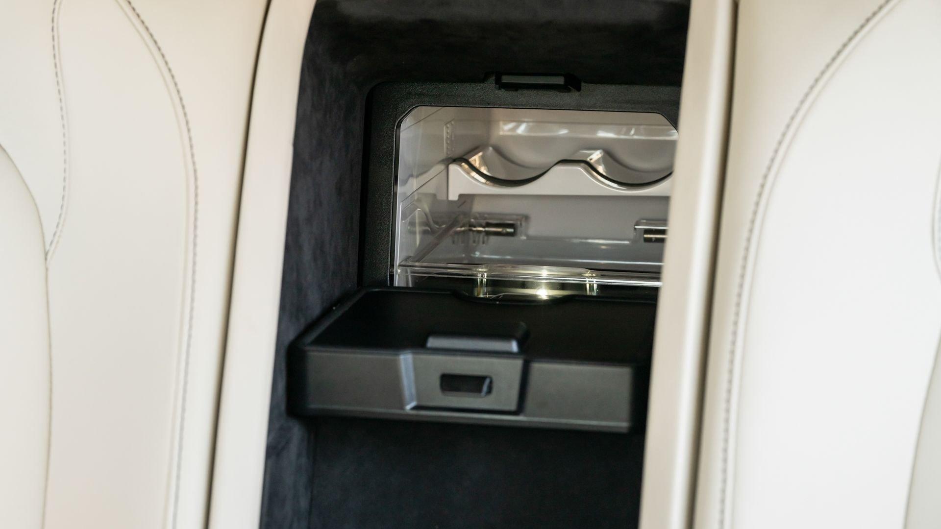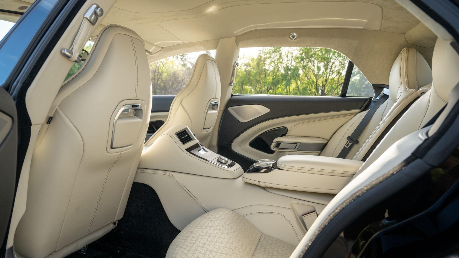 The Taraf was designed by Marek Reichman, who had penned such brilliant contemporary designs as the One-77, Rapide, DBS, and Vulcan, and was developed by the bespoke Q by Aston Martin division. Its name, which translates from Arabic to “ultimate luxury,” leaves no ambiguity. Though sharing the same Vertical/Horizontal (VH) platform as the Rapide and DBS, the Taraf's wheelbase has been extended and the roof has been subtly elevated to unlock more legroom and headroom for its passengers. Its cabin is cocooned in leather that extends to the headliner and even to the most minute details such as the seatbelt surrounds, with hand-embroidered leather contrast stitching throughout. The Taraf also comes standard with a trove of top-shelf luxury appointments: a 1,000-watt Bang & Olufsen BeoSound system with front speakers that retract into the depths of the dash when not in use, rear-mounted iPad Minis for backseat entertainment, and temperature-controlled bottle storage hidden between the rear seats that can accommodate the finest bottles-be they red and full or white and sparkling.