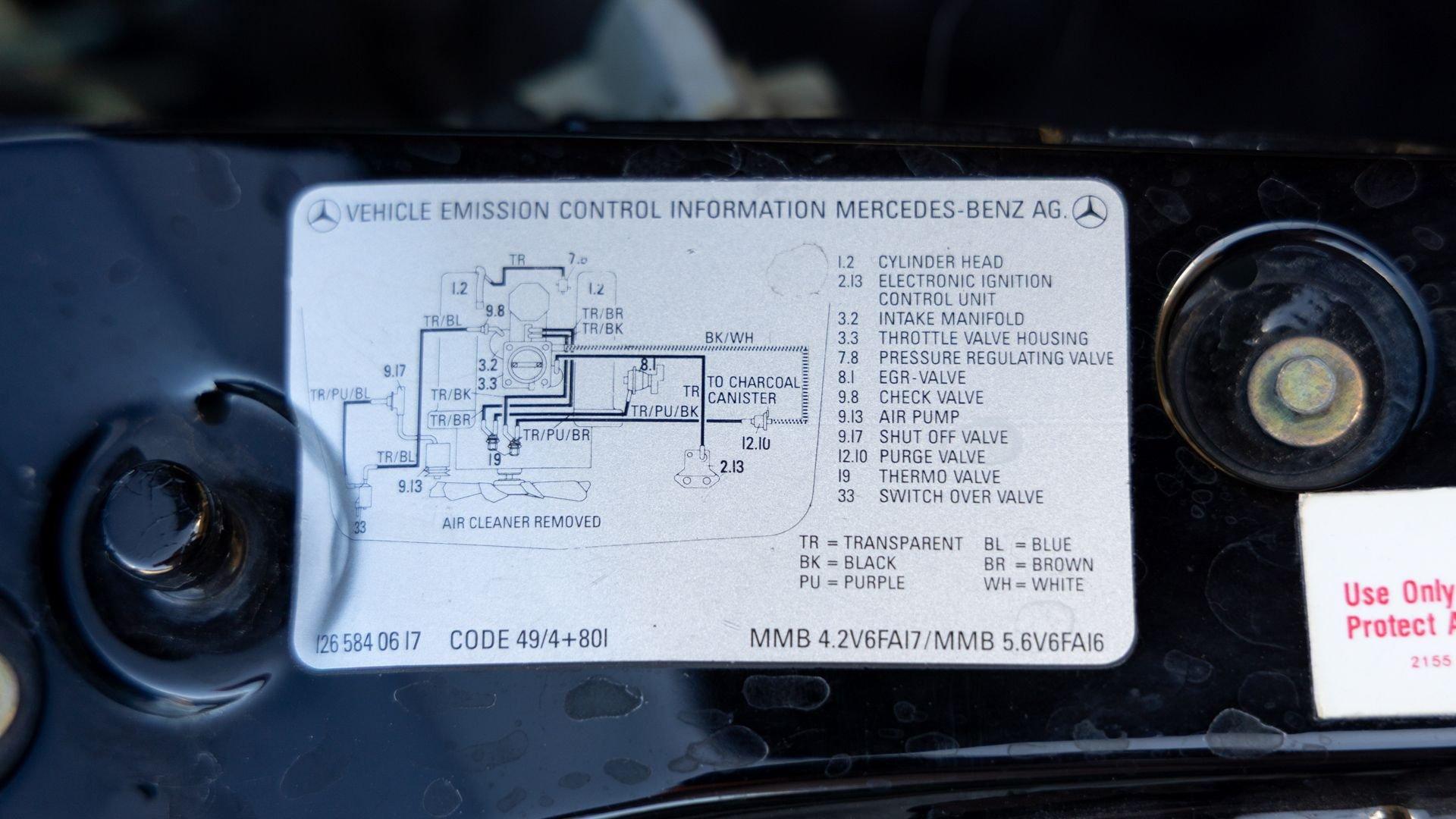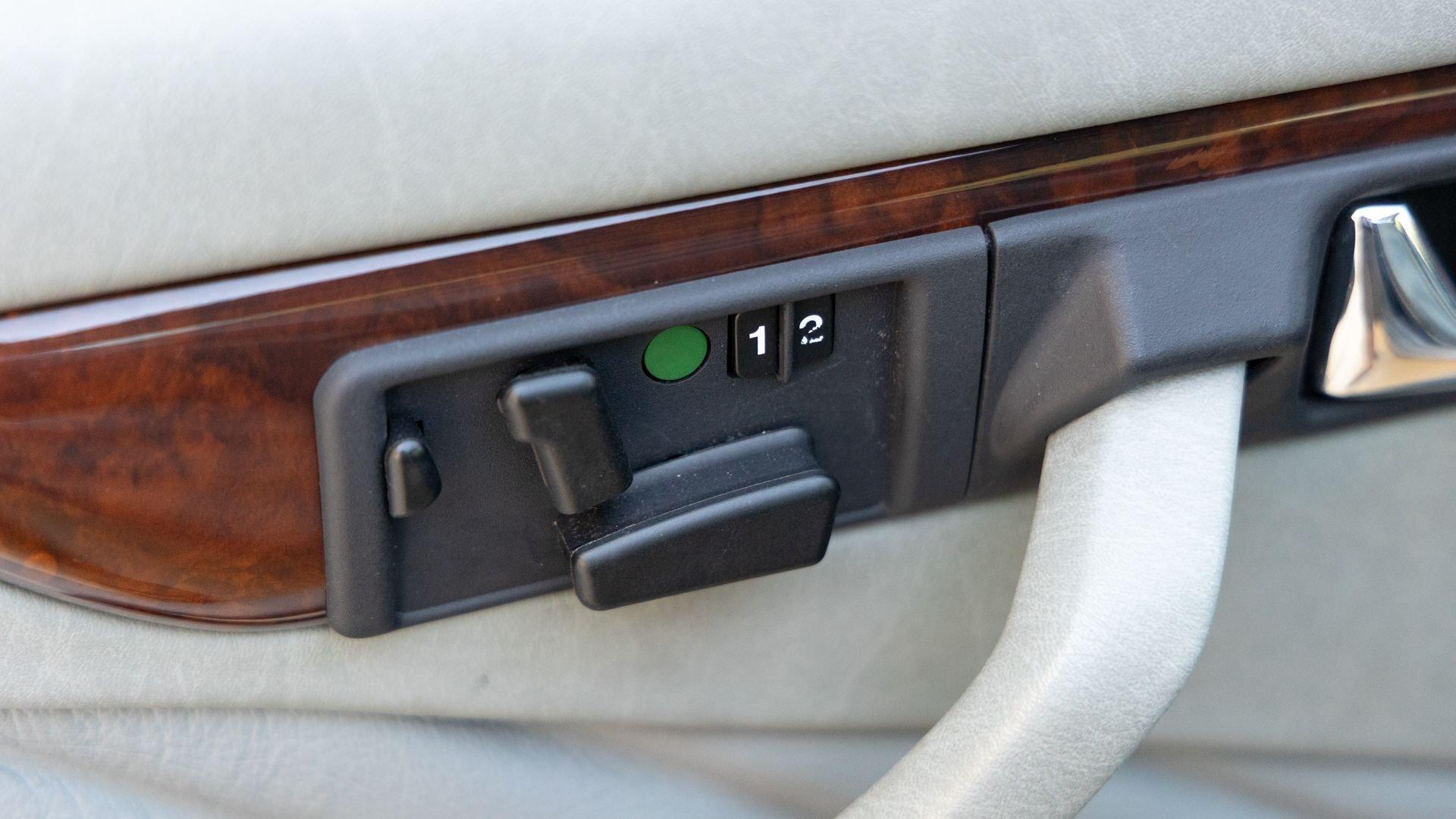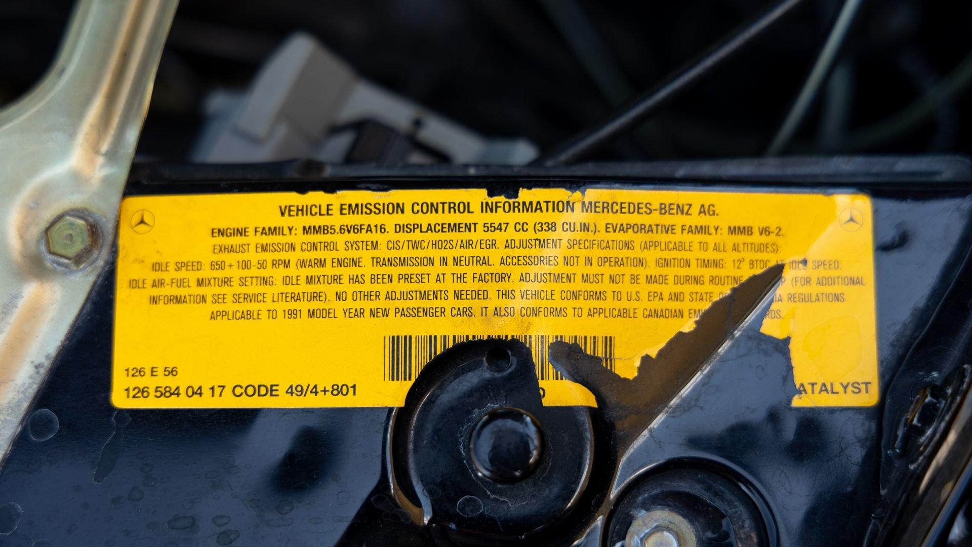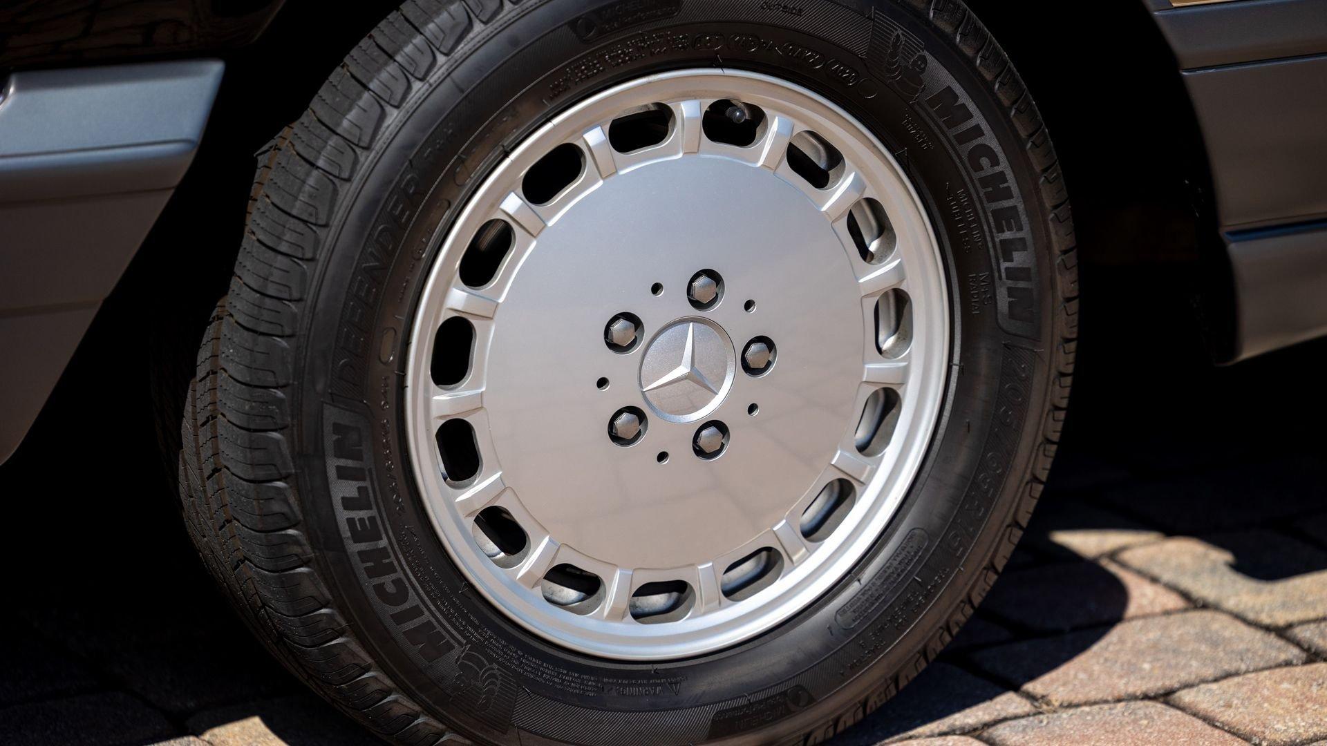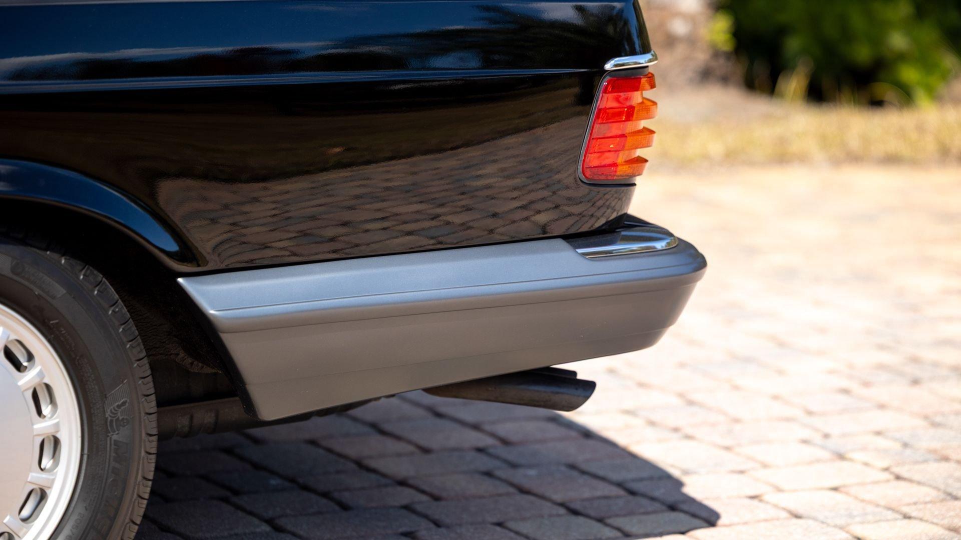 Power came from the refined 5.5-liter M117 V8, producing 238 horsepower and paired with a four-speed automatic transmission. The lengthy list of standard amenities included electric seat-belt presenters, power-adjustable front seats and steering column with two-position memory, a limited-slip differential, self-leveling rear suspension, headlamp wipers, dual front airbags, heated front seats, an electric sliding sunroof with rear pop-up function, town and country horns, and automatic climate control. All of it was housed within Bruno Sacco's restrained and elegant C126 coupe bodywork.