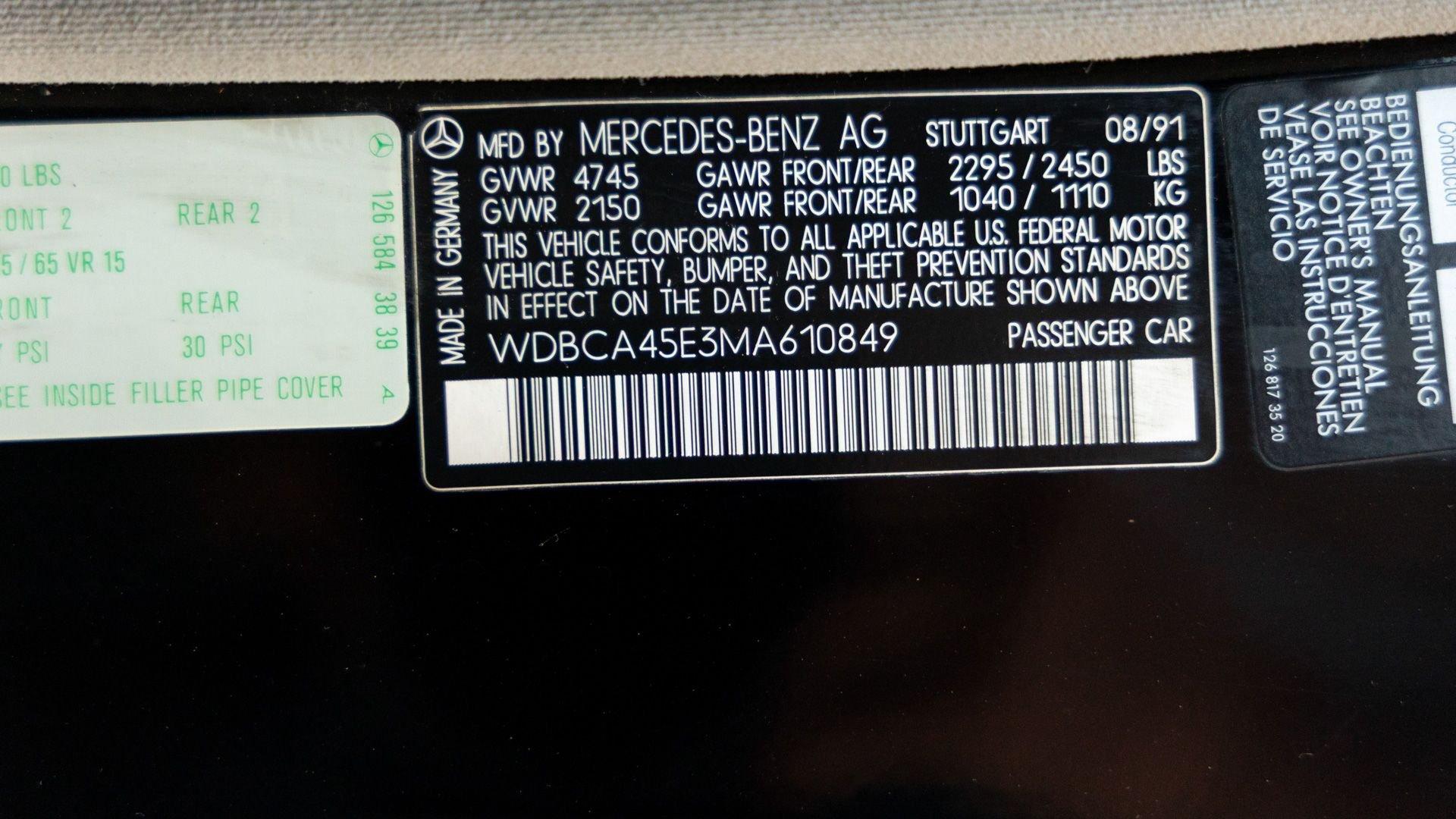 Chassis No. WDBCA45E3MA610849