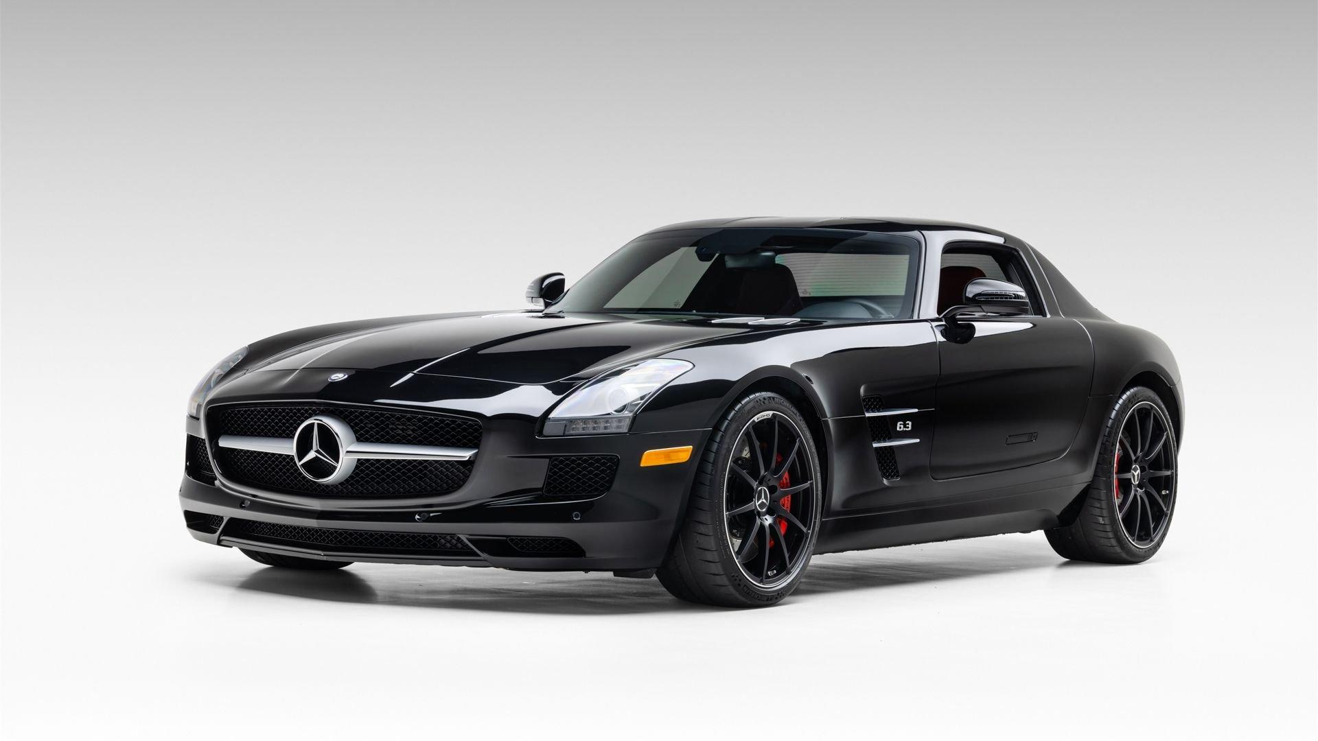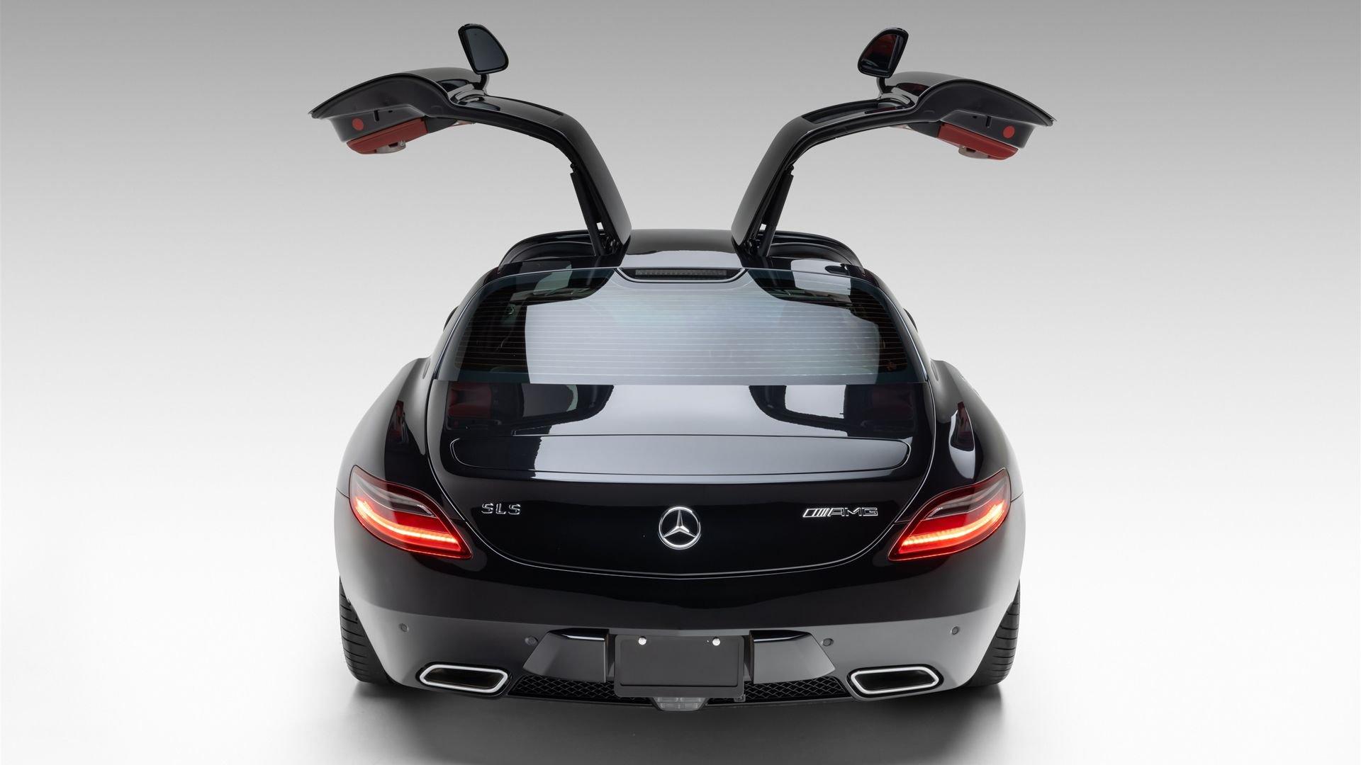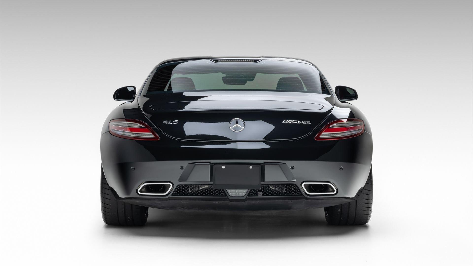 Delivered new through Mercedes-Benz of San Juan, Texas in January 2012 to its first owner, in the striking color combination of Obsidian Black Metallic with a red and black leather interior, this SLS AMG features the 19- and 20-inch AMG forged wheels that suit it perfectly, along with red brake calipers for an even more sporting appearance, matching with the interior. Among its extensive list of standard features and optional equipment for this exceptional model are the memory package (driver's seat, steering column, mirrors) and the AMG Performance steering wheel.