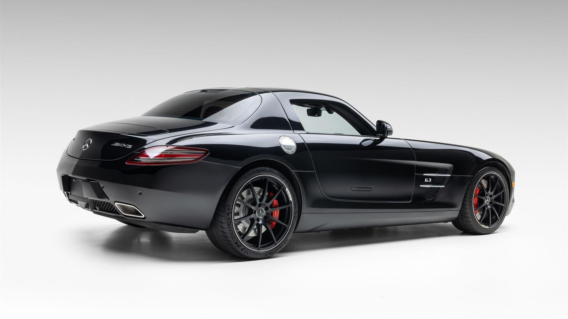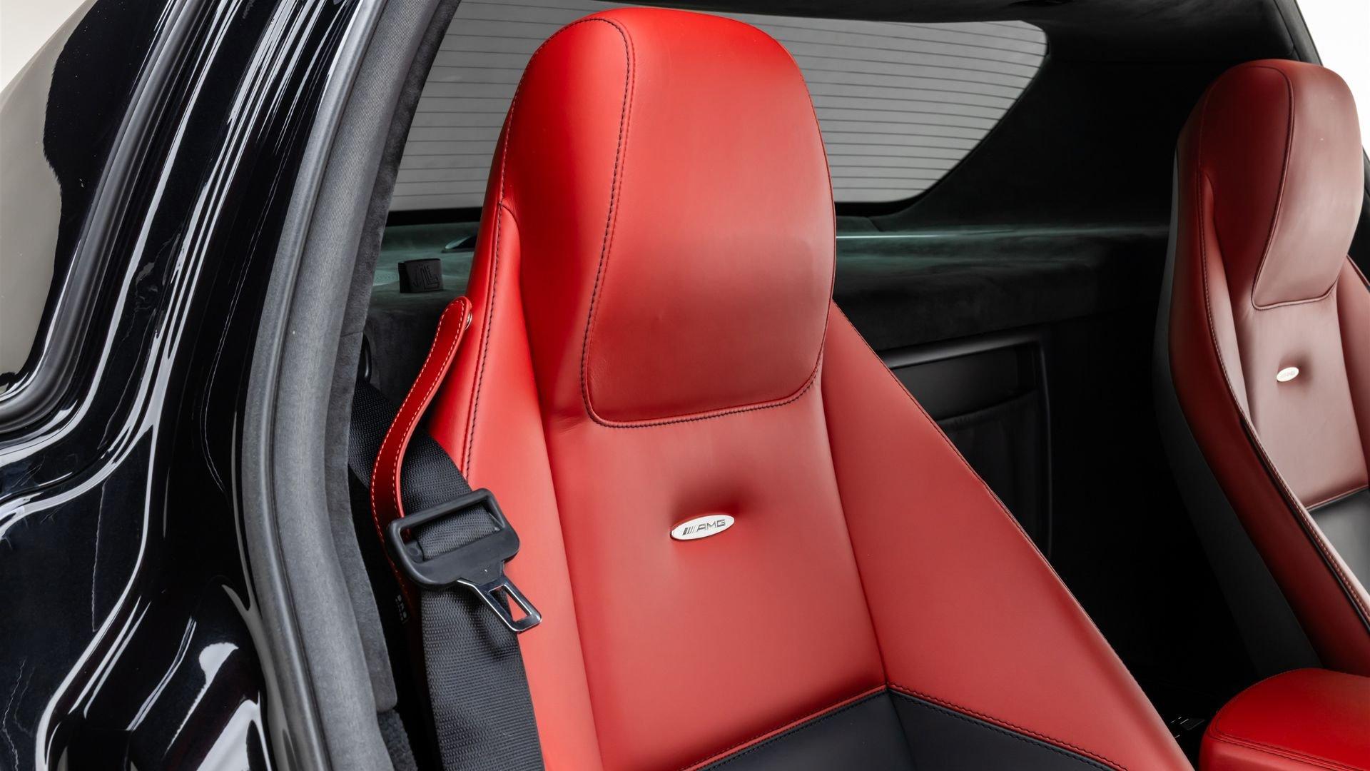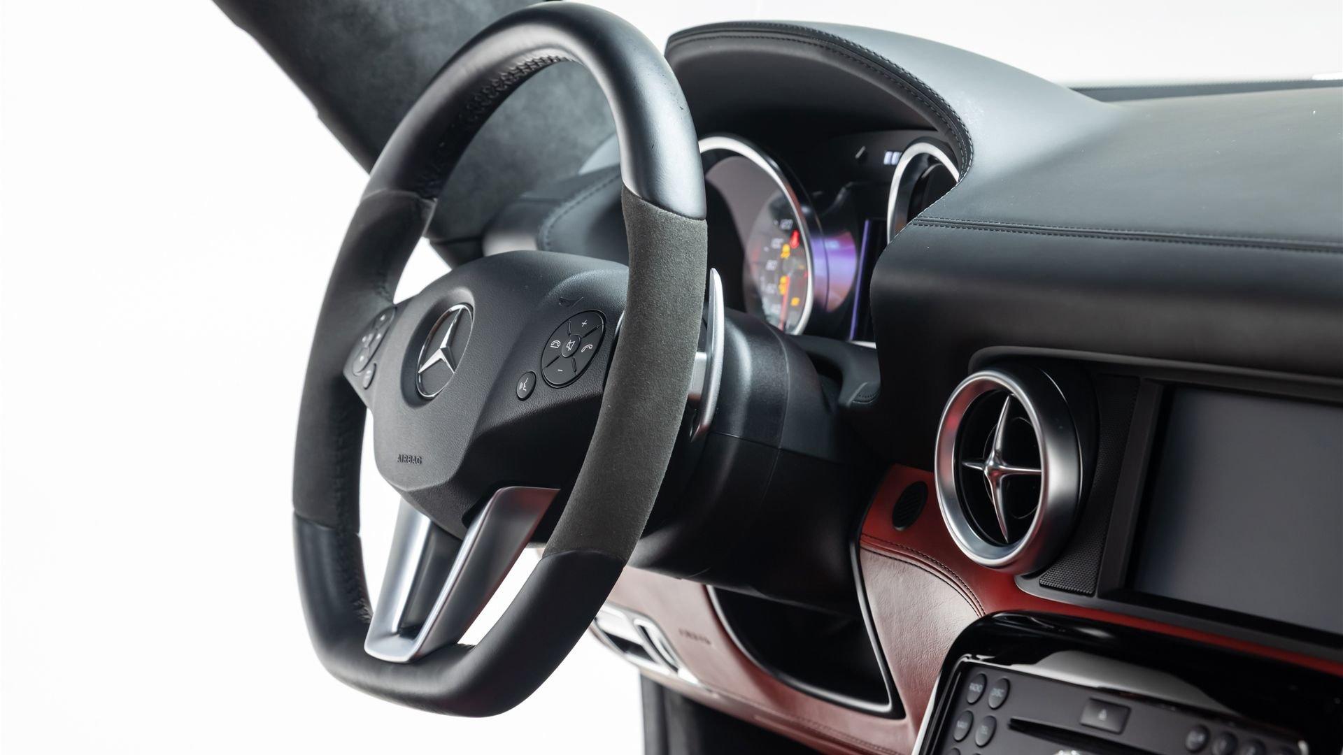 Delivered new through Mercedes-Benz of San Juan, Texas in January 2012 to its first owner, in the striking color combination of Obsidian Black Metallic with a red and black leather interior, this SLS AMG features the 19- and 20-inch AMG forged wheels that suit it perfectly, along with red brake calipers for an even more sporting appearance, matching with the interior. Among its extensive list of standard features and optional equipment for this exceptional model are the memory package (driver's seat, steering column, mirrors) and the AMG Performance steering wheel.
