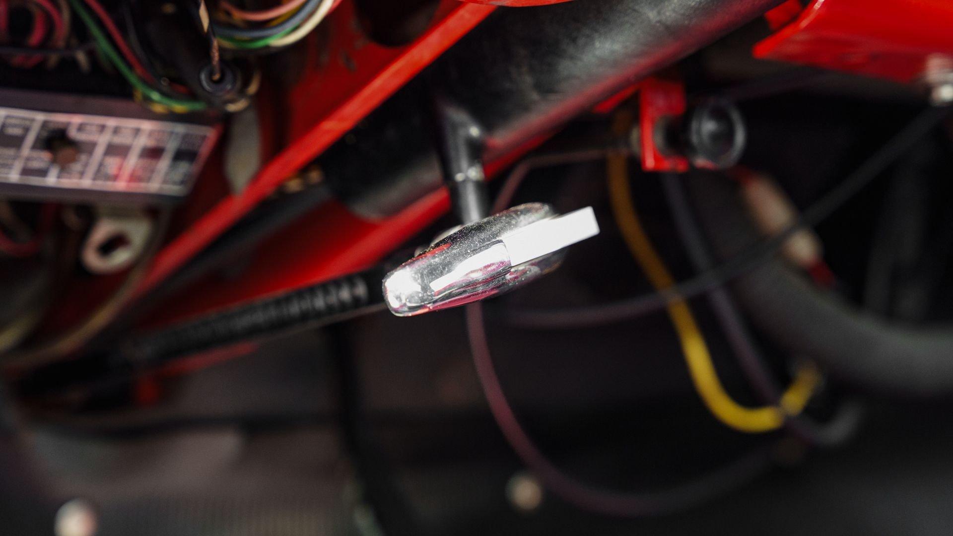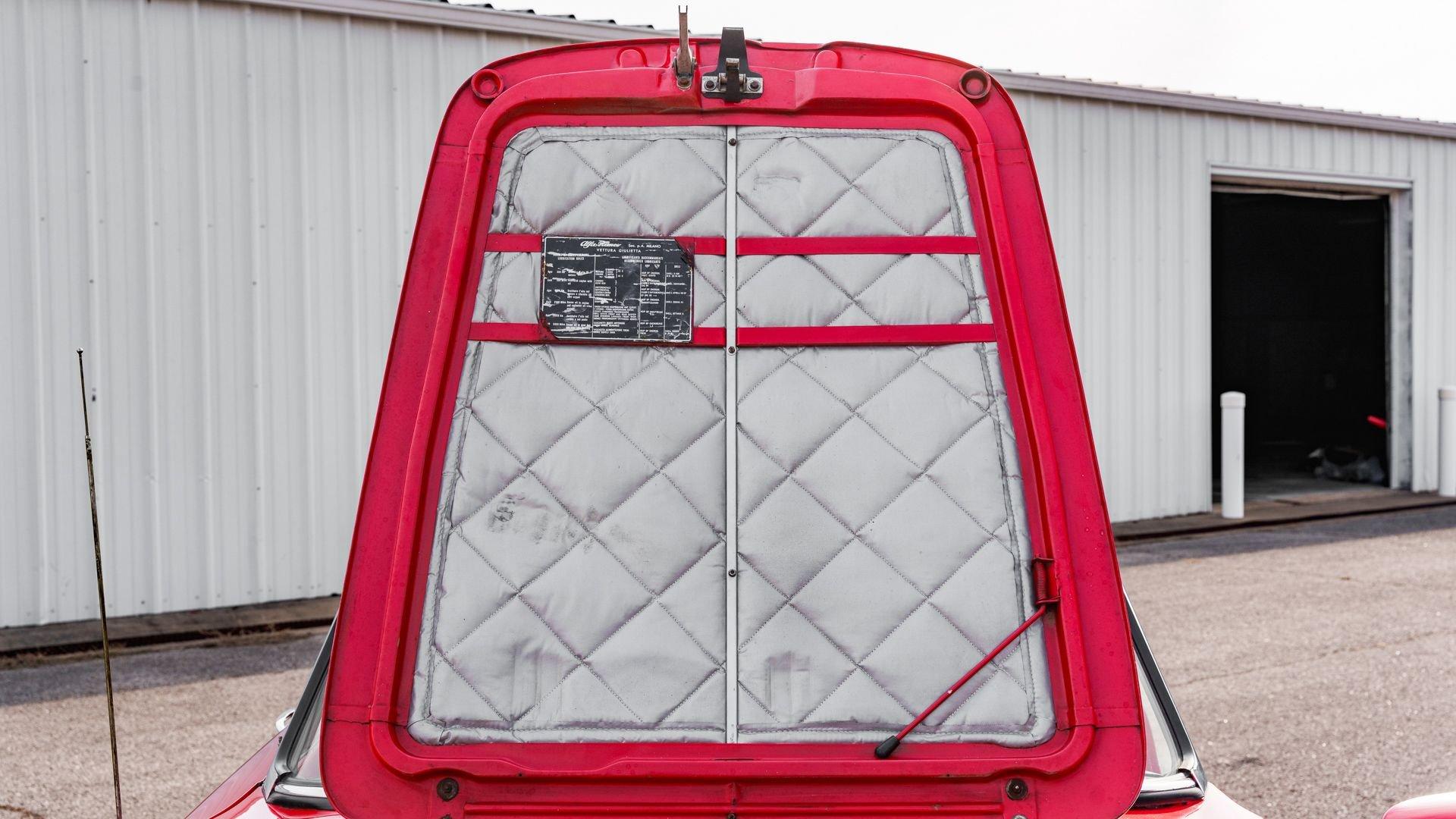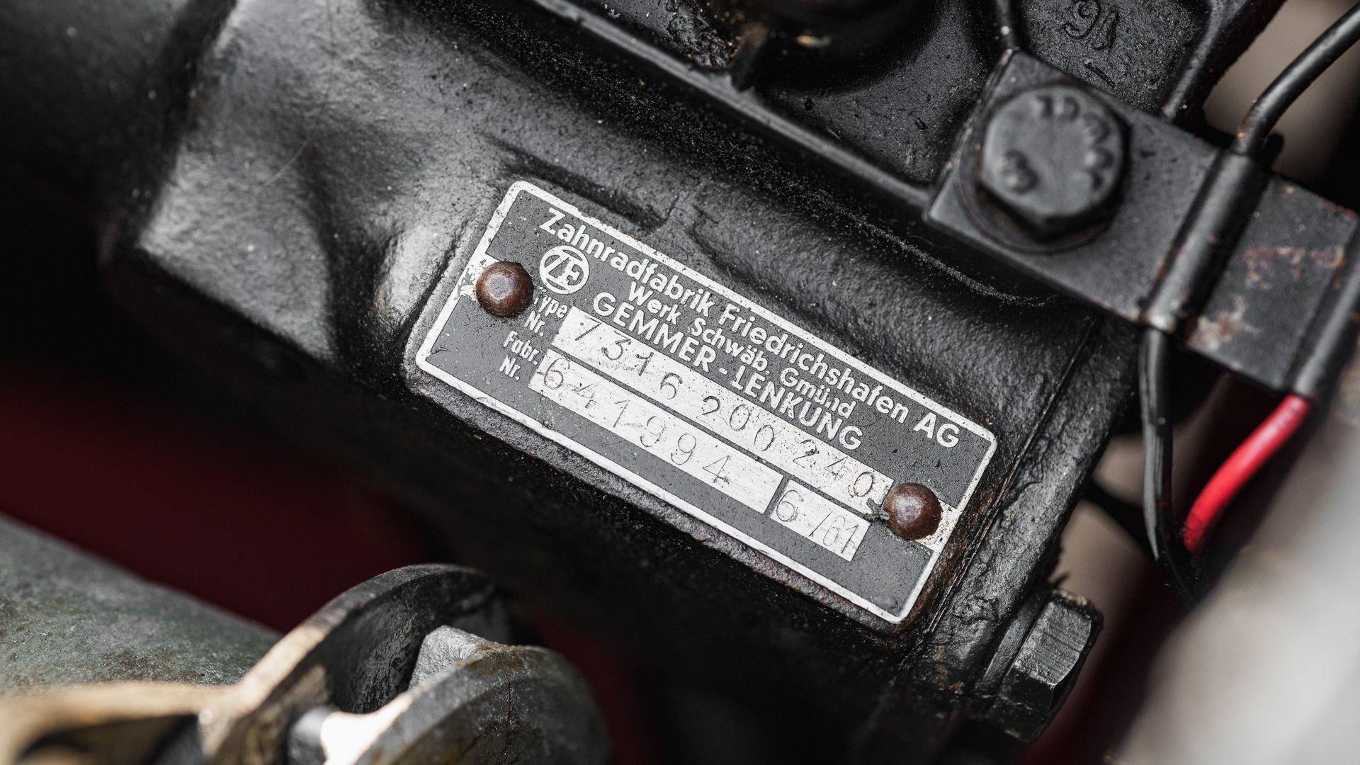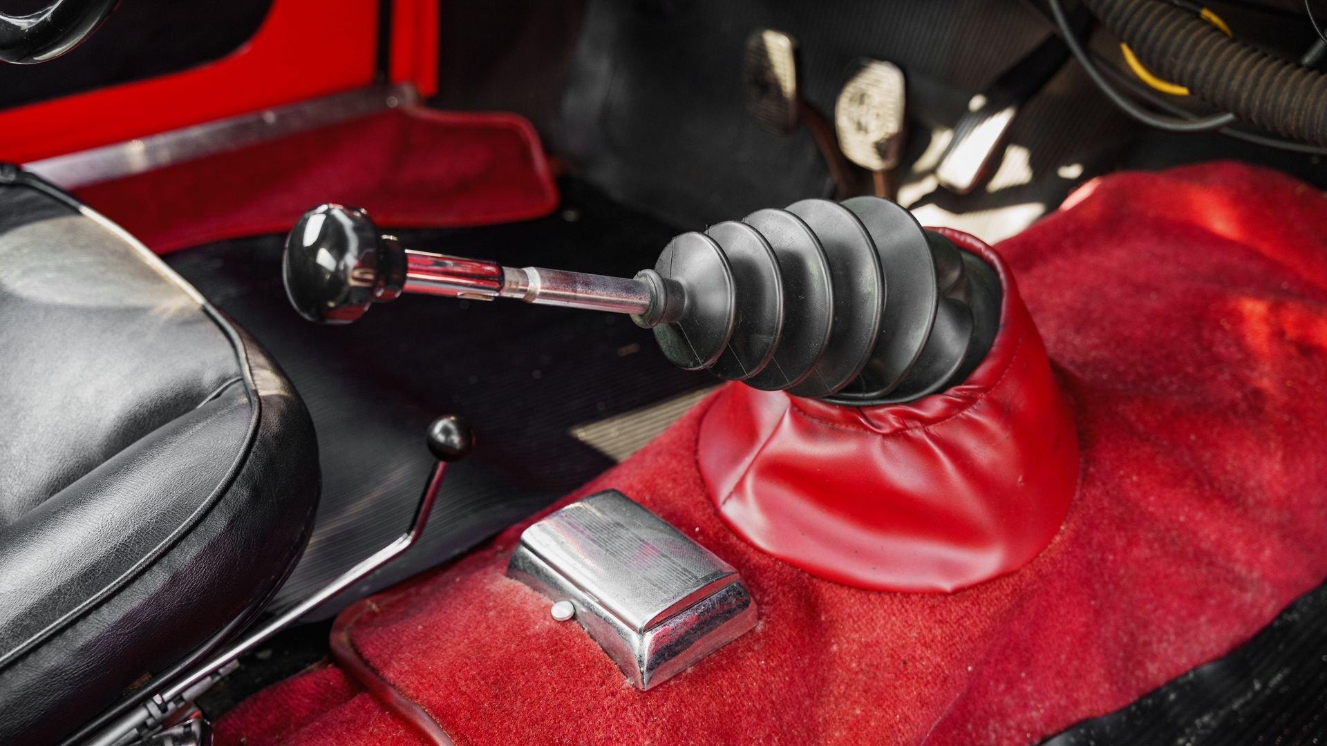 Research indicates that a restoration of this Giulietta Spider was completed by the early-2010s which included fresh paint in red and an interior in black with red carpeting. Simple rubber floor mats, roll-up windows, and lap belts feature in the interior. The dashboard is set with a Blaupunkt radio and Veglia gauges framed by a two-spoke Giulietta Special steering wheel. The engine compartment houses a correct-type aluminum block 1,290-cc twin-cam, which falls in the serial number range as original to the chassis, topped with Weber side-draft carburetors.