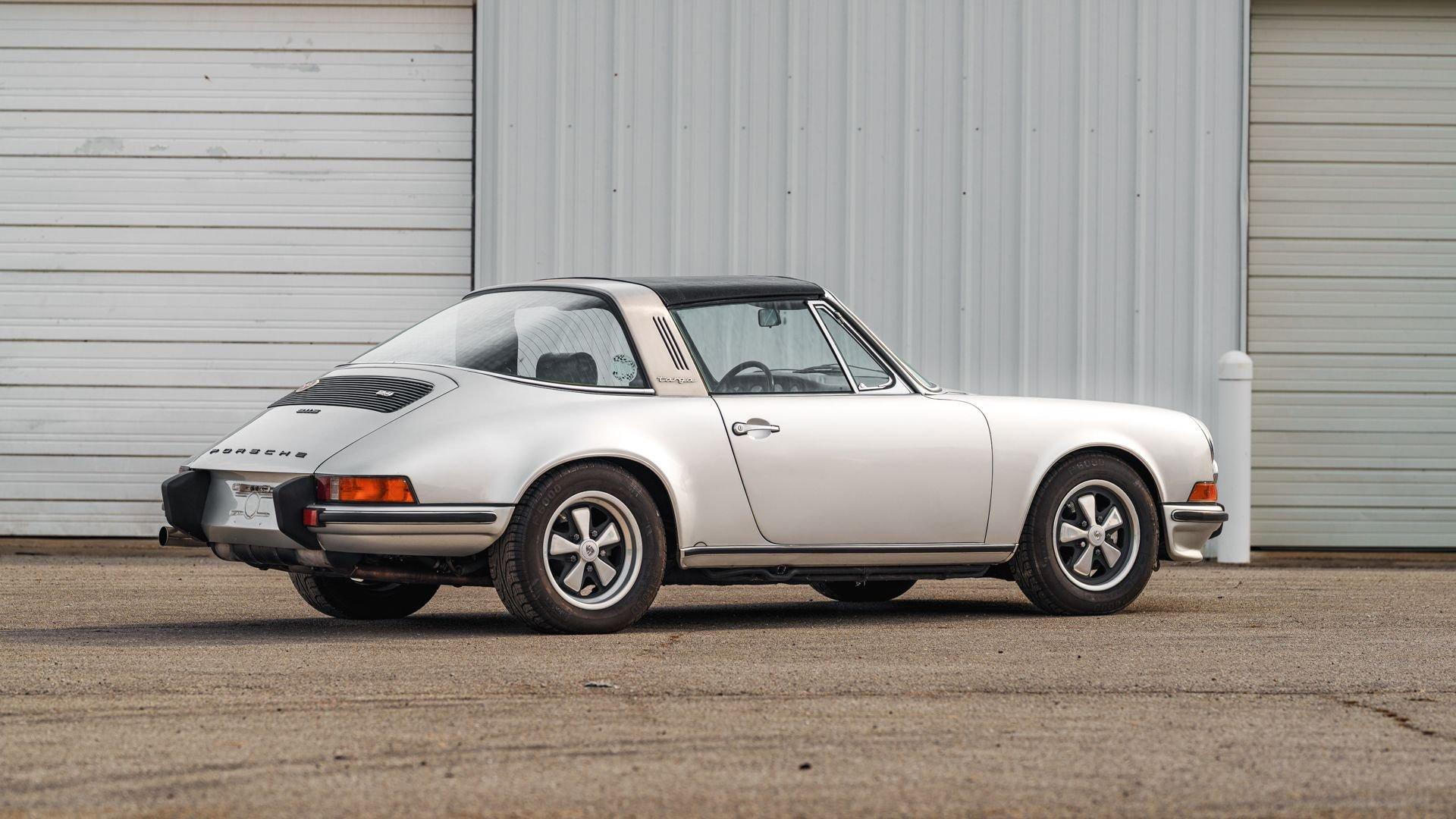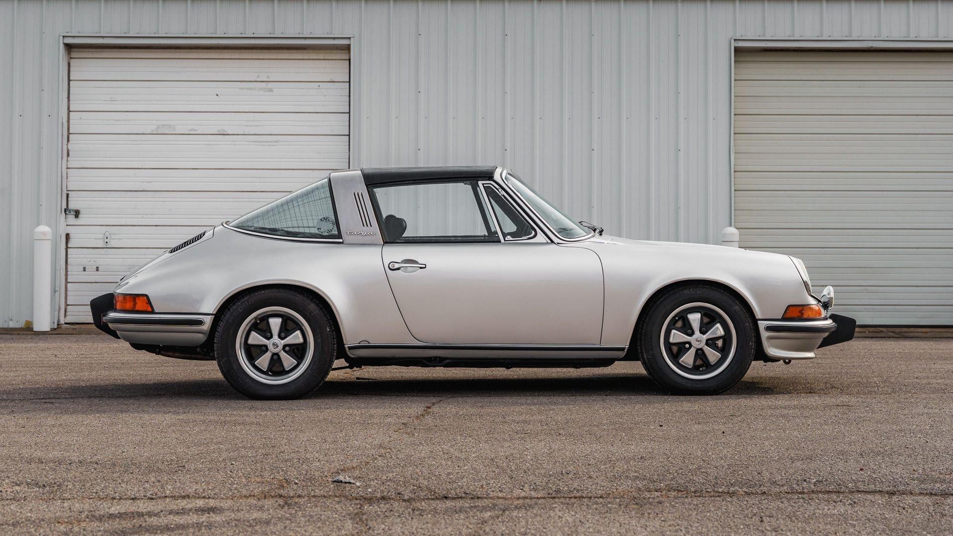 This 1973 Porsche 911 S Targa is understood to have spent the majority of its life in California, benefiting from 40 years of continuous Golden State stewardship before being acquired by the current owner in 2024. Under prior ownership, it was modified with flared rear fenders and refinished in silver, a purposeful look complemented by its stainless-steel Targa bar, black removable roof panel, front spoiler, and auxiliary driving lights. Power comes from its original, matching-numbers mechanically fuel-injected flat-six per Jürgen Barth, reportedly rebuilt by Precision Motion in 1993 and enlarged to 2.8 liters, paired with a 915 five-speed manual transaxle.