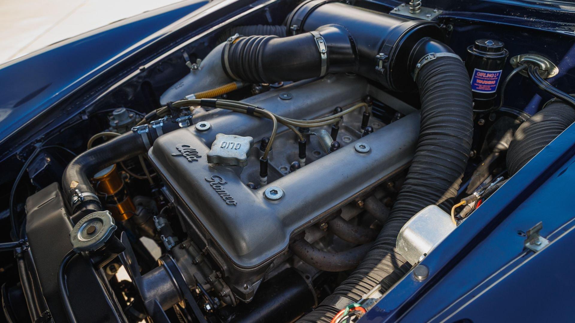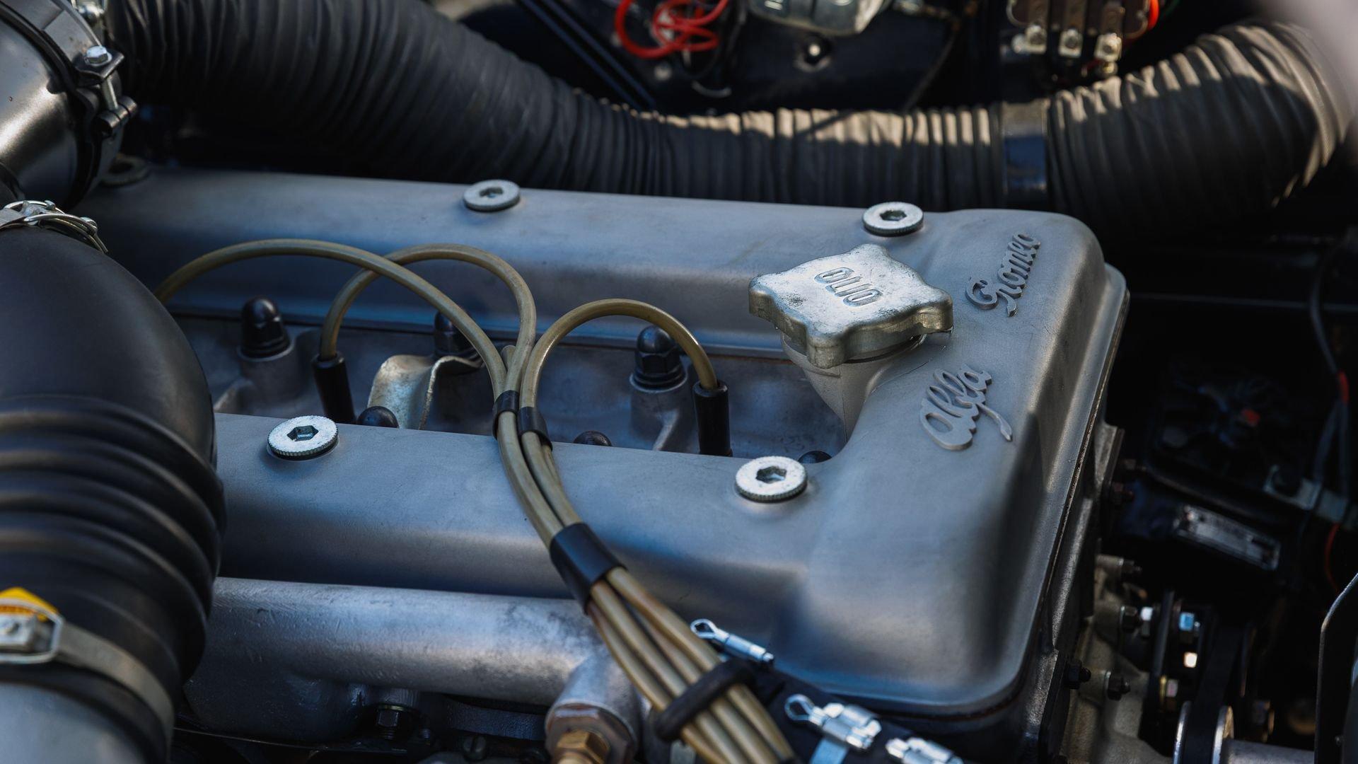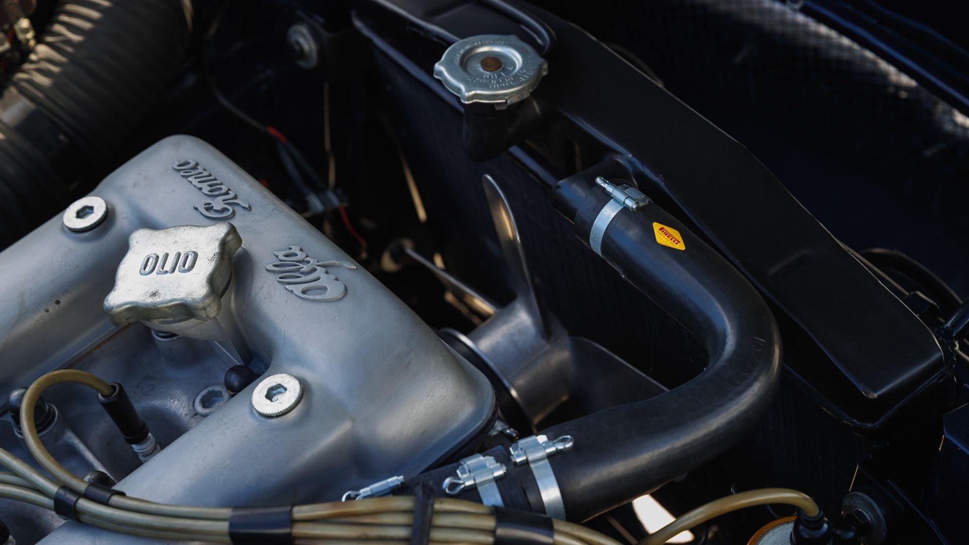 The very first prototype of the Giulietta SS was unveiled in 1957 at the Turin Motor Show. The production version was presented on 24 June 1959 at Monza, powered by a 1,300-cc aluminum four-cylinder engine fed by two Weber carburetors and paired with a five-speed manual transmission. Delivering around 116 horsepower, it was more than enough to propel this ultra-light two-seat coupe to nearly 125 mph.