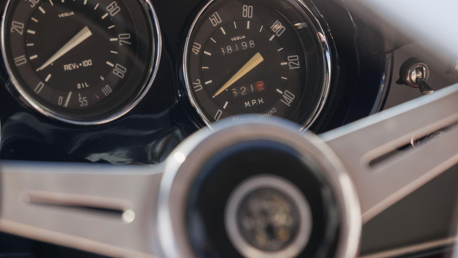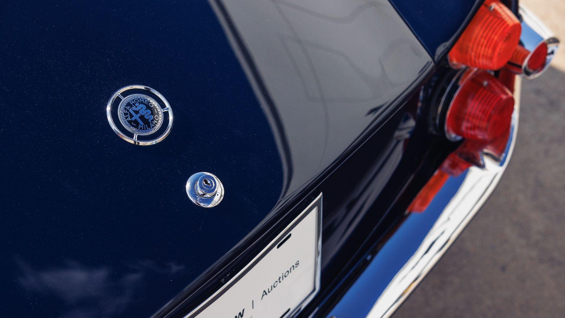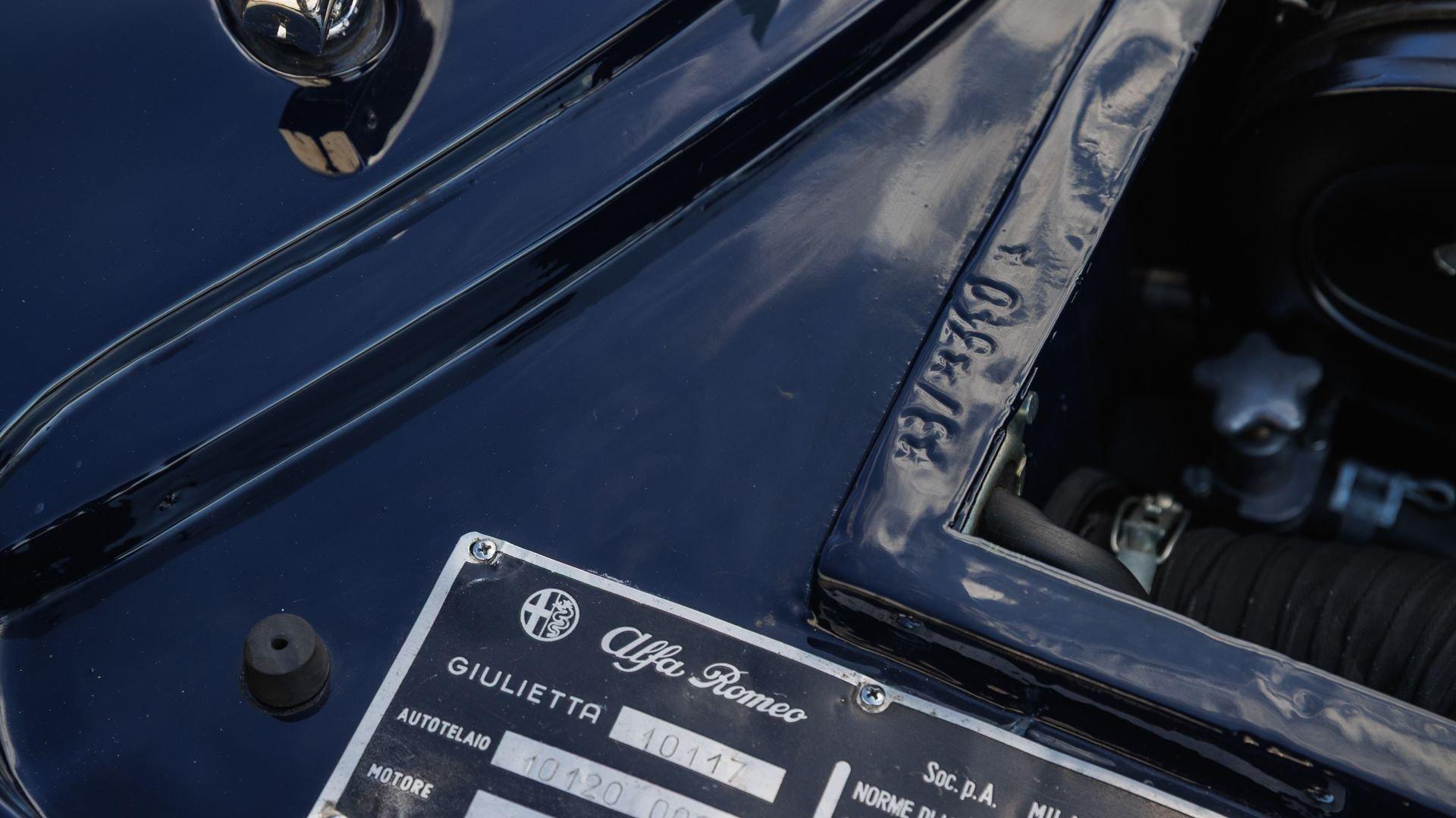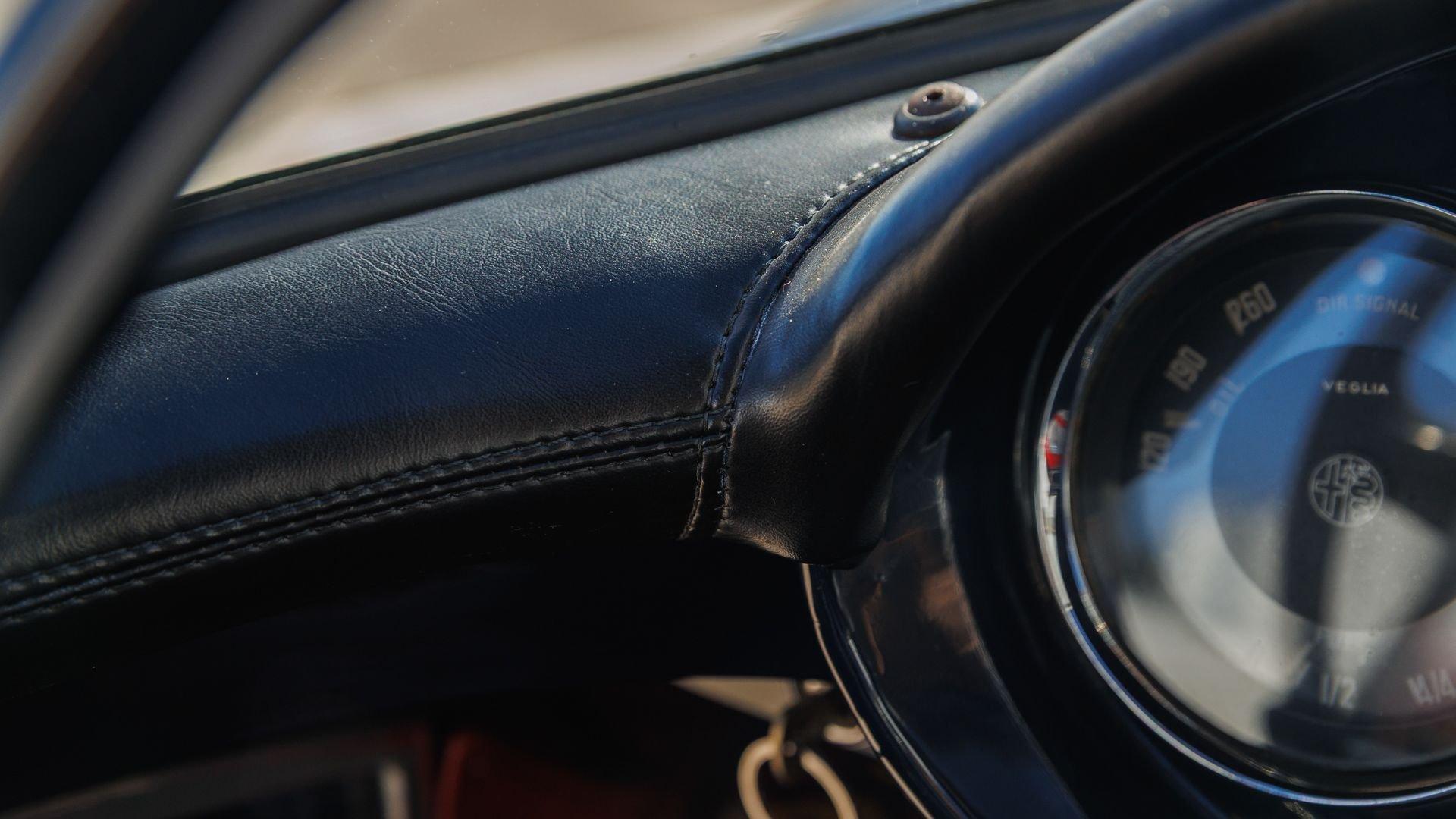 According to a copy of its Alfa Romeo Certificato di Origine, this Giulietta Sprint Speciale was delivered new in the U.S. in 1961, finished in Bianco Gardenia. Presented for public sale in 2017, the listing noted that the car had undergone a complete restoration a few years earlier, finished in dark blue over two-tone red and gray upholstery, which it still retains. The description also noted that the car had a convincing appearance of authenticity, with what seemed to be the original serial number plates, body and chassis stampings, and the original engine still under the hood.