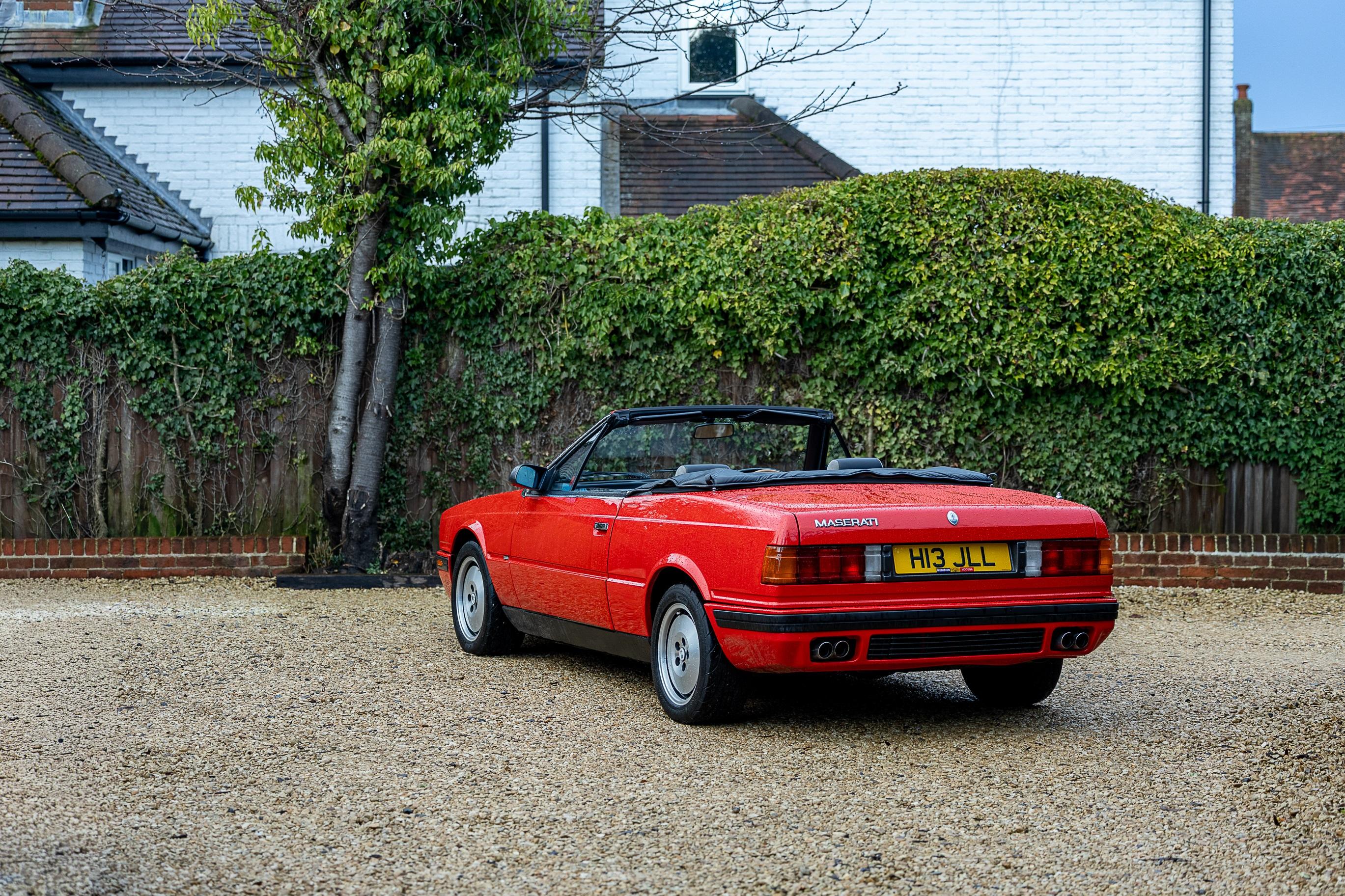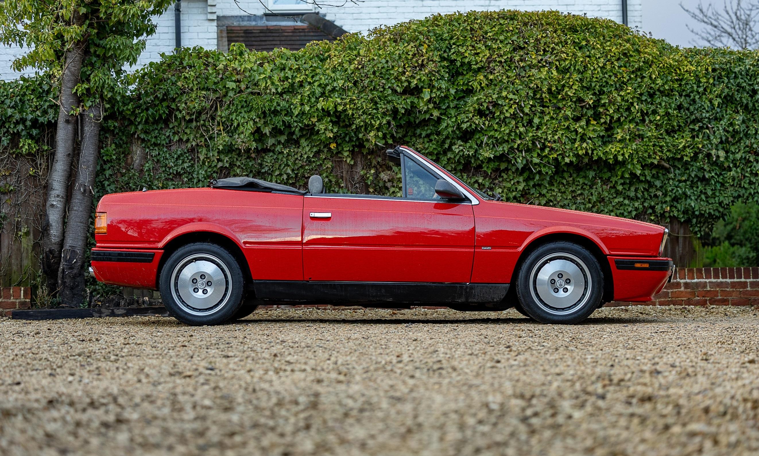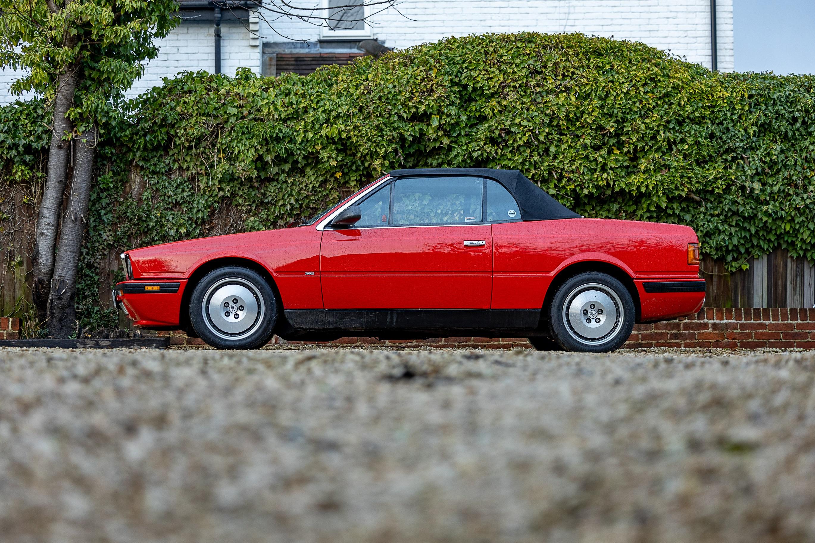 The Maserati delivery certificate shows that this lovely example was first registered on 15th March 1991. Presenting beautifully in its red paintwork over Nero leather interior, this car is a rare beast and is believed to be around one of seven in the country, and of only around 90 right hand drive examples built. The car is reported by the vendor to run and drive very well and comes with an impressive service history of 15 services carried out at regular intervals including the major engine-out service performed by renowned specialist Modena McGrath in 2021 at a cost of over £3,000. It is supplied with a V5C registration document and excellent service history file, along with a freshly issued MoT test certificate valid through until March 2027 that shows no advisories. There cannot be a better value route to Italian open- top classic car ownership than these often underappreciated Bi-Turbo Spyders, penned by design legend Zagato. Consigned by Will Penrose