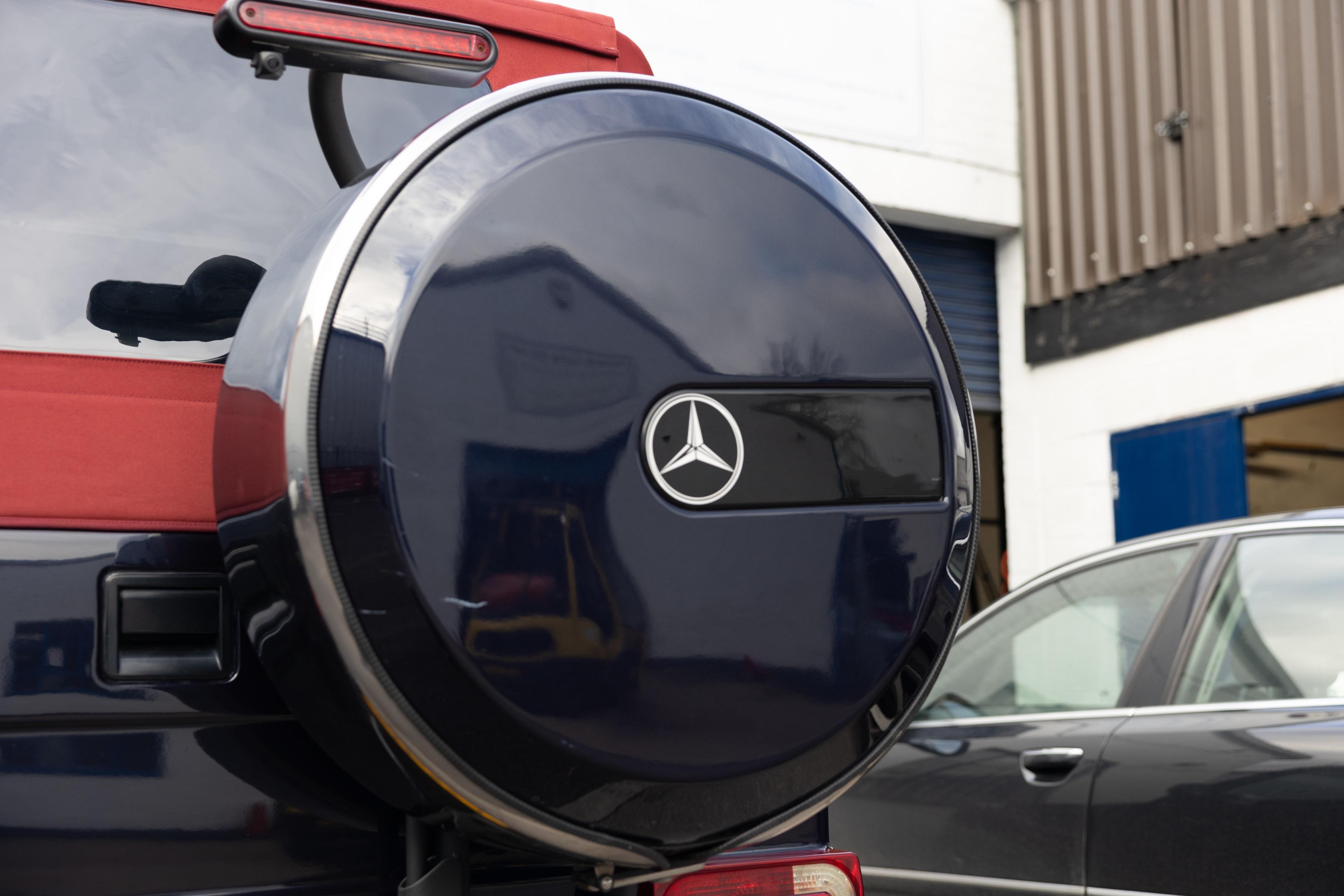 This example is presented in navy blue with a grey leather interior a new burgundy hood has just been fitted making this a great looking car. Standard equipment includes heated seats, air conditioning, electric seats with memory function, and a well-appointed cabin throughout. It is further enhanced with 23-inch Monoblock Brabus alloy wheels, side running boards, a stainless steel spare wheel cover, reversing aids, the COMAND operating and display system, and a Brabus front grille. Supplied with a V5 registration document, a current MoT valid until 10th July 2026, and a supporting history file, this G400 Convertible stands as a true collector's gem — valued for its rarity, craftsmanship, and distinctive blend of luxury and off-road capability. Consigned by Stewart Banks