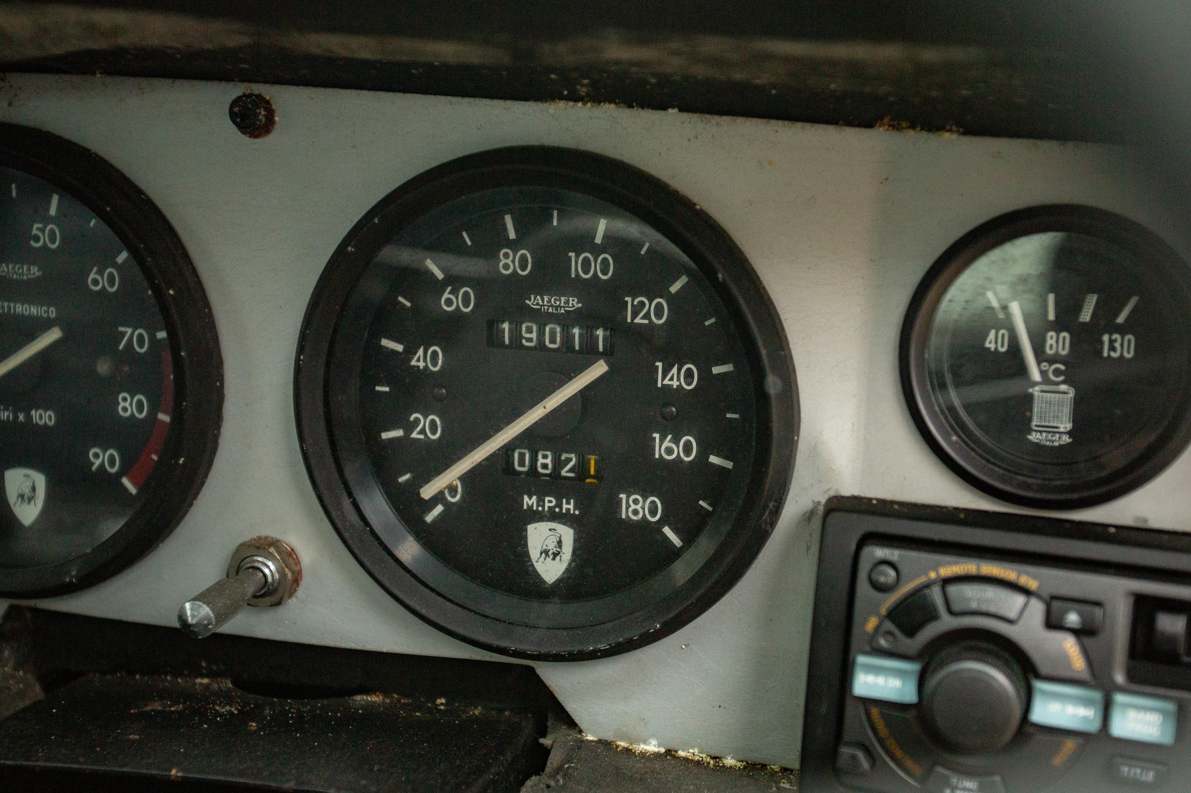This particular Lamborghini Espada was cherished by its previous owner for an impressive 27 years, from 1997 until recently, before passing to its current custodian, who acquired the car with every intention of restoring it to concours standard. However, increasing work commitments have meant the project has yet to begin and, with regret, he has taken the difficult decision to part with it. As such, it is now excitingly offered without reserve, presenting a rare opportunity for the market to determine its value. Having spent much of its recent life off the road in dry, secure storage, the car appears notably complete and fundamentally solid. An old tax disc dated 2006 remains in the windscreen, suggesting this was the last time it saw regular use. The odometer displays 19,011 miles and, while this cannot be warranted, the minimal wear to areas such as the pedals and switchgear would seem consistent with modest mileage.