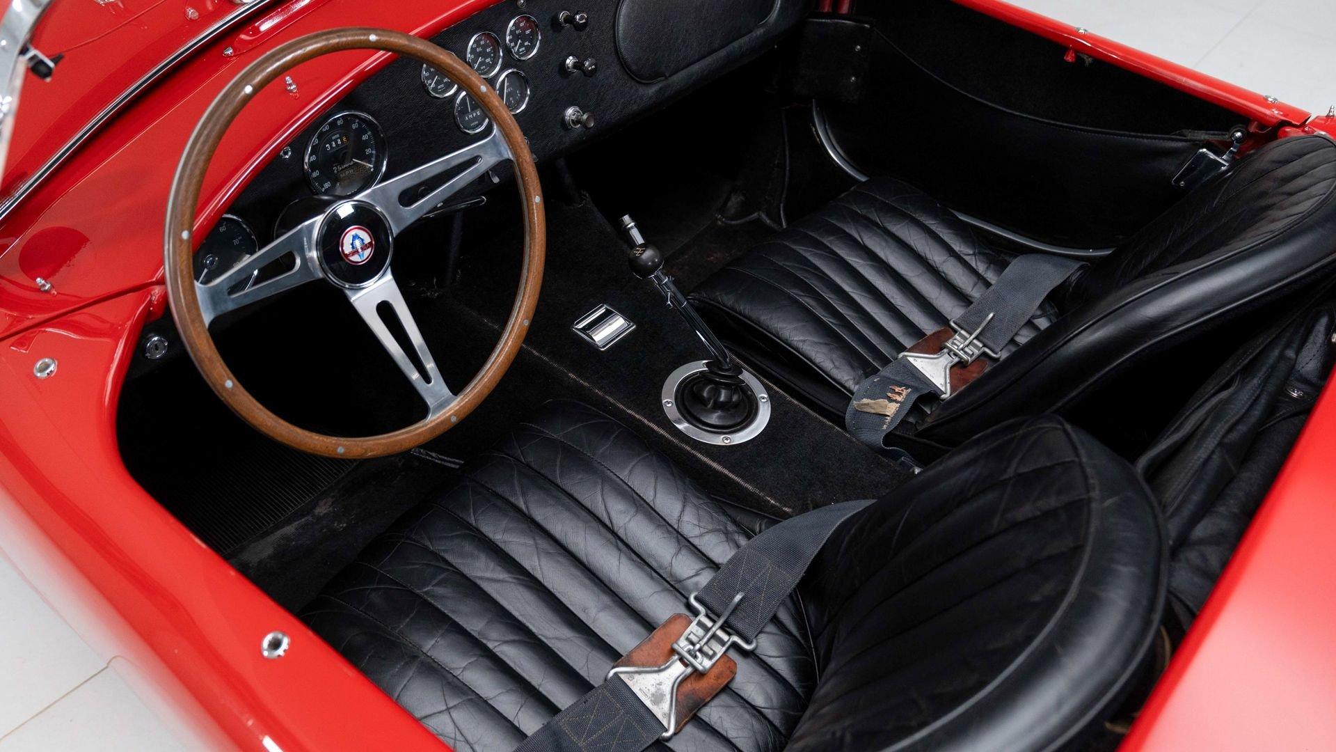 Documentation tracks chassis CSX3203 from the time it was invoiced by A.C. Cars, Ltd., on 4 January 1966. In April of that year, Shelby American, Inc. had completed installation of the 428 PI engine and four-speed Toploader, and the car was invoiced and trucked to Broadway Motors of Kansas City, Missouri, finished in an appropriately sporty shade of Rangoon Red, and equipped with Sunburst wheels and a hardtop. The Shelby American Automobile Club (SAAC) Registry shows CSX3203 was leased by Broadway Ford to Joseph Bixby, also of Kansas City. The car returned to the dealer several times for warranty work, and by October 1966, it had accrued just 4,600 miles. The next owner of CSX3203 was Stanley Patzel of Nebraska, followed by owners in Ohio and Oklahoma, with registration documents on file. The Registry notes that in October of 1974, it was in the care of Connie Moore, still in its original red paint, with a full width roll bar and small vents added to the front fenders, Sunburst wheels, and approximately 12,000 miles recorded.
