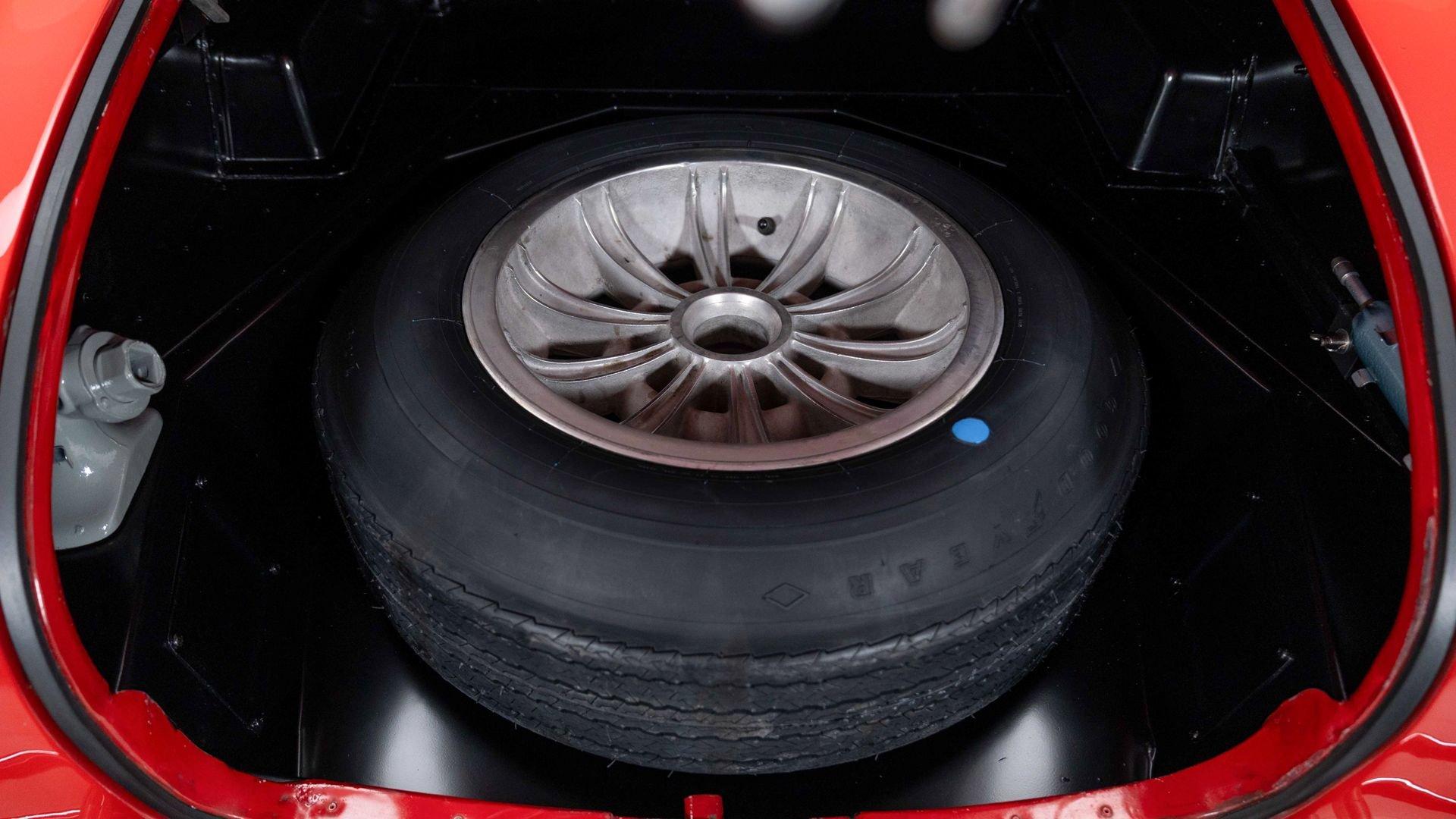 Of the 260 big block cars produced, it is one of very few to wear a factory hard top, and also noted are believed to be the original carpets, seat covers, door pockets, dash, and windshield, all presented with a marvelous patina that reflects its years with experienced and thoughtful owners. Furthermore, it is offered with its original jack, grease gun, spare wheel, soft top and side curtains, and it rides on an original set of Sunburst wheels.