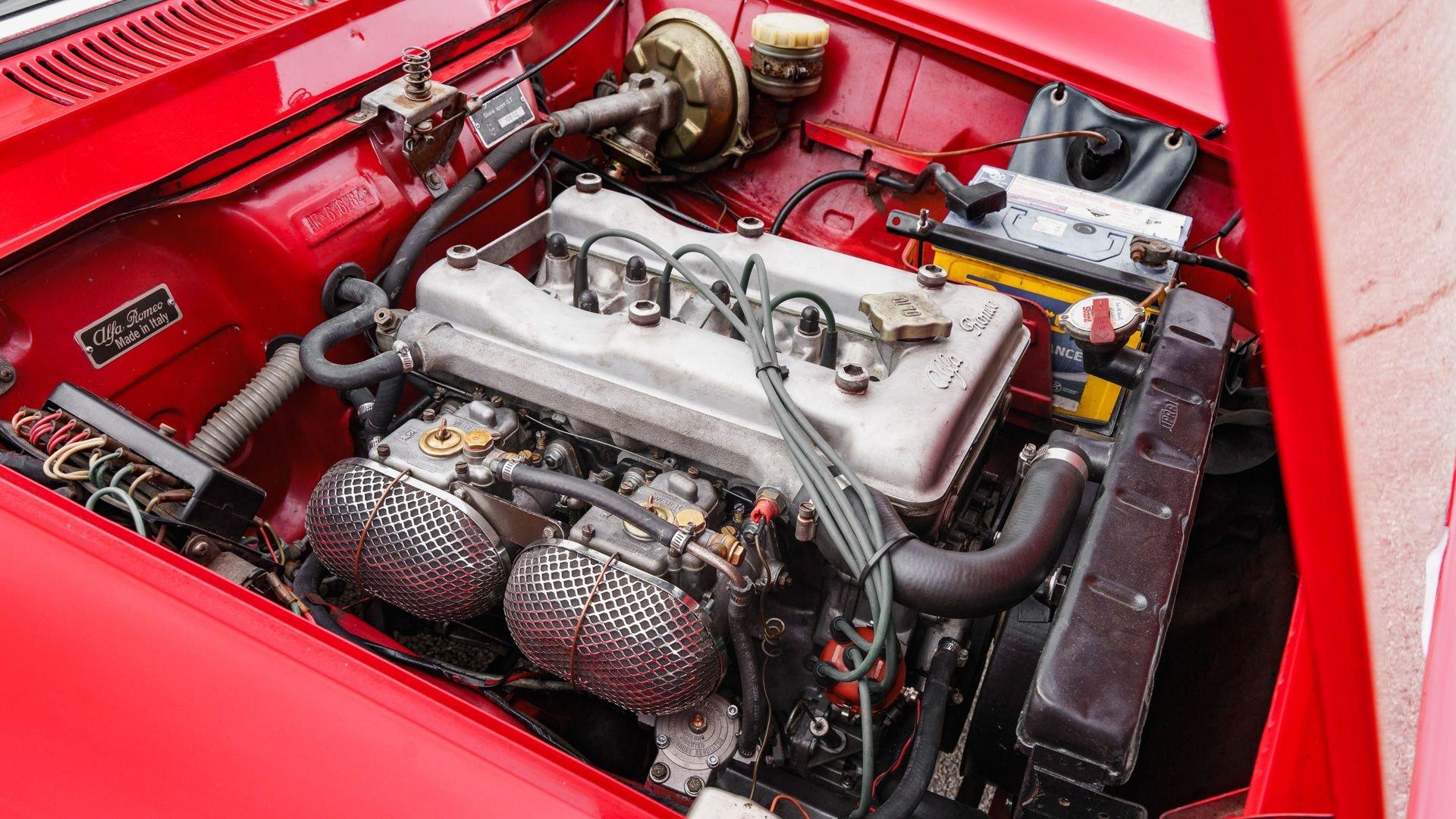 This attractive Giulia Sprint GT was sold new in Vancouver and reportedly underwent a mechanical refurbishment and repaint in the 1990s before being relocated to the United States. It subsequently spent time in California and was brought to Texas in 2018. Under that ownership, the twin-cam inline-four was reportedly overbored and rebuilt to 1.7 liters using a kit from Spruell Motorsport with 10.5:1 pistons and European-spec 10548 camshafts, with machining and refurbishment of the cylinder head and crankshaft, plus a 123Ignition electronic distributor and refreshed Weber DCOE carburetors. The five-speed was also overhauled with later-model synchros and shorter shift forks, and the car was serviced with fresh plugs, a fuel filter, and an oil change in 2024.