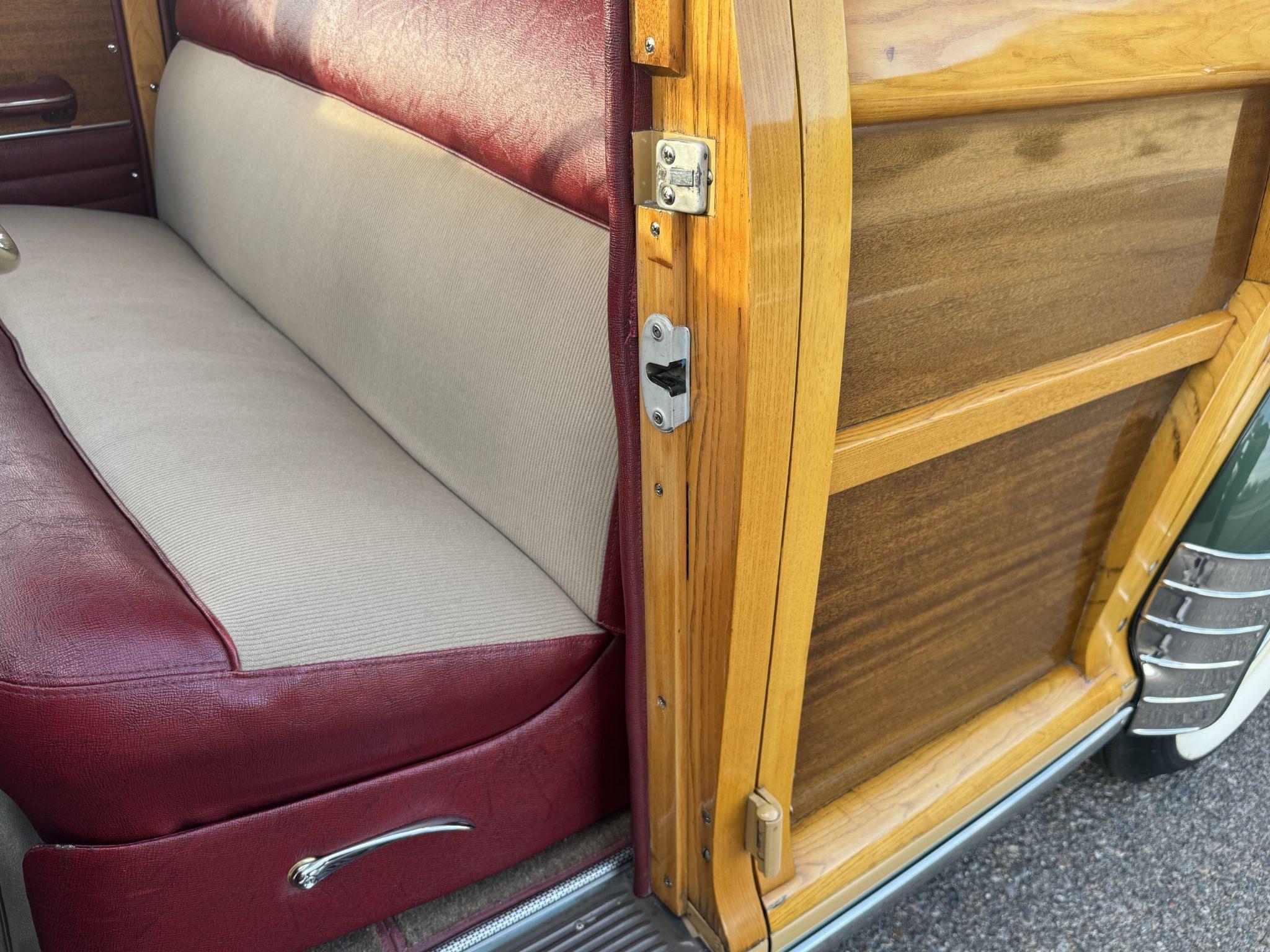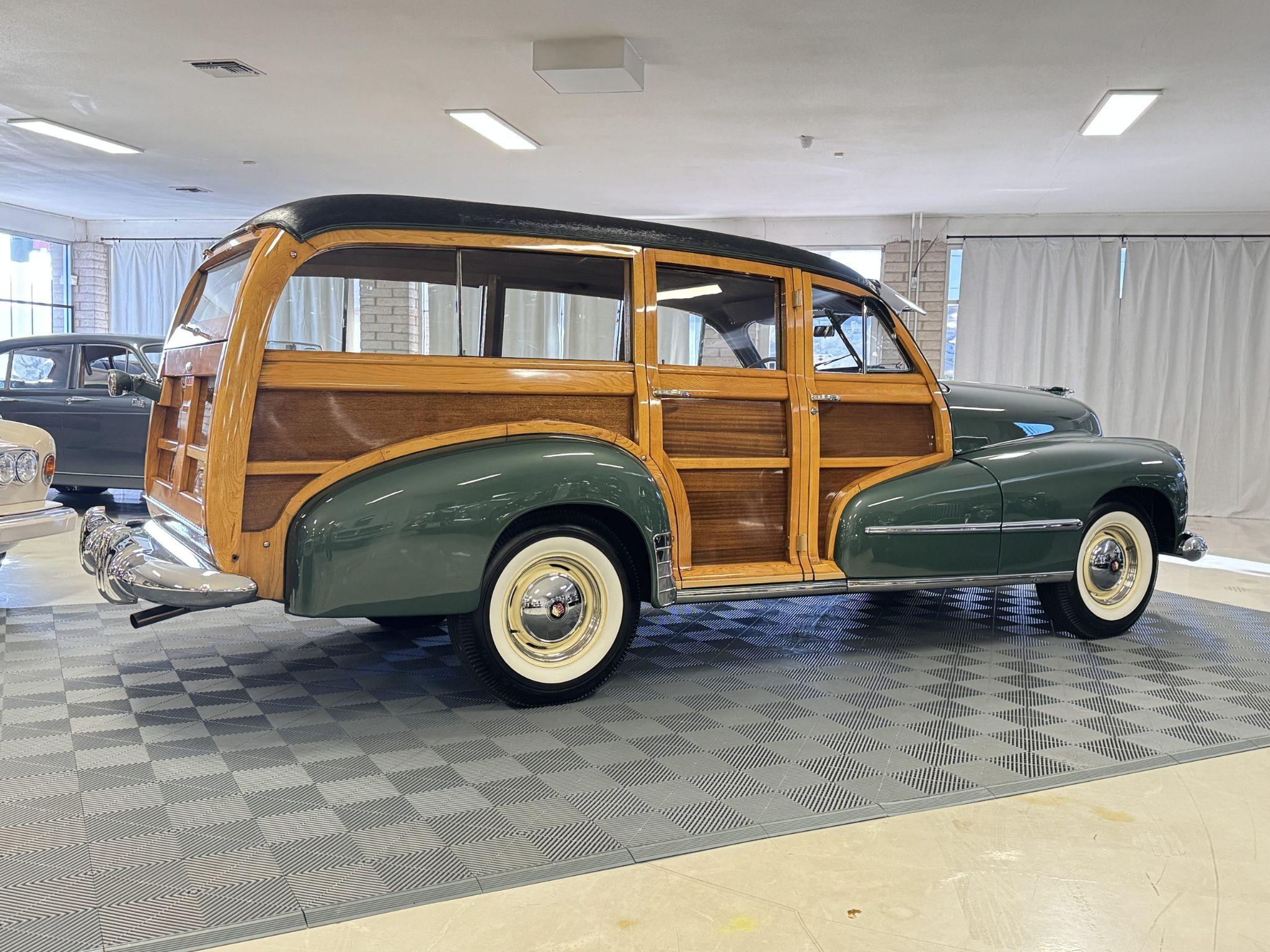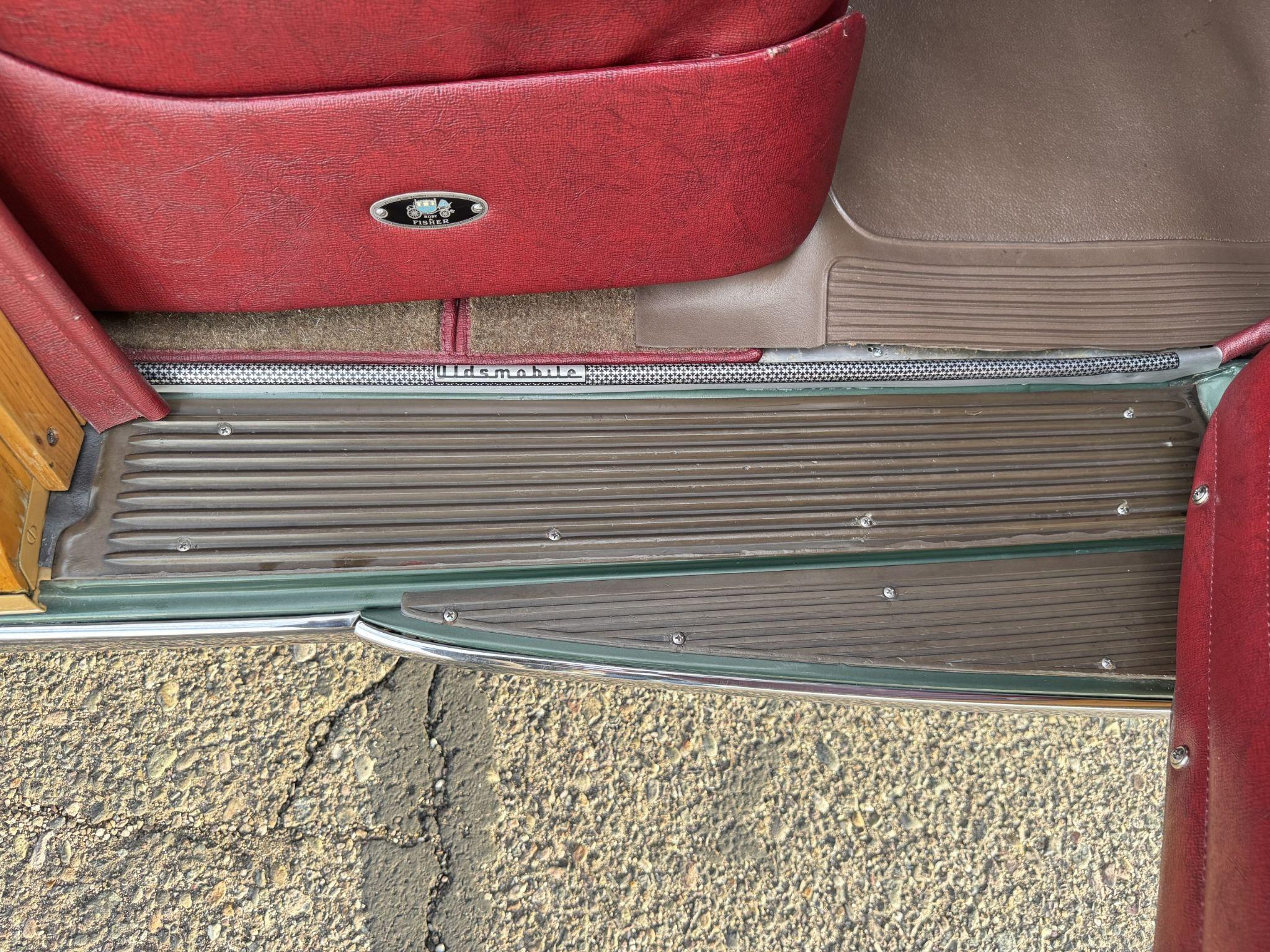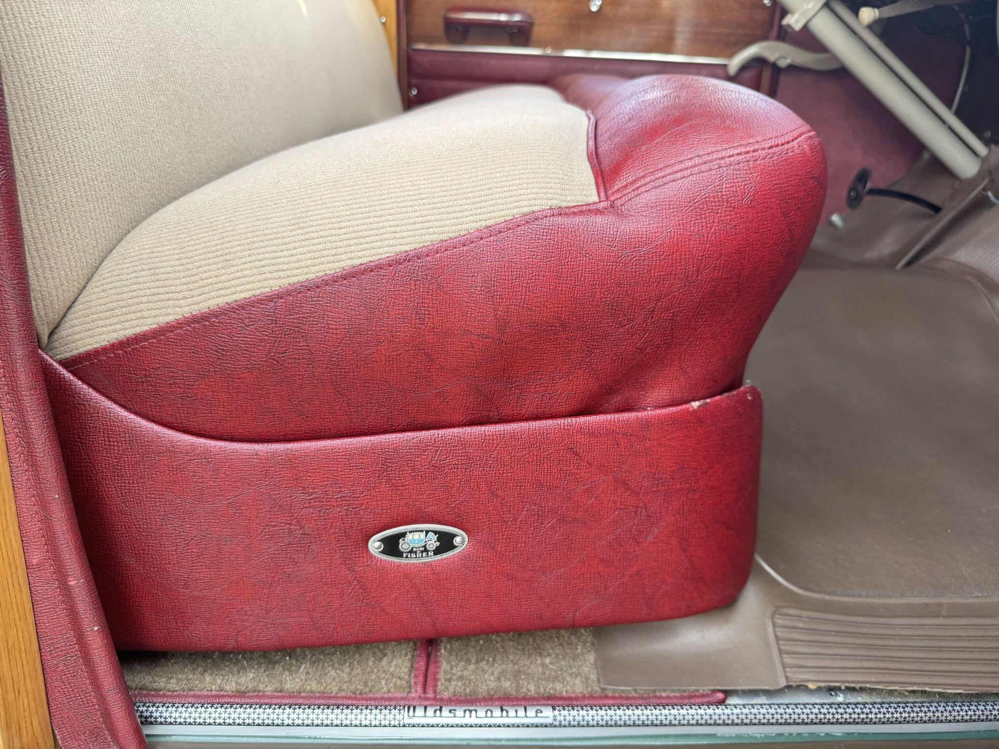 The 1948 Oldsmobile Series 66 Dynamic Deluxe Woodie Wagon represents one of the most refined postwar American family cars, blending craftsmanship, comfort, and restrained style. Powered by the original 238-cubic-inch inline six and equipped with a 4-speed Hydra-Matic automatic transmission, the Oldsmobile is believed to show 55,271 actual miles and presents as a high-quality restored example. With its steel body and Ionia-built ash and mahogany coachwork, the Series 66 is well suited for long-distance touring, regional shows, or inclusion in a distinctive postwar collection. Produced in limited numbers, with just 553 examples built for the 1948 model year, the Series 66 Dynamic Deluxe Woodie Wagon features wood construction by the Ionia Body Company of Michigan, long regarded as General Motors premier wood-body supplier. Originally finished in Nickel Gray, this example is believed to have undergone a frame-off restoration and has been carefully preserved since completion. The Oldsmobile reflects the periods tradition of wood-bodied wagons as upscale multipurpose vehicles, often used for beach outings, resort travel, and family touring, and today offers an authentic representation of that postwar lifestyle. The exterior presents in Ivy Green paint with deep, even luster, complemented by richly finished ash and mahogany side and rear panels that remain in excellent condition. The dark green textured vinyl roof is clean and well fitted, while the split front windshield, exterior sun shield, and brightwork all present strongly. The distinctive Oldsmobile grille and bomber style chrome and green hood handle remain crisp, and the headlamp glass is clear and fully functional. A two-piece tailgate with a tilting glass vent window adds practicality, while steel wheels with Oldsmobile-logo hubcaps and wide whitewall tires in very good condition complete the period-correct appearance. Inside, the Series 66 features dual bench seating trimmed in the original-style tan cloth and maroon vinyl, offering accommodation for six passengers in a warm, inviting cabin. The wood paneling and interior accents remain in excellent condition and reinforce the craftsmanship associated with Ionia-built wagons. The maroon and chrome dashboard appears fresh, housing a 0110 mph speedometer and full auxiliary gauges, all framed by an ivory deluxe steering wheel. The clock is operational, the AM radio powers on without sound output, and all interior lighting functions as designed. Manual windows and tilt features provide natural airflow, while the folding passenger bench expands rear cargo space in traditional station wagon fashion. Mechanical power is supplied by the original 238-cubic-inch inline six, paired with a column-shifted 4-speed Hydra-Matic automatic transmission. The Series 66 delivers modest, relaxed performance consistent with its touring-focused design, aided by power-assisted steering and responsive hydraulic drum brakes. The Oldsmobile does not feature turn signals, consistent with the era, and retains a straightforward mechanical layout that emphasizes smooth operation and reliability. Included with the sale are original manuals, a jack, trunk-mounted spare tire, fire extinguisher, recent inspection report and a clean title. For more information and details, please call or text Kendi Brown at 1.623.404.9042 or email us at sales@classicpromenade.com . This 1948 Oldsmobile Series 66 Dynamic Deluxe Woodie Wagon is available for inspection at our showroom in Phoenix. We are pleased to offer FaceTime or WhatsApp live video inspections, and we help coordinate shipping worldwide. We also have financing partners if you are interested in financing.