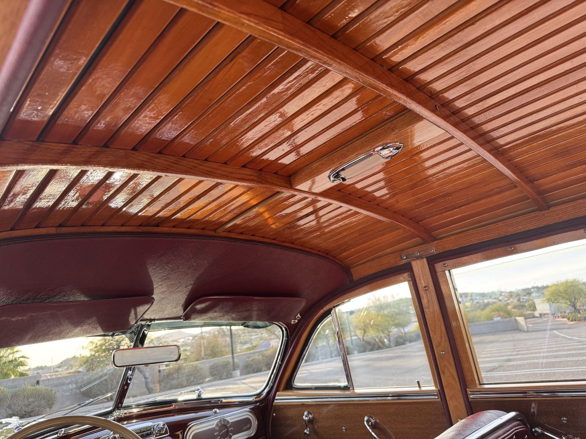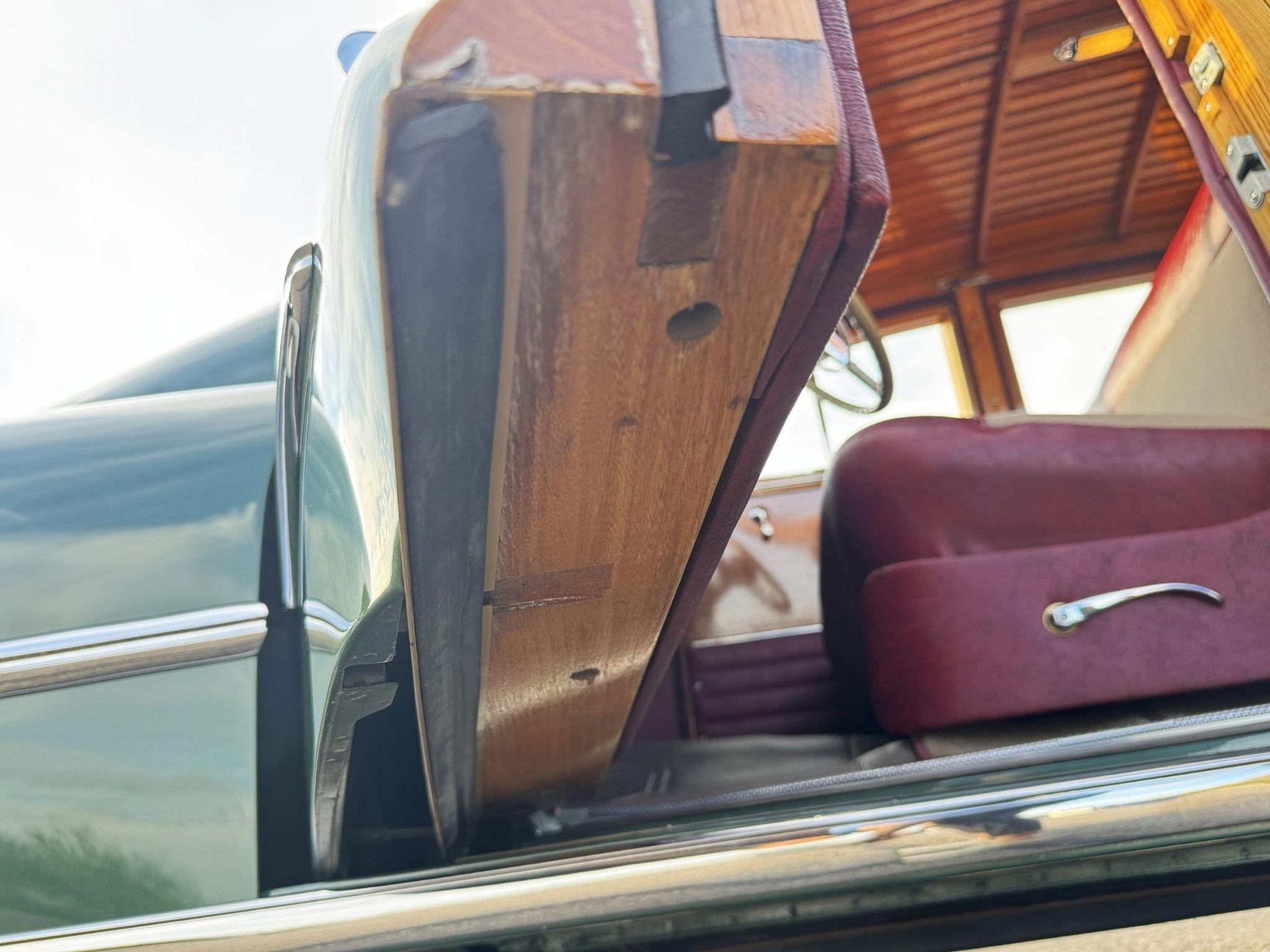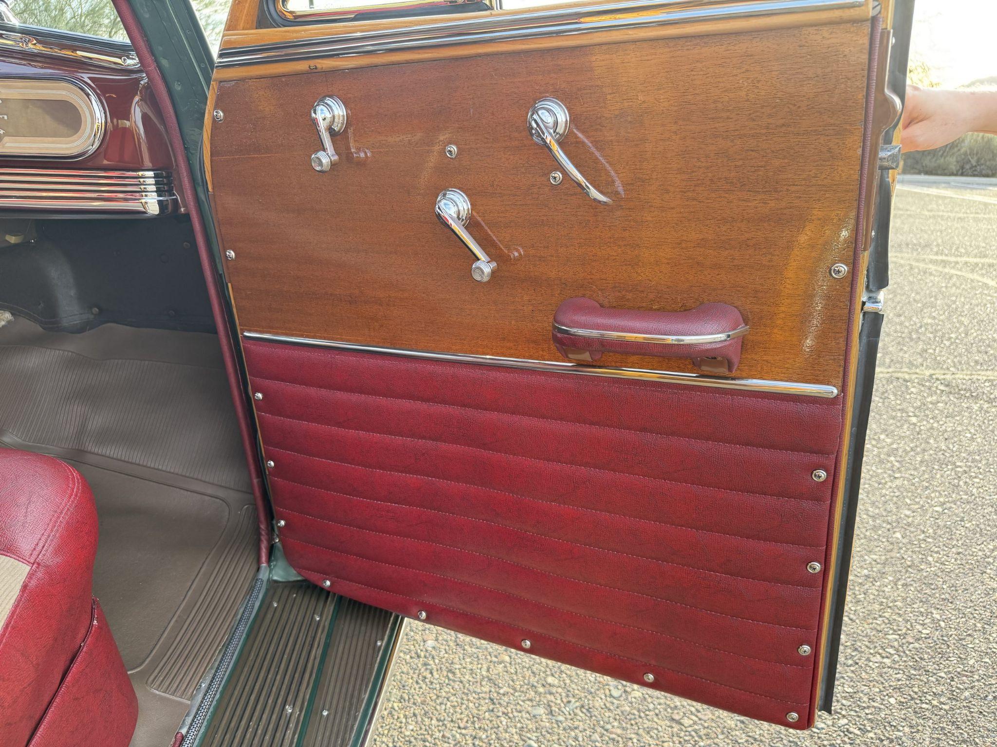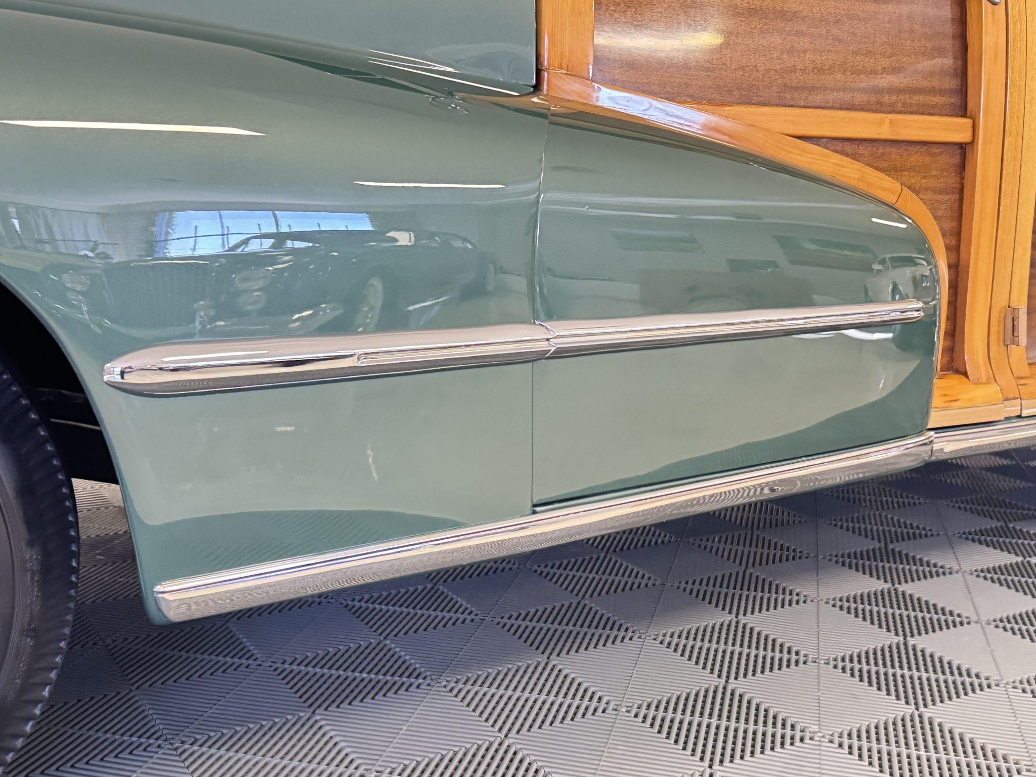 The 1948 Oldsmobile Series 66 Dynamic Deluxe Woodie Wagon represents one of the most refined postwar American family cars, blending craftsmanship, comfort, and restrained style. Powered by the original 238-cubic-inch inline six and equipped with a 4-speed Hydra-Matic automatic transmission, the Oldsmobile is believed to show 55,271 actual miles and presents as a high-quality restored example. With its steel body and Ionia-built ash and mahogany coachwork, the Series 66 is well suited for long-distance touring, regional shows, or inclusion in a distinctive postwar collection. Produced in limited numbers, with just 553 examples built for the 1948 model year, the Series 66 Dynamic Deluxe Woodie Wagon features wood construction by the Ionia Body Company of Michigan, long regarded as General Motors premier wood-body supplier. Originally finished in Nickel Gray, this example is believed to have undergone a frame-off restoration and has been carefully preserved since completion. The Oldsmobile reflects the periods tradition of wood-bodied wagons as upscale multipurpose vehicles, often used for beach outings, resort travel, and family touring, and today offers an authentic representation of that postwar lifestyle. The exterior presents in Ivy Green paint with deep, even luster, complemented by richly finished ash and mahogany side and rear panels that remain in excellent condition. The dark green textured vinyl roof is clean and well fitted, while the split front windshield, exterior sun shield, and brightwork all present strongly. The distinctive Oldsmobile grille and bomber style chrome and green hood handle remain crisp, and the headlamp glass is clear and fully functional. A two-piece tailgate with a tilting glass vent window adds practicality, while steel wheels with Oldsmobile-logo hubcaps and wide whitewall tires in very good condition complete the period-correct appearance. Inside, the Series 66 features dual bench seating trimmed in the original-style tan cloth and maroon vinyl, offering accommodation for six passengers in a warm, inviting cabin. The wood paneling and interior accents remain in excellent condition and reinforce the craftsmanship associated with Ionia-built wagons. The maroon and chrome dashboard appears fresh, housing a 0110 mph speedometer and full auxiliary gauges, all framed by an ivory deluxe steering wheel. The clock is operational, the AM radio powers on without sound output, and all interior lighting functions as designed. Manual windows and tilt features provide natural airflow, while the folding passenger bench expands rear cargo space in traditional station wagon fashion. Mechanical power is supplied by the original 238-cubic-inch inline six, paired with a column-shifted 4-speed Hydra-Matic automatic transmission. The Series 66 delivers modest, relaxed performance consistent with its touring-focused design, aided by power-assisted steering and responsive hydraulic drum brakes. The Oldsmobile does not feature turn signals, consistent with the era, and retains a straightforward mechanical layout that emphasizes smooth operation and reliability. Included with the sale are original manuals, a jack, trunk-mounted spare tire, fire extinguisher, recent inspection report and a clean title. For more information and details, please call or text Kendi Brown at 1.623.404.9042 or email us at sales@classicpromenade.com . This 1948 Oldsmobile Series 66 Dynamic Deluxe Woodie Wagon is available for inspection at our showroom in Phoenix. We are pleased to offer FaceTime or WhatsApp live video inspections, and we help coordinate shipping worldwide. We also have financing partners if you are interested in financing.