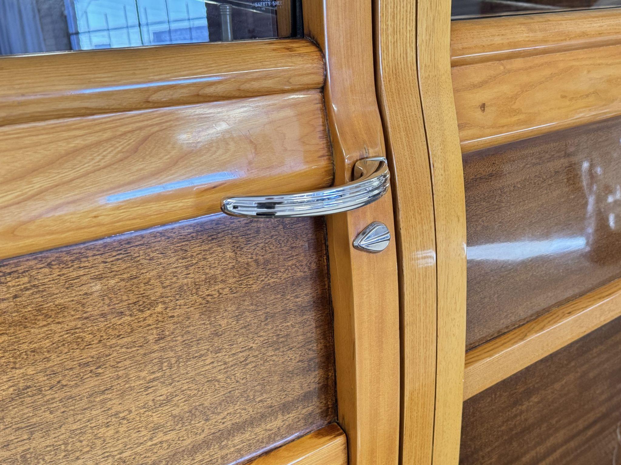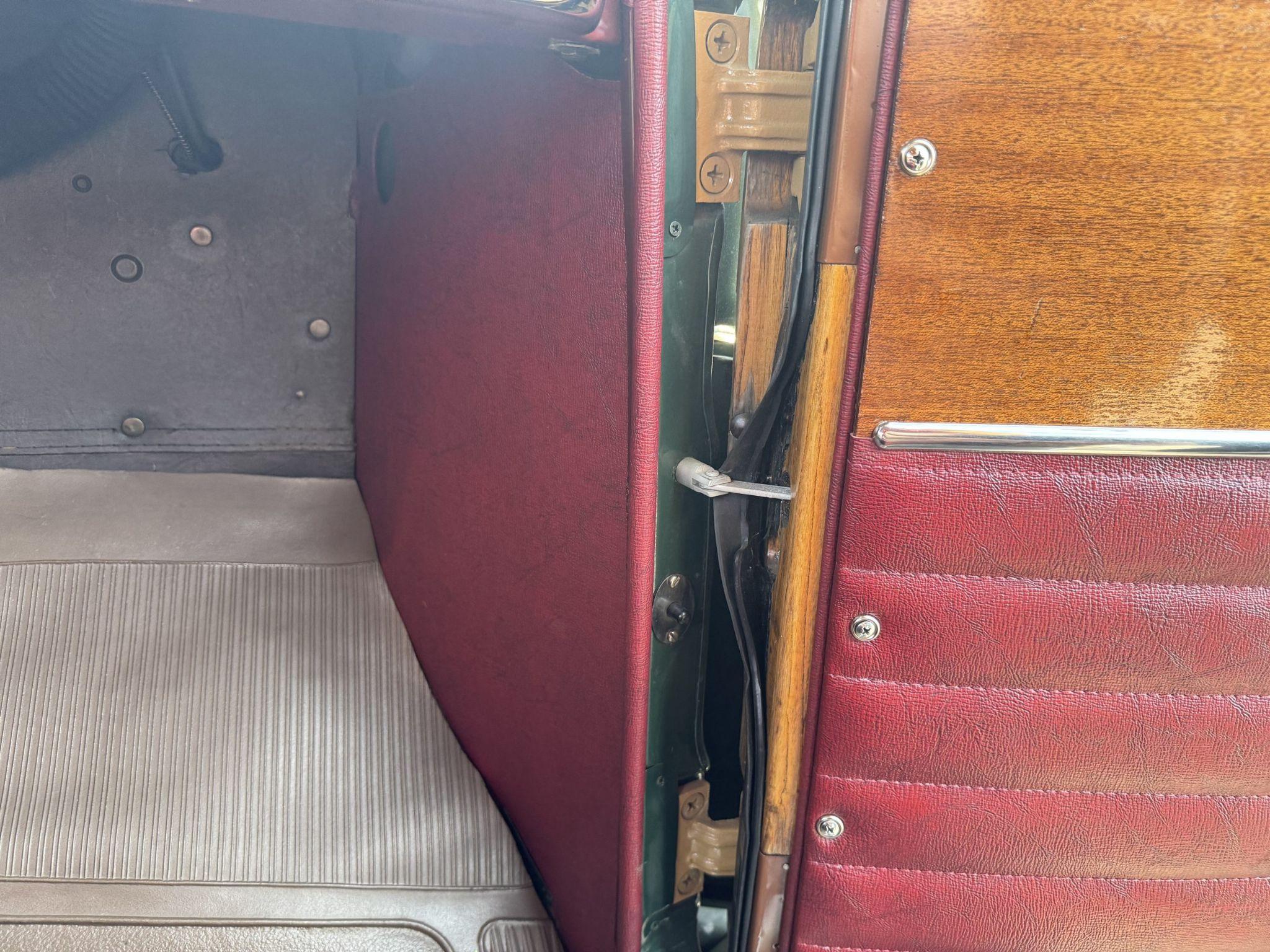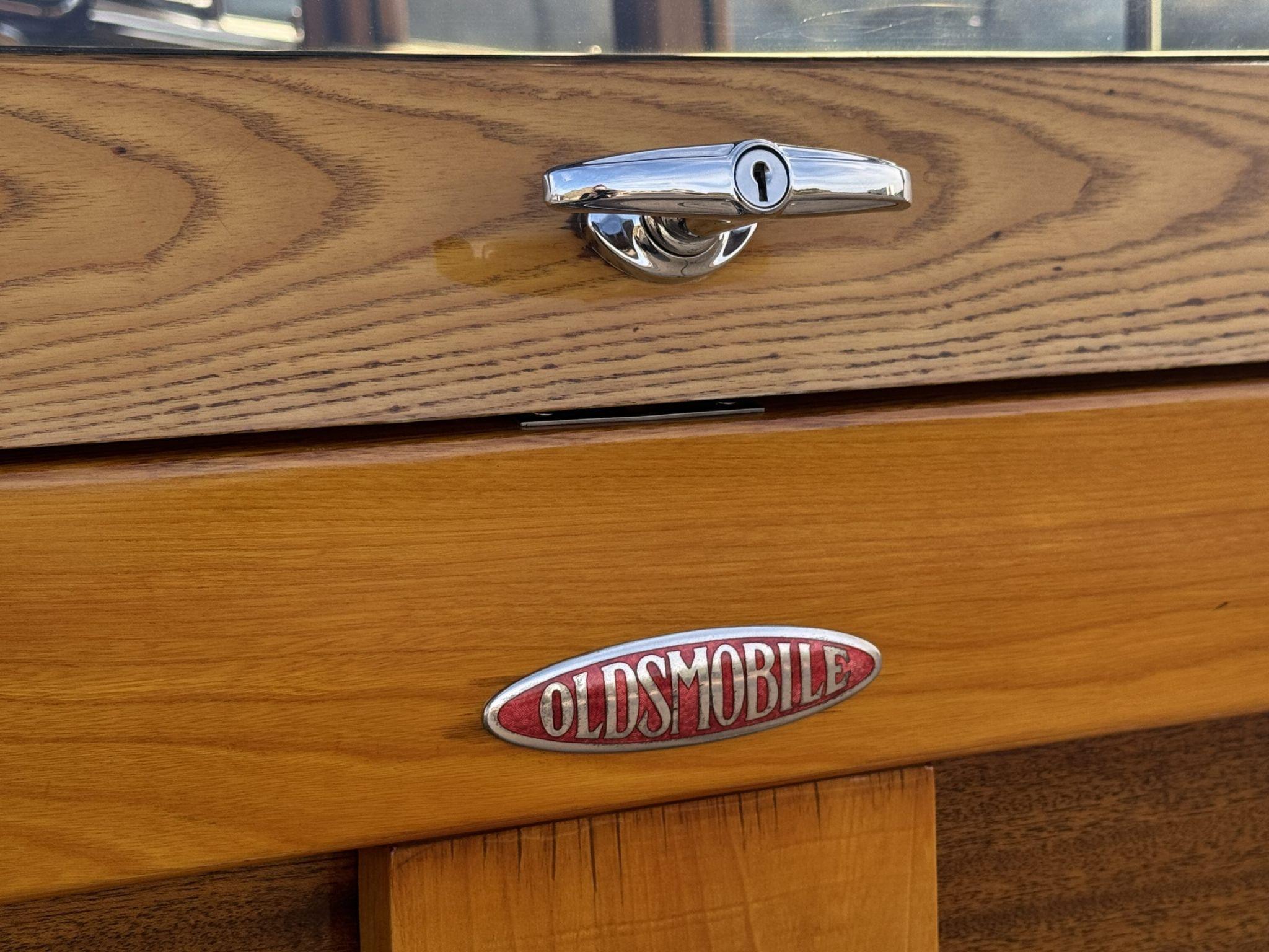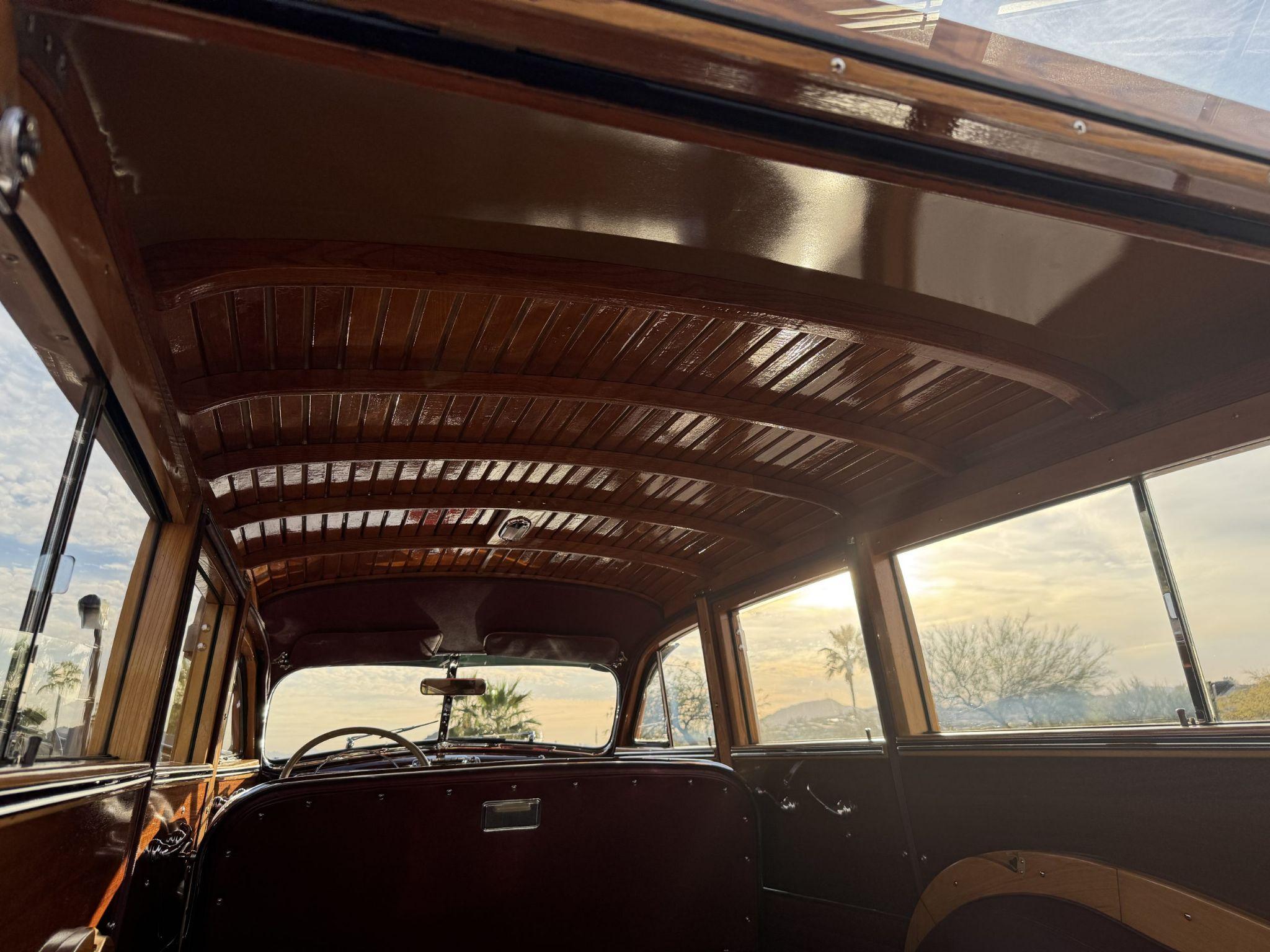 The 1948 Oldsmobile Series 66 Dynamic Deluxe Woodie Wagon represents one of the most refined postwar American family cars, blending craftsmanship, comfort, and restrained style. Powered by the original 238-cubic-inch inline six and equipped with a 4-speed Hydra-Matic automatic transmission, the Oldsmobile is believed to show 55,271 actual miles and presents as a high-quality restored example. With its steel body and Ionia-built ash and mahogany coachwork, the Series 66 is well suited for long-distance touring, regional shows, or inclusion in a distinctive postwar collection. Produced in limited numbers, with just 553 examples built for the 1948 model year, the Series 66 Dynamic Deluxe Woodie Wagon features wood construction by the Ionia Body Company of Michigan, long regarded as General Motors premier wood-body supplier. Originally finished in Nickel Gray, this example is believed to have undergone a frame-off restoration and has been carefully preserved since completion. The Oldsmobile reflects the periods tradition of wood-bodied wagons as upscale multipurpose vehicles, often used for beach outings, resort travel, and family touring, and today offers an authentic representation of that postwar lifestyle. The exterior presents in Ivy Green paint with deep, even luster, complemented by richly finished ash and mahogany side and rear panels that remain in excellent condition. The dark green textured vinyl roof is clean and well fitted, while the split front windshield, exterior sun shield, and brightwork all present strongly. The distinctive Oldsmobile grille and bomber style chrome and green hood handle remain crisp, and the headlamp glass is clear and fully functional. A two-piece tailgate with a tilting glass vent window adds practicality, while steel wheels with Oldsmobile-logo hubcaps and wide whitewall tires in very good condition complete the period-correct appearance. Inside, the Series 66 features dual bench seating trimmed in the original-style tan cloth and maroon vinyl, offering accommodation for six passengers in a warm, inviting cabin. The wood paneling and interior accents remain in excellent condition and reinforce the craftsmanship associated with Ionia-built wagons. The maroon and chrome dashboard appears fresh, housing a 0110 mph speedometer and full auxiliary gauges, all framed by an ivory deluxe steering wheel. The clock is operational, the AM radio powers on without sound output, and all interior lighting functions as designed. Manual windows and tilt features provide natural airflow, while the folding passenger bench expands rear cargo space in traditional station wagon fashion. Mechanical power is supplied by the original 238-cubic-inch inline six, paired with a column-shifted 4-speed Hydra-Matic automatic transmission. The Series 66 delivers modest, relaxed performance consistent with its touring-focused design, aided by power-assisted steering and responsive hydraulic drum brakes. The Oldsmobile does not feature turn signals, consistent with the era, and retains a straightforward mechanical layout that emphasizes smooth operation and reliability. Included with the sale are original manuals, a jack, trunk-mounted spare tire, fire extinguisher, recent inspection report and a clean title. For more information and details, please call or text Kendi Brown at 1.623.404.9042 or email us at sales@classicpromenade.com . This 1948 Oldsmobile Series 66 Dynamic Deluxe Woodie Wagon is available for inspection at our showroom in Phoenix. We are pleased to offer FaceTime or WhatsApp live video inspections, and we help coordinate shipping worldwide. We also have financing partners if you are interested in financing.