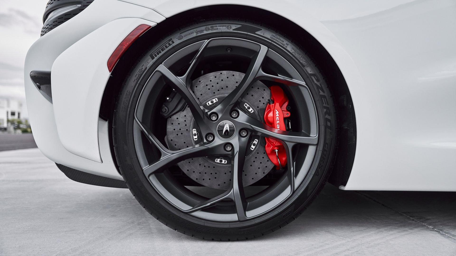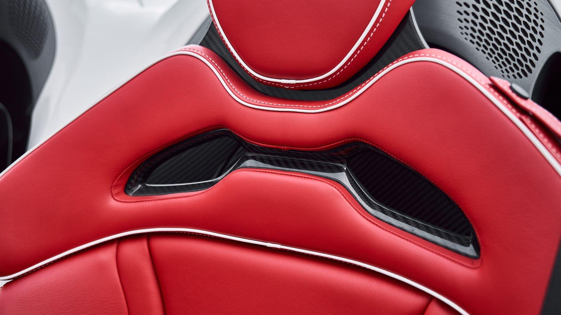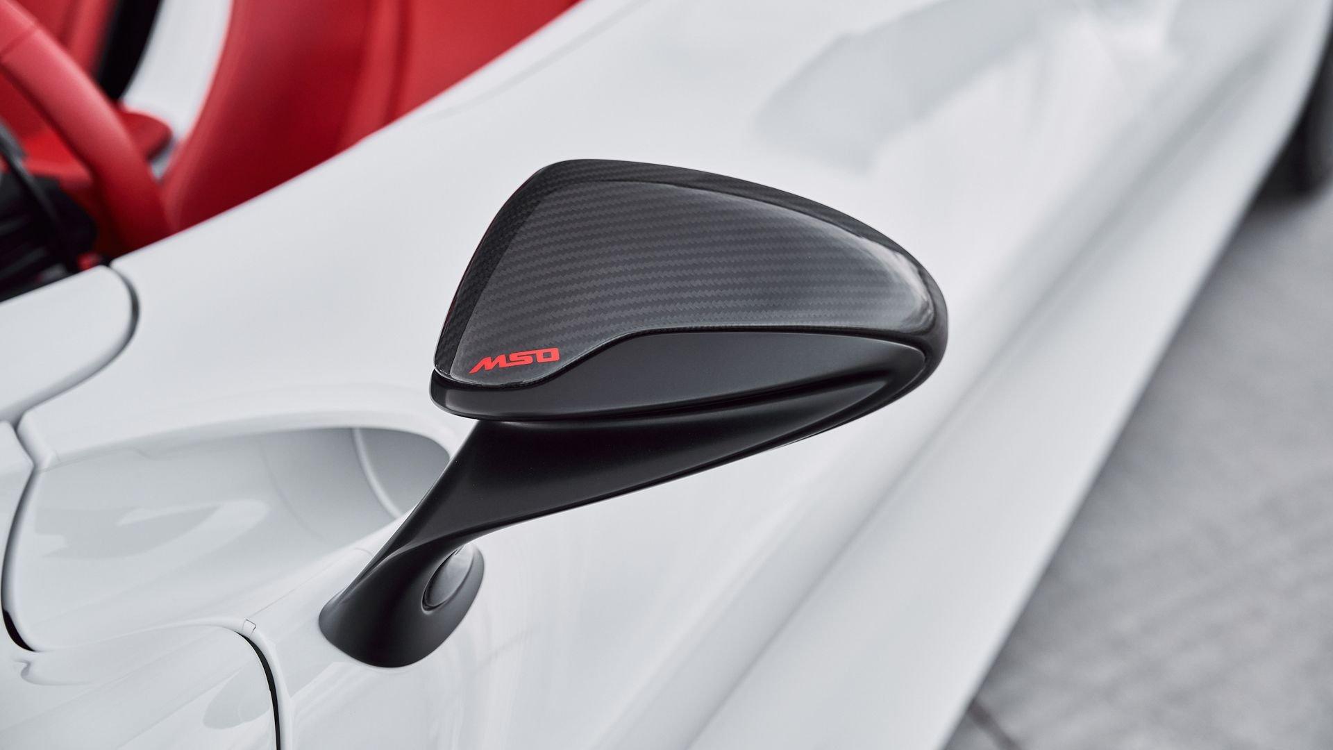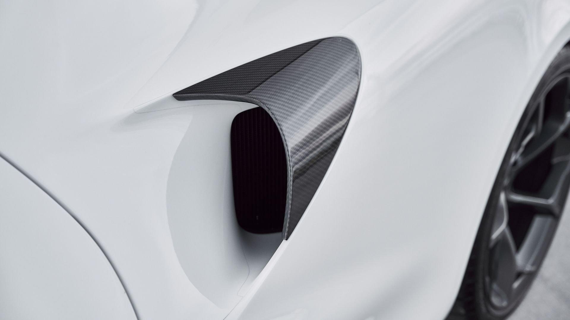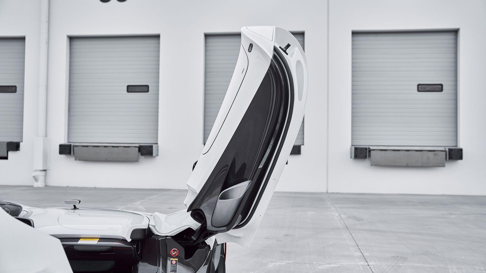 Composed of just three carbon fiber panels, the lightweight bodywork provides a clean, sculpted profile that is heavily inspired by Formula One and represents the next chapter in the McLaren design story. Embodying bold forms, clean lines, and fluid movement, the Elva features a seamless transition between the interior and exterior allowing for stunning proportions from every angle highlighted by machined solid metal and carbon fiber details.