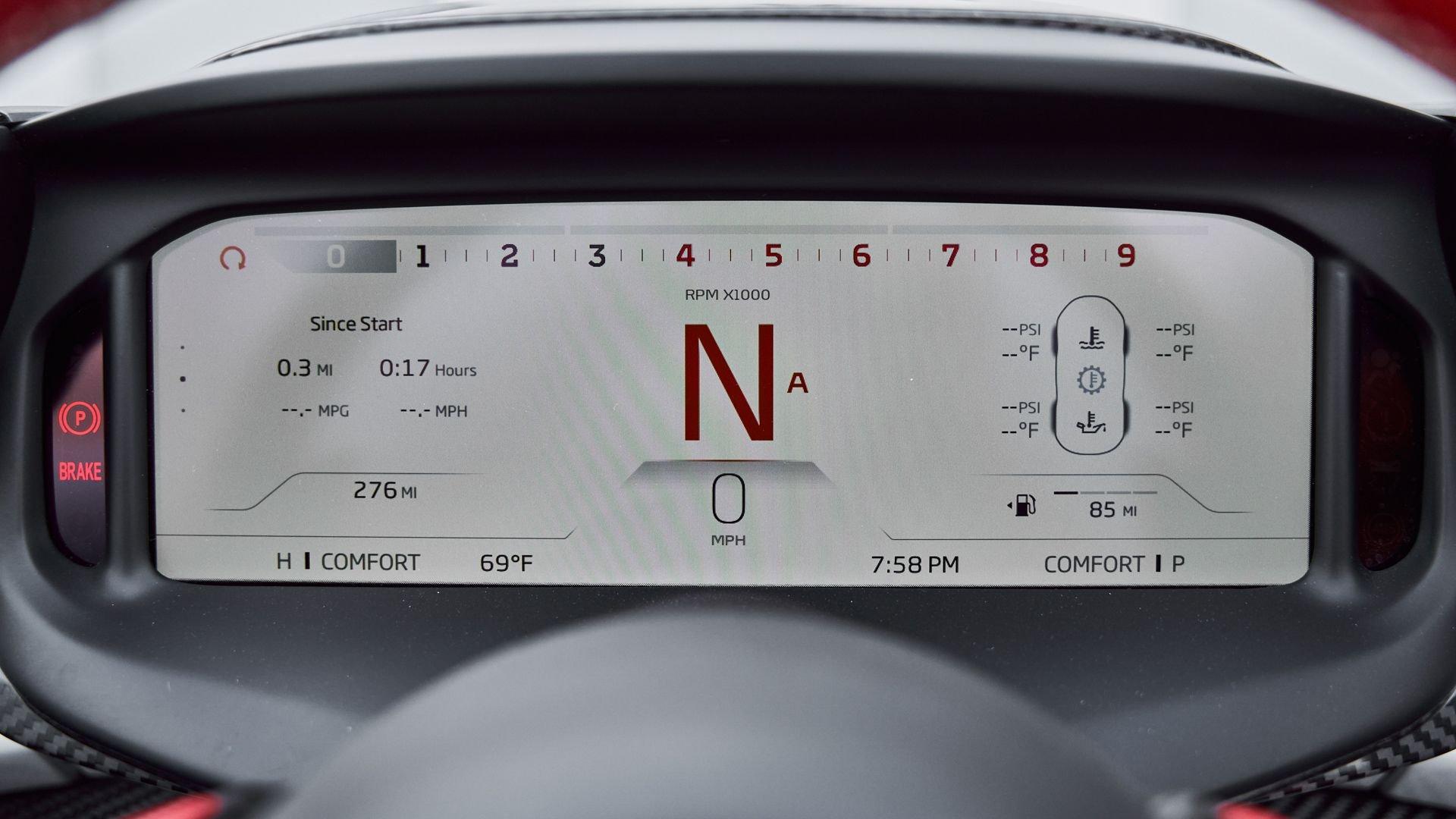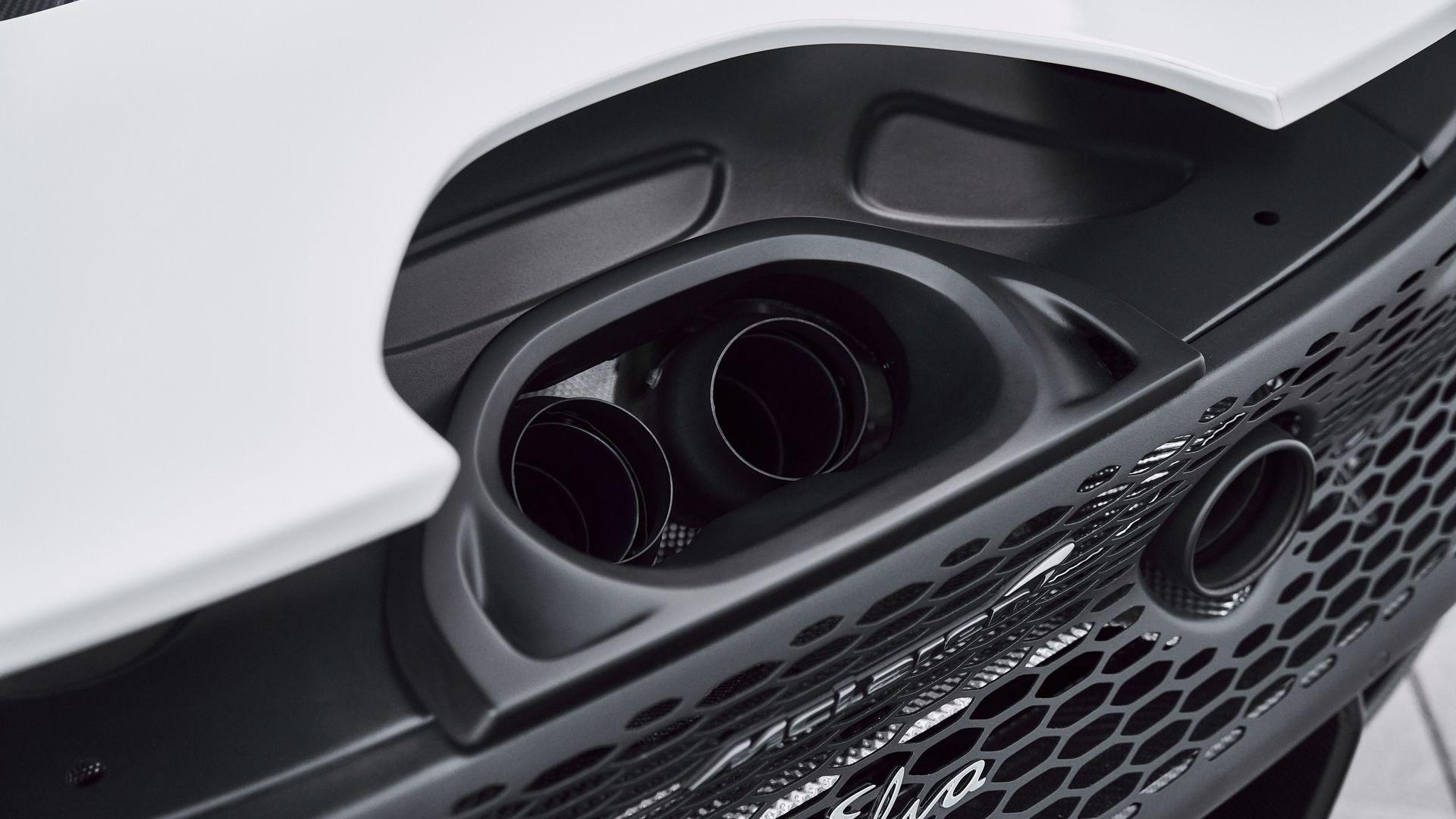 The Elva is powered by a 4.0-liter twin-turbocharged V8 with a flat-plane crankshaft, low-mass reciprocating components and a dry-sump lubrication system to deliver 804 horsepower. Equipped with a titanium exhaust system, the Elva produces an intoxicating engine note through its bespoke quad exit exhaust while full-time active suspension and an electro-hydraulic steering work in concert to provide the finest driving dynamics. With all systems working in perfect harmony thanks to Proactive Chassis Control II, the pilot is able to select from multiple different driving modes, from sporty street driving to a full-blown track oriented configuration.