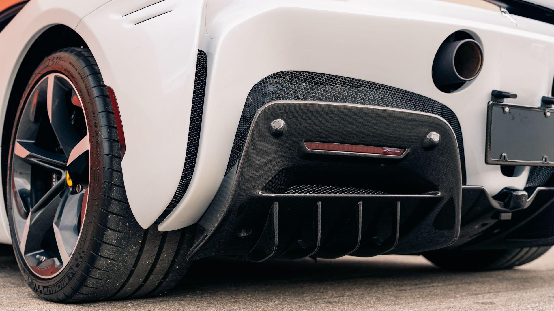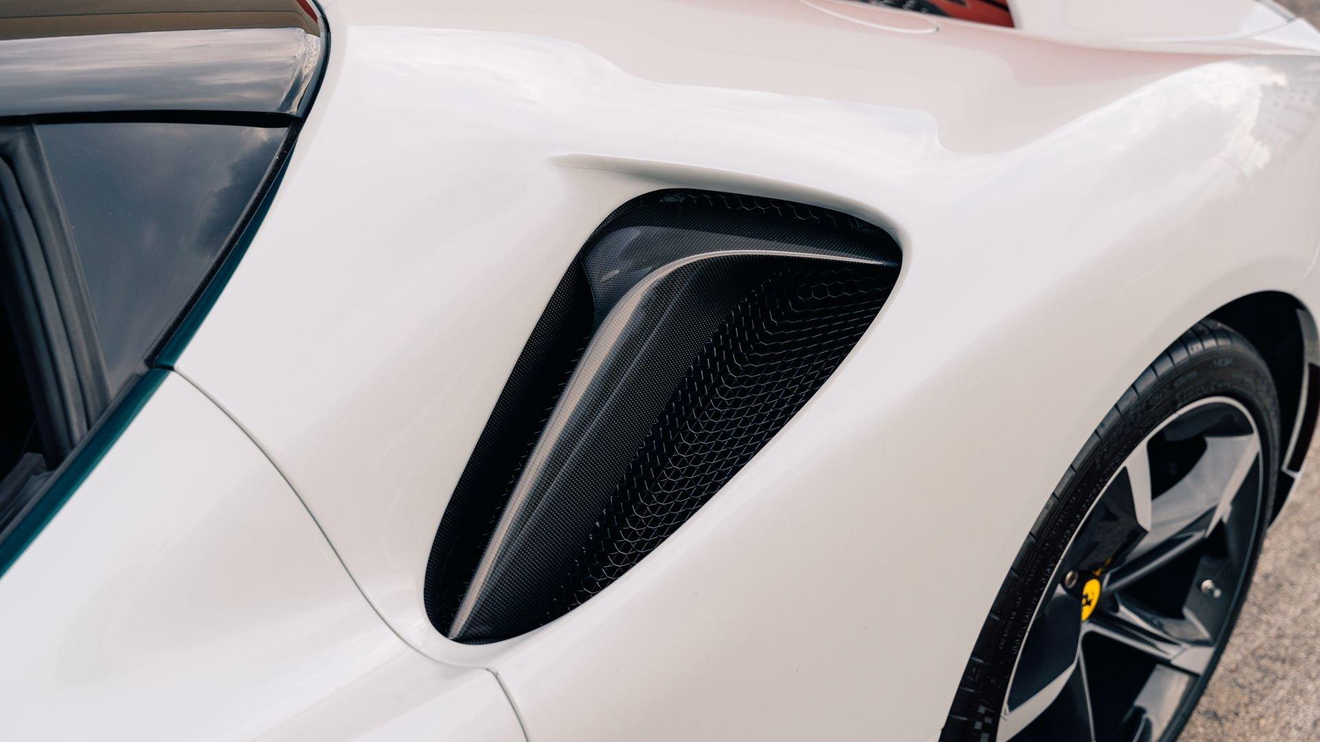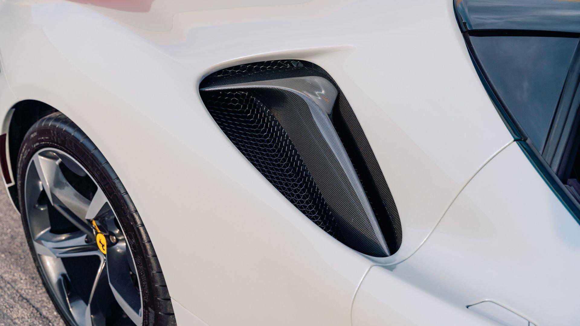 This 2022 SF90 Stradale was specified through Ferrari Tailor Made as part of the 10th Anniversary Cavalcade Collection, an invitation-only program reserved for clients who have participated in at least one Cavalcade. Ferrari framed the collection as a “thank you” to repeat participants, offering five Tailor Made liveries on the firm's five contemporary models, inspired by prior Cavalcade locations. Among them was Bianco Courmayeur, inspired by the Monte Bianco route and described by Ferrari as an alpine, glacial-themed shade, blending white with cool tonal flashes.