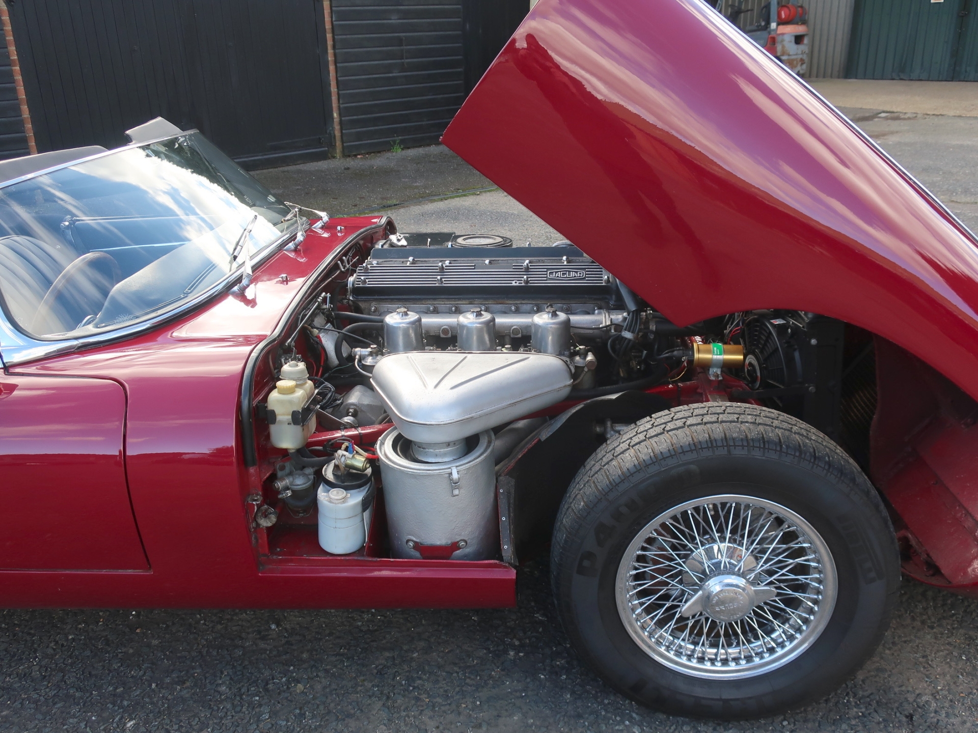 Subsequent restoration work was carried out by the E Type centre including repainting the car to its current colour, conversion to right hand drive and the fitment of triple SU carbs. The car comes with a comprehensive history file of maintenance that shows continued care going back to the 1990’s, more recently the car has undergone further work including fitting a new alternator, water pump and starter motor and Kenlow fan and it was completely re trimmed with a new soft top and black interior in 2024.