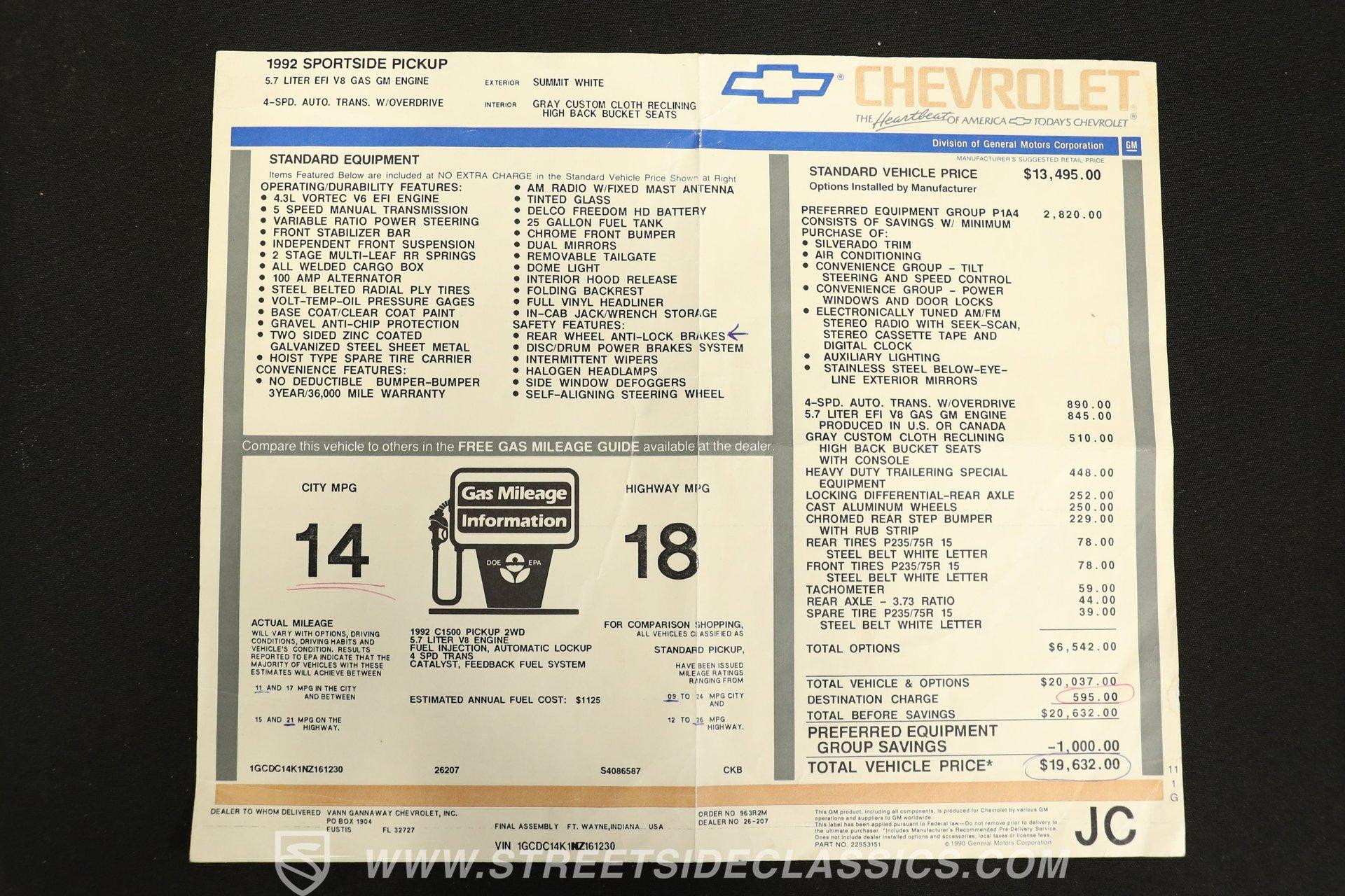- VIN Code1GCDC14K1NZ161230