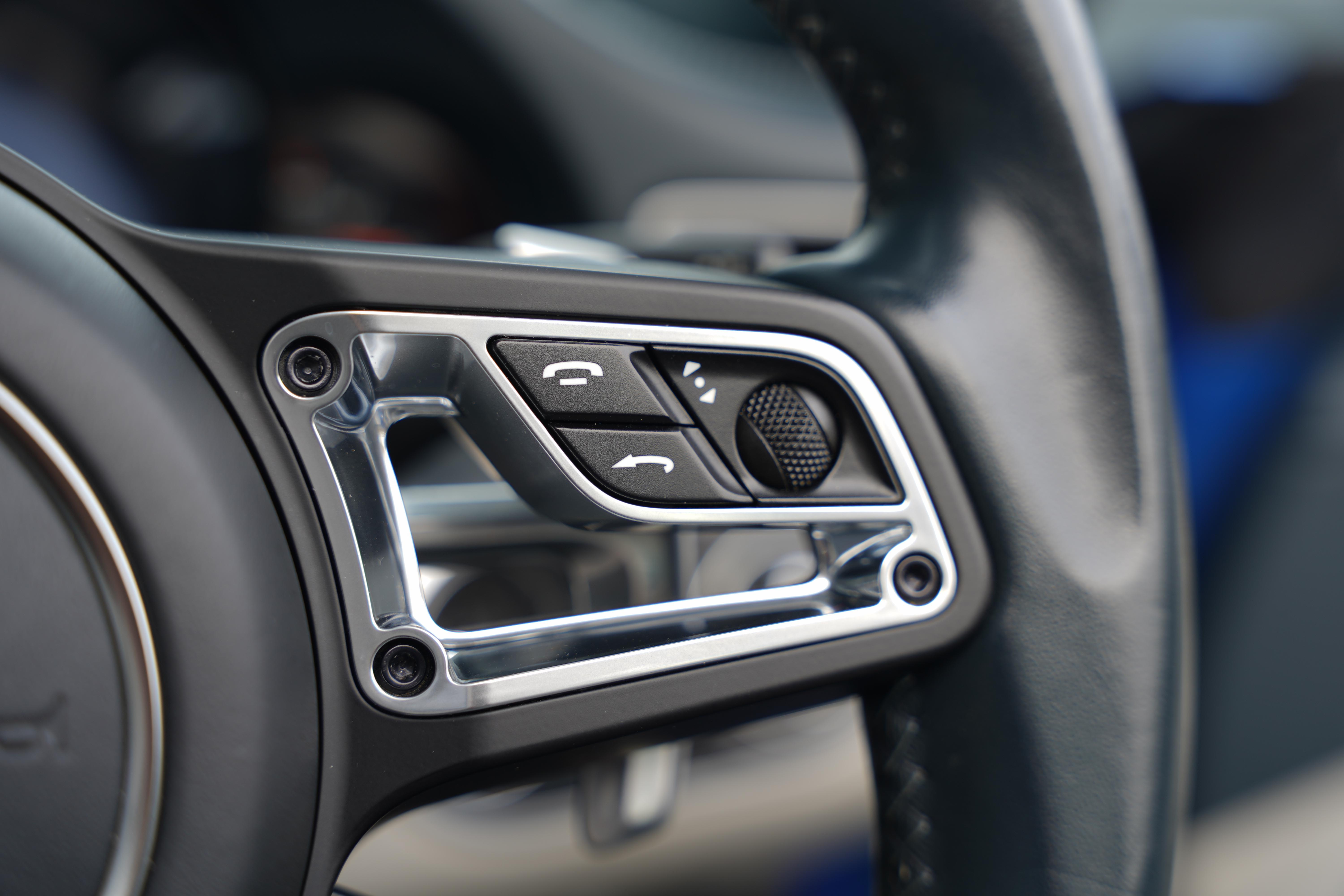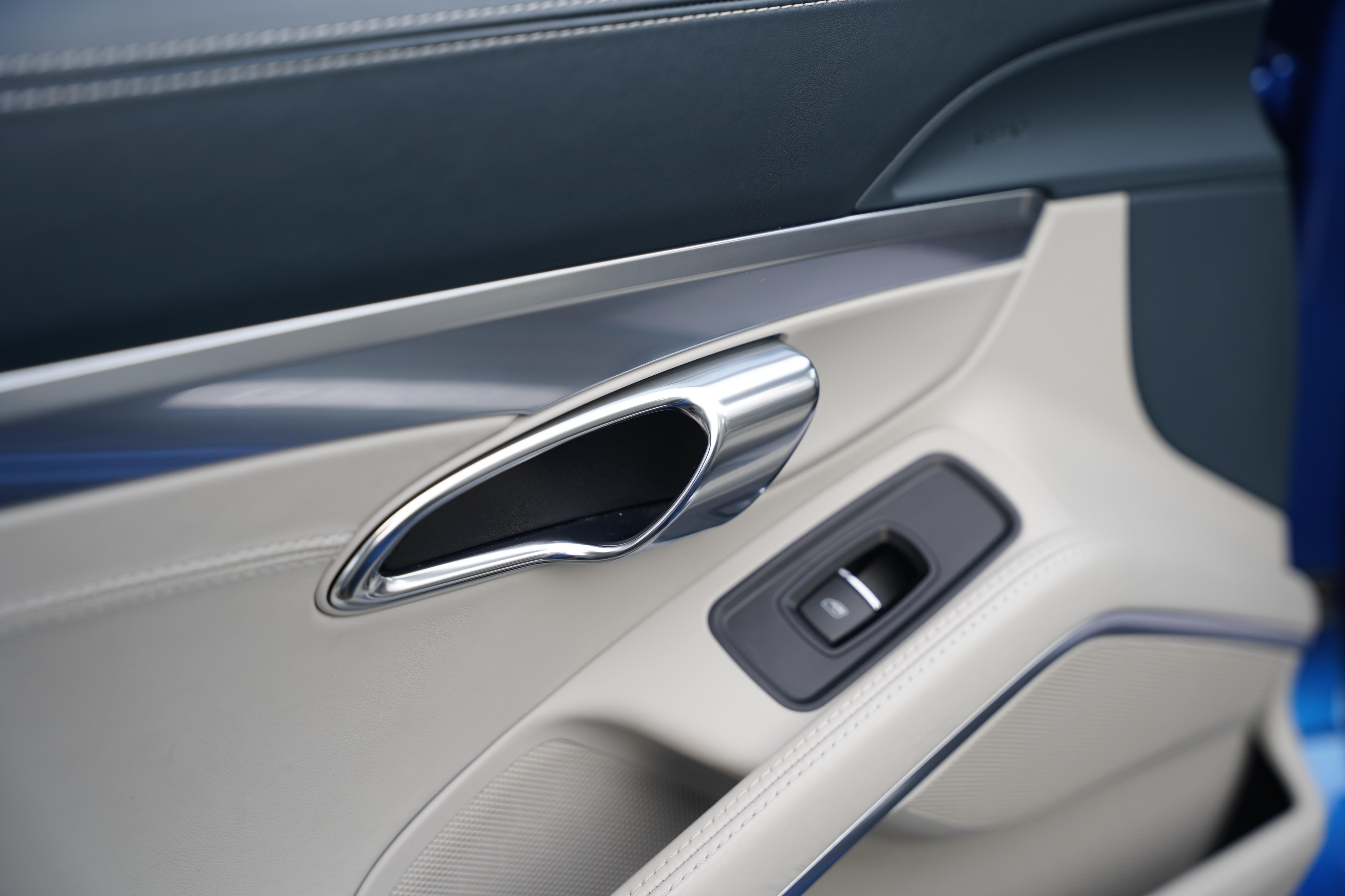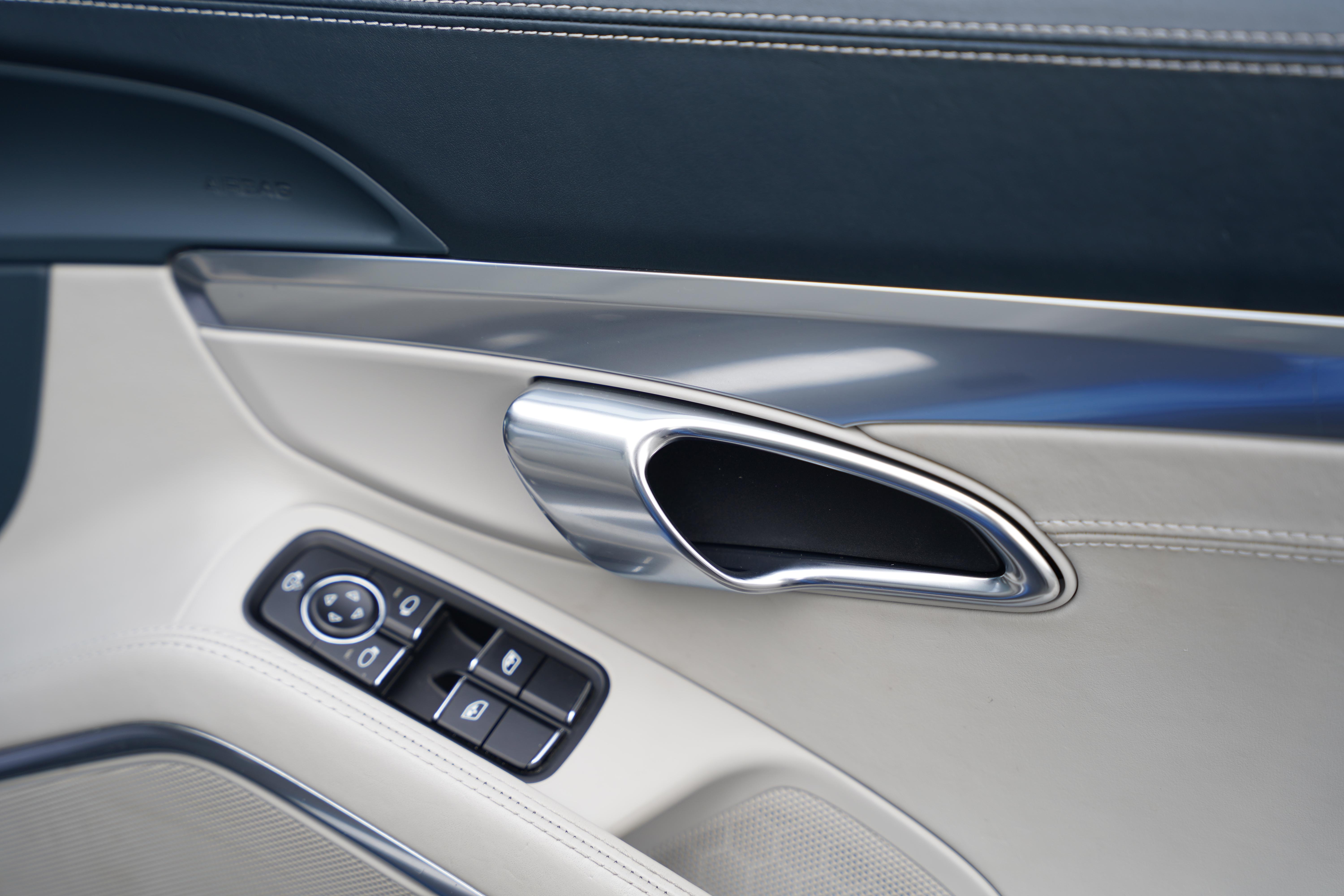 The full leather interior is presented in Chalk, with a wonderful subtly contrasting Graphite Blue leather to the dash top, steering wheel, door tops and centre console, featuring a contrast stitch. This overall combination makes for a wonderfully specified colourway that catches the eye whilst remaining luxurious.