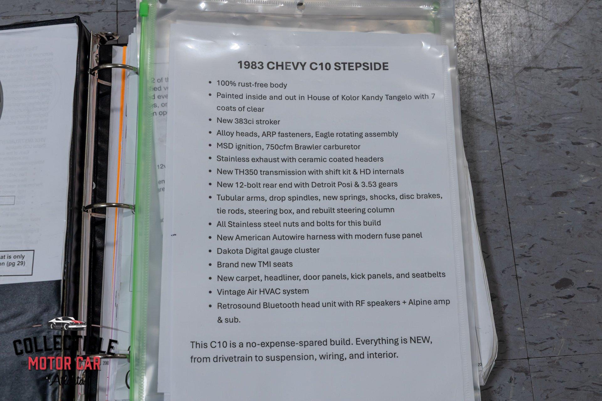 1983 Chevrolet C10 Stepside - 383 Stroker / TH350 / Vintage Air / Kandy Tangelo
