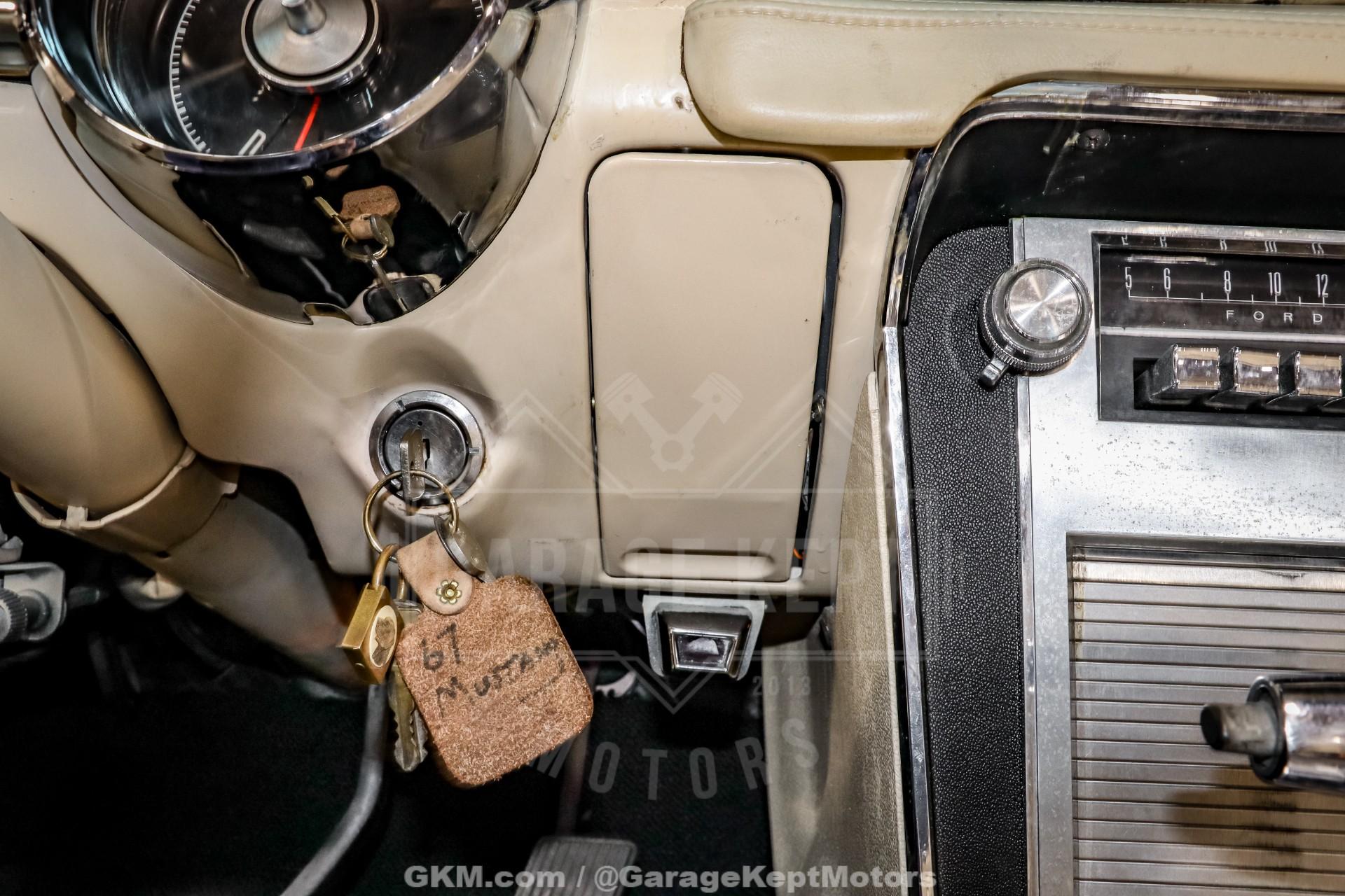1967 Ford Mustang Convertible- 289ci V8- Automatic Transmission- Red Exterior- Black Convertible Top- White InteriorStep back in time and experience the classic allure of American muscle with this stunning 1967 Ford Mustang Convertible, now available at Garage Kept Motors. This iconic vehicle embodies the spirit of the 1960s with its timeless design and exhilarating performance, making it a must-have for any classic car enthusiast or collector.This Mustang is a true head-turner, featuring a vibrant red exterior that captures the essence of the era. The sleek lines and aggressive stance of the Mustang are complemented by the black convertible top, which adds a touch of elegance and versatility. Whether you're cruising down the highway or parked at a car show, this Mustang is sure to draw admiration from onlookers.Step inside to find a beautifully preserved white interior that offers a striking contrast to the red exterior. The cabin is a testament to the craftsmanship of the 1960s, with attention to detail evident in every stitch and surface. The seats are comfortable and supportive, providing an enjoyable driving experience whether you're on a short drive or a long road trip.Under the hood lies the heart of this classic beautya powerful 289 cubic inch V8 engine. Known for its reliability and performance, this engine delivers a thrilling driving experience with its smooth power delivery and unmistakable V8 rumble. Paired with an automatic transmission, this Mustang offers both ease of use and the excitement of a true muscle car.This 1967 Ford Mustang Convertible is more than just a car; it's a piece of automotive history. Its combination of classic styling, powerful performance, and low mileage makes it a truly special vehicle. Whether you're a collector looking to add to your collection or an enthusiast seeking the thrill of driving a classic muscle car, this Mustang is sure to exceed your expectations.Visit Garage Kept Motors today to see this exceptional 1967 Ford Mustang Convertible in person. Don't miss your chance to own a piece of American automotive heritage.