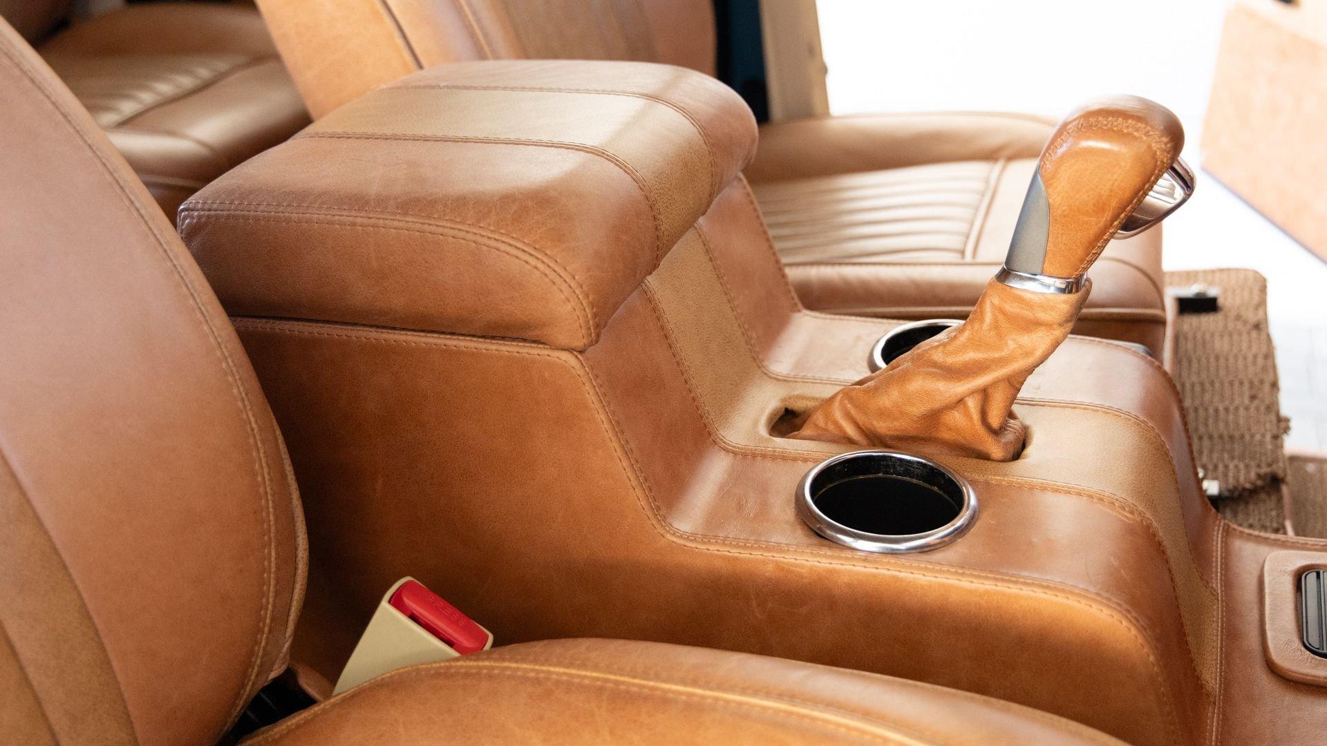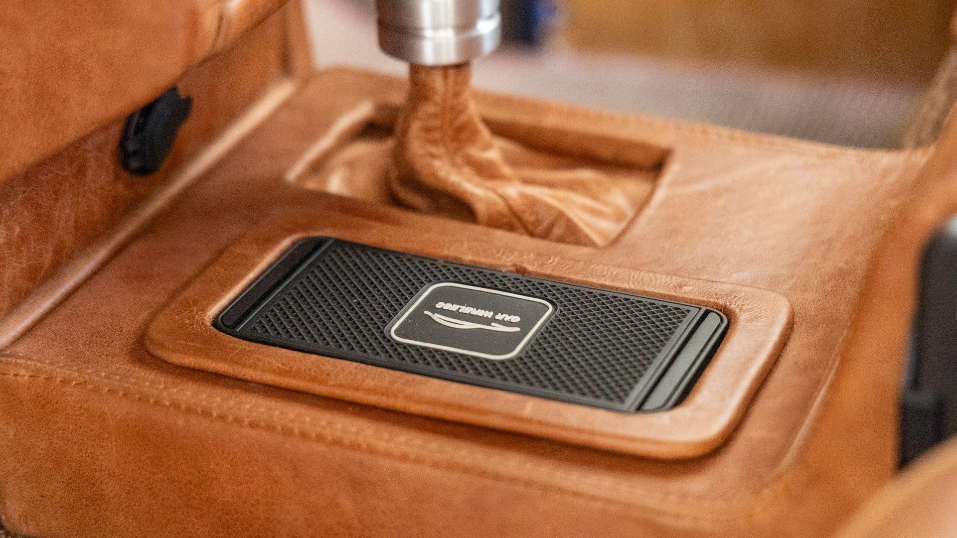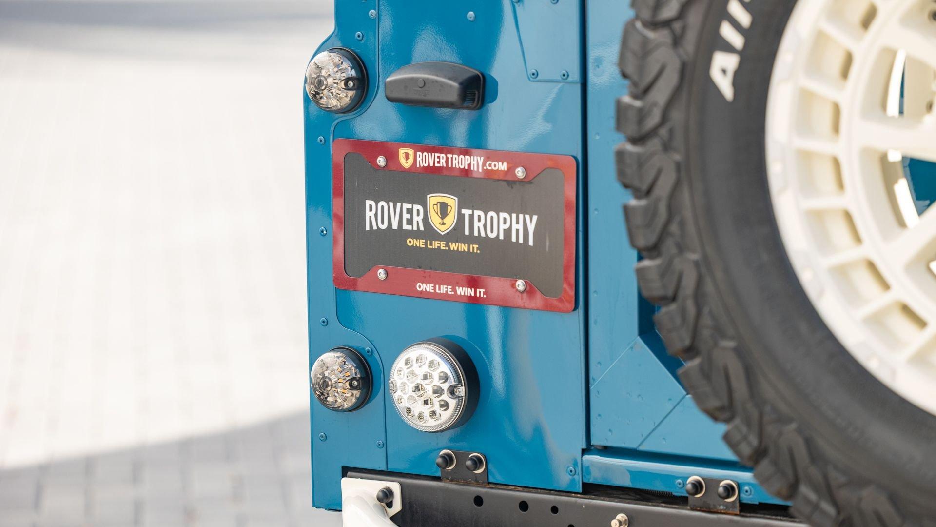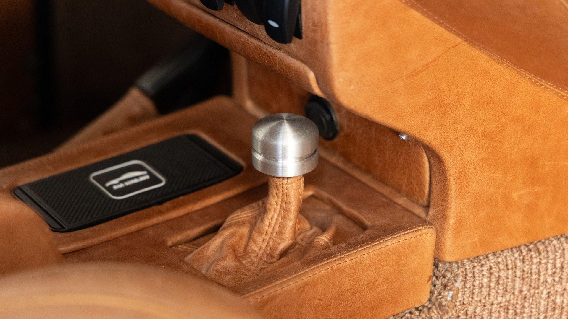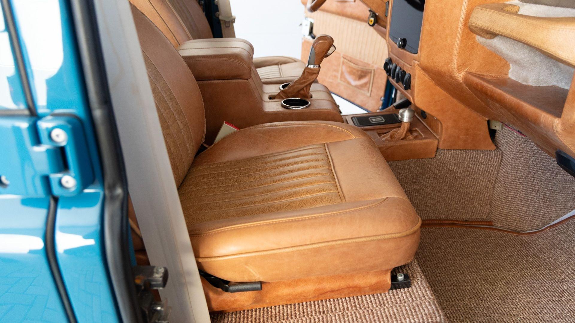 The Rover Trophy's bespoke interior is trimmed in hand-sewn Saddle Bag Brown leather and optioned with custom teak interior flooring and a larger entertainment system. Standard amenities are plentiful and include Ministry of Defender air conditioning, Speed Hut custom gauges, and a Kenwood entertainment center with Apple CarPlay with eight-speaker surround sound for the fortunate forward-facing occupants seated in custom-designed captain seats again in Saddle Bag Brown leather. A full accounting of the impressive standard features list is accounted on the Rover Trophy window sticker produced by the company that totals an impressive $245,000.