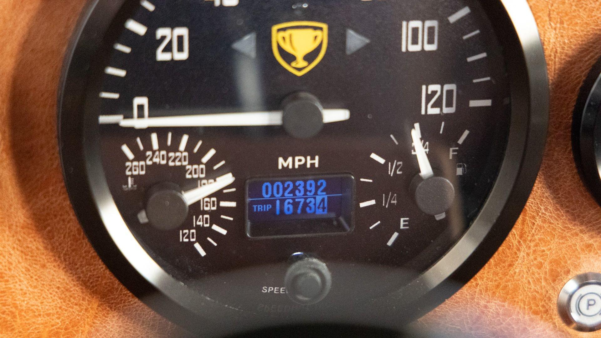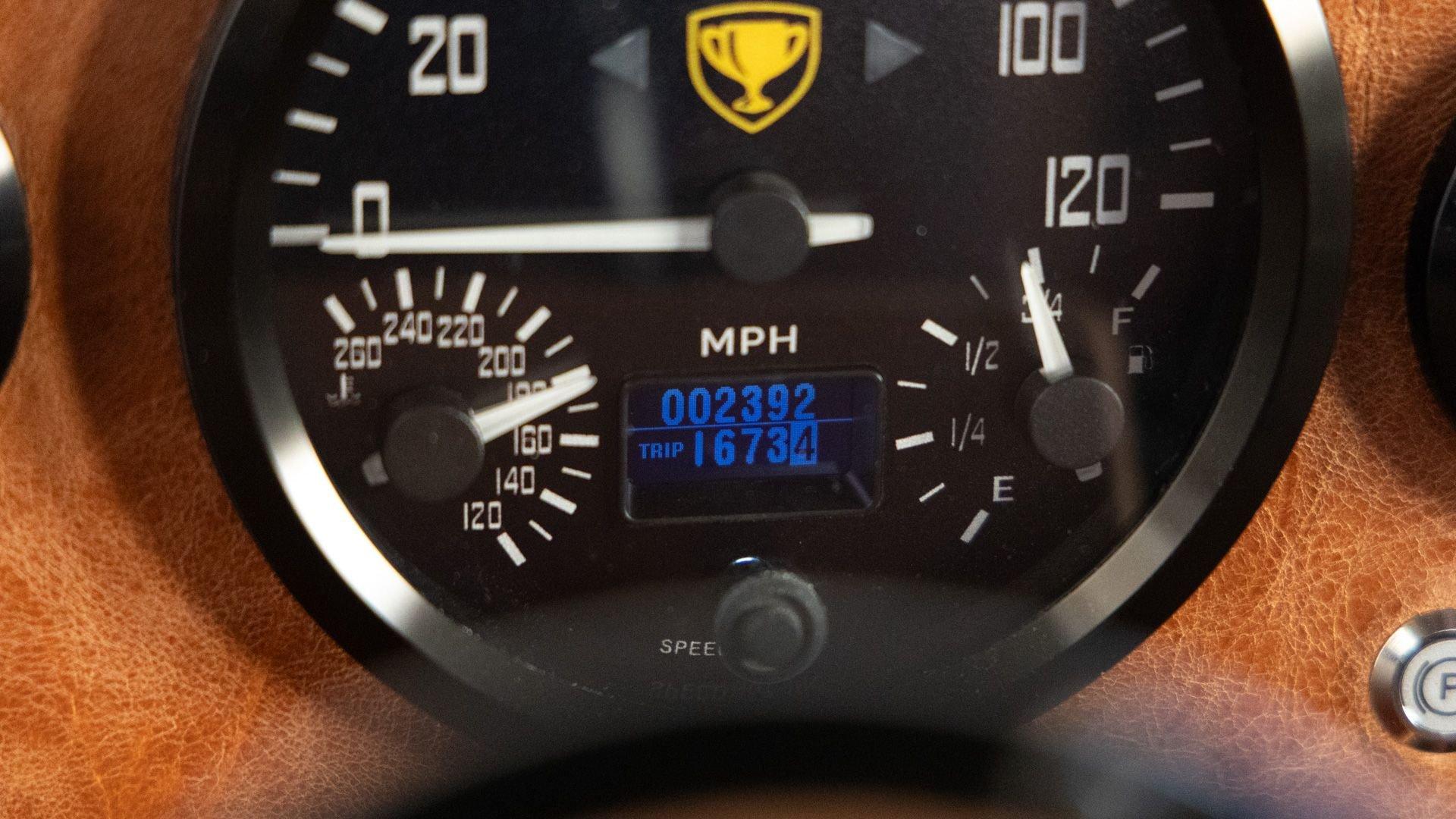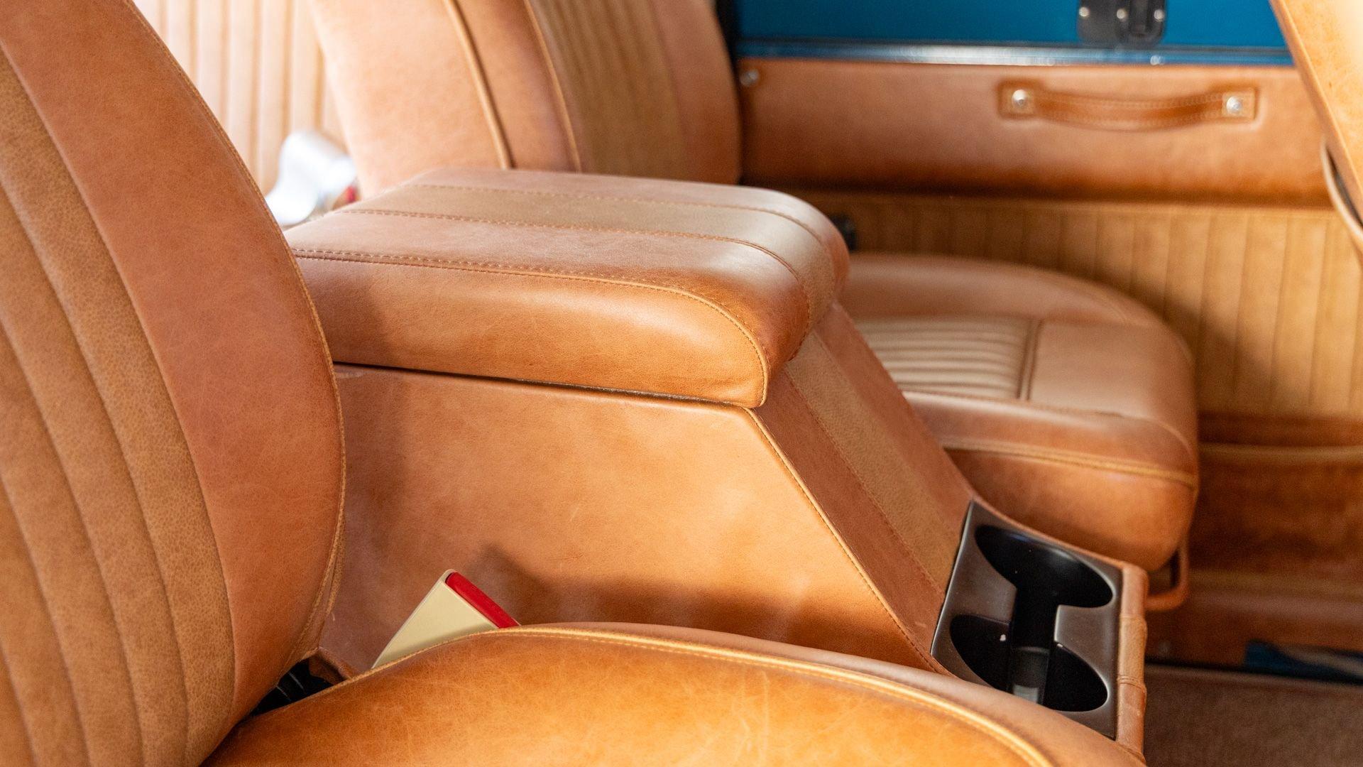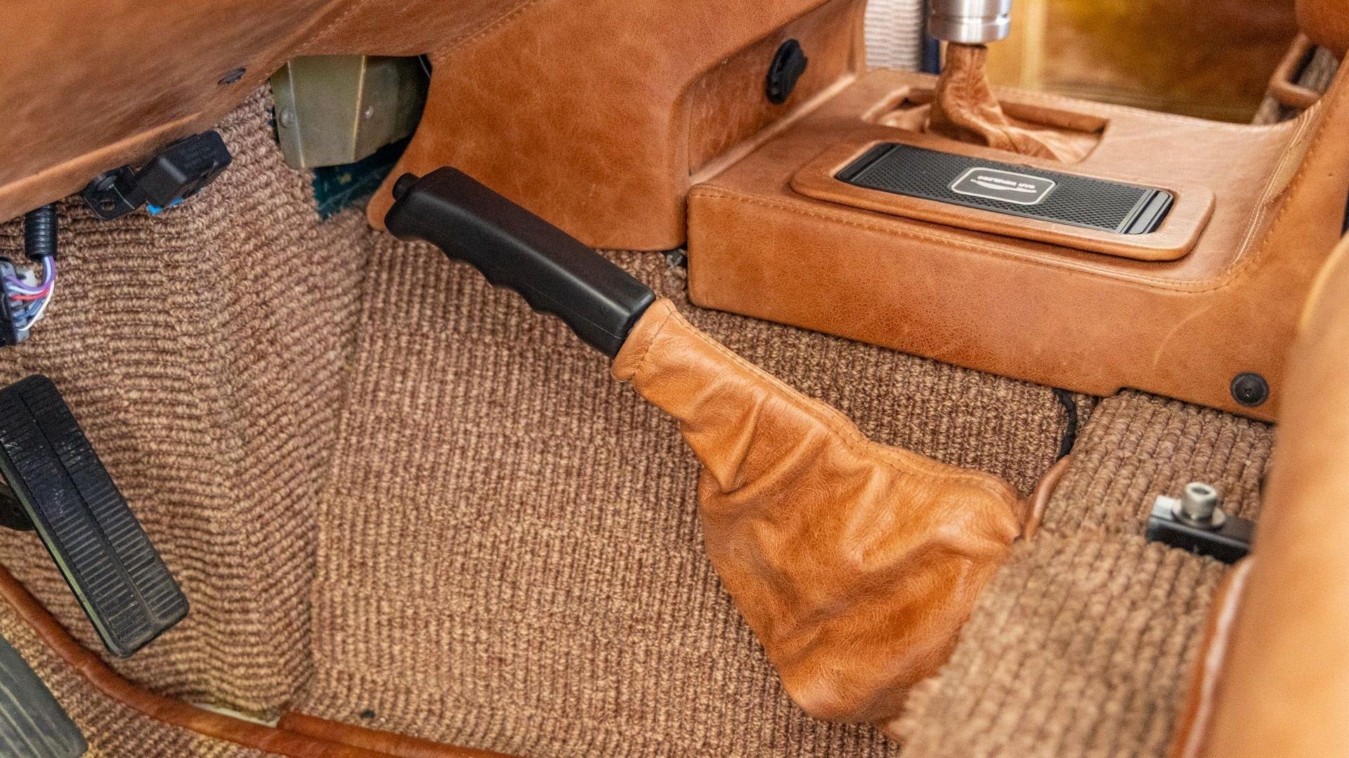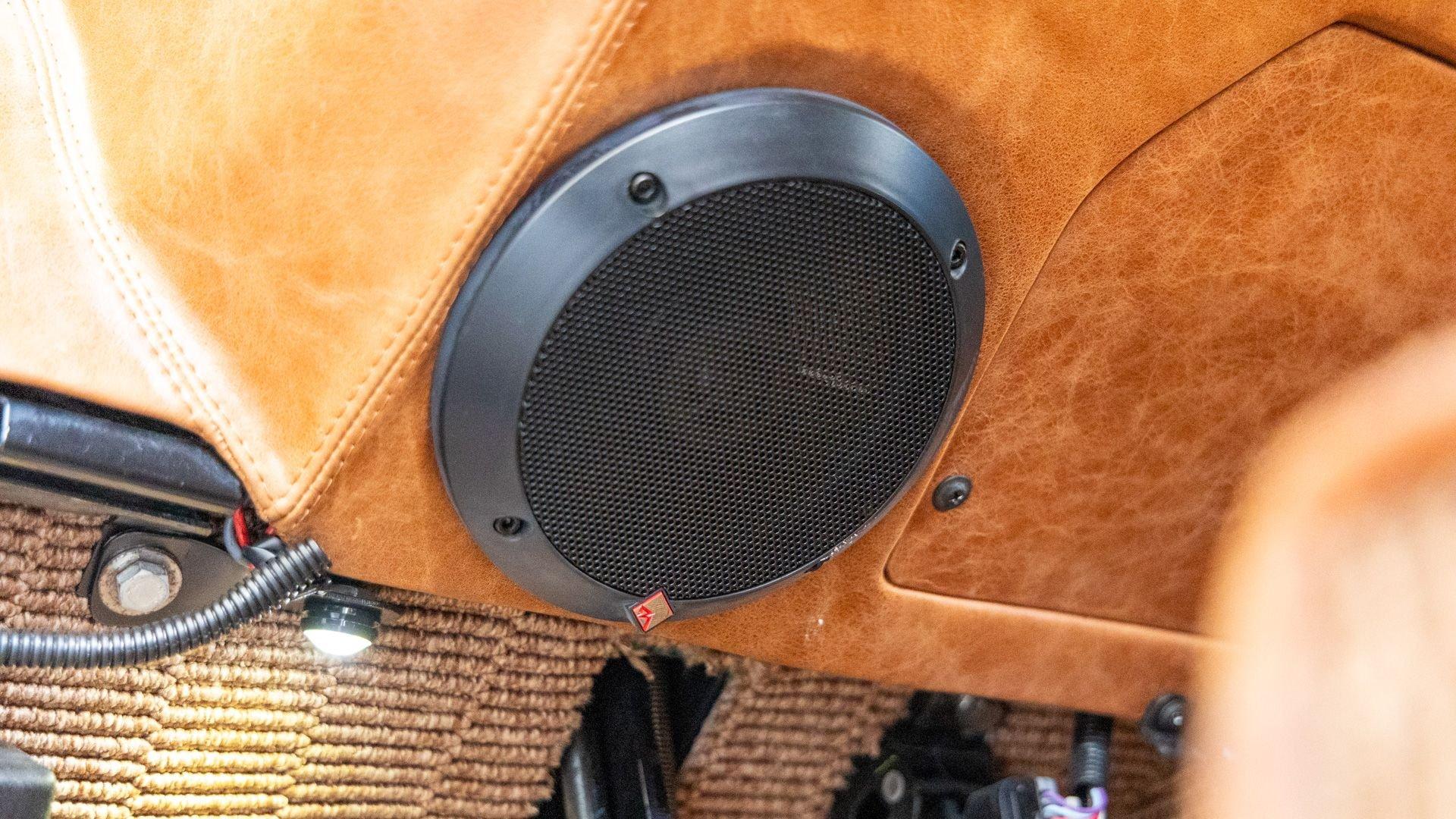 The Rover Trophy's bespoke interior is trimmed in hand-sewn Saddle Bag Brown leather and optioned with custom teak interior flooring and a larger entertainment system. Standard amenities are plentiful and include Ministry of Defender air conditioning, Speed Hut custom gauges, and a Kenwood entertainment center with Apple CarPlay with eight-speaker surround sound for the fortunate forward-facing occupants seated in custom-designed captain seats again in Saddle Bag Brown leather. A full accounting of the impressive standard features list is accounted on the Rover Trophy window sticker produced by the company that totals an impressive $245,000.