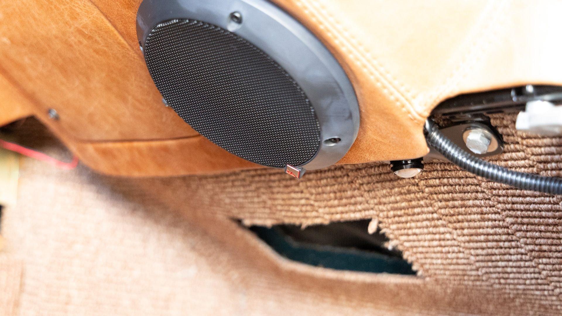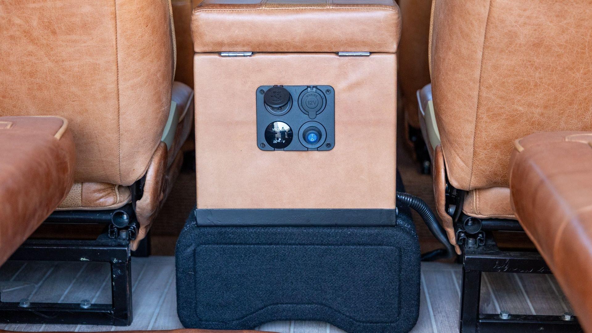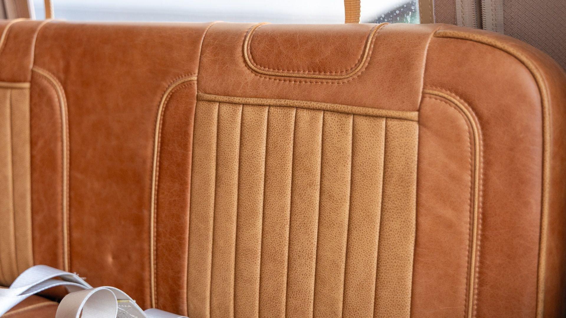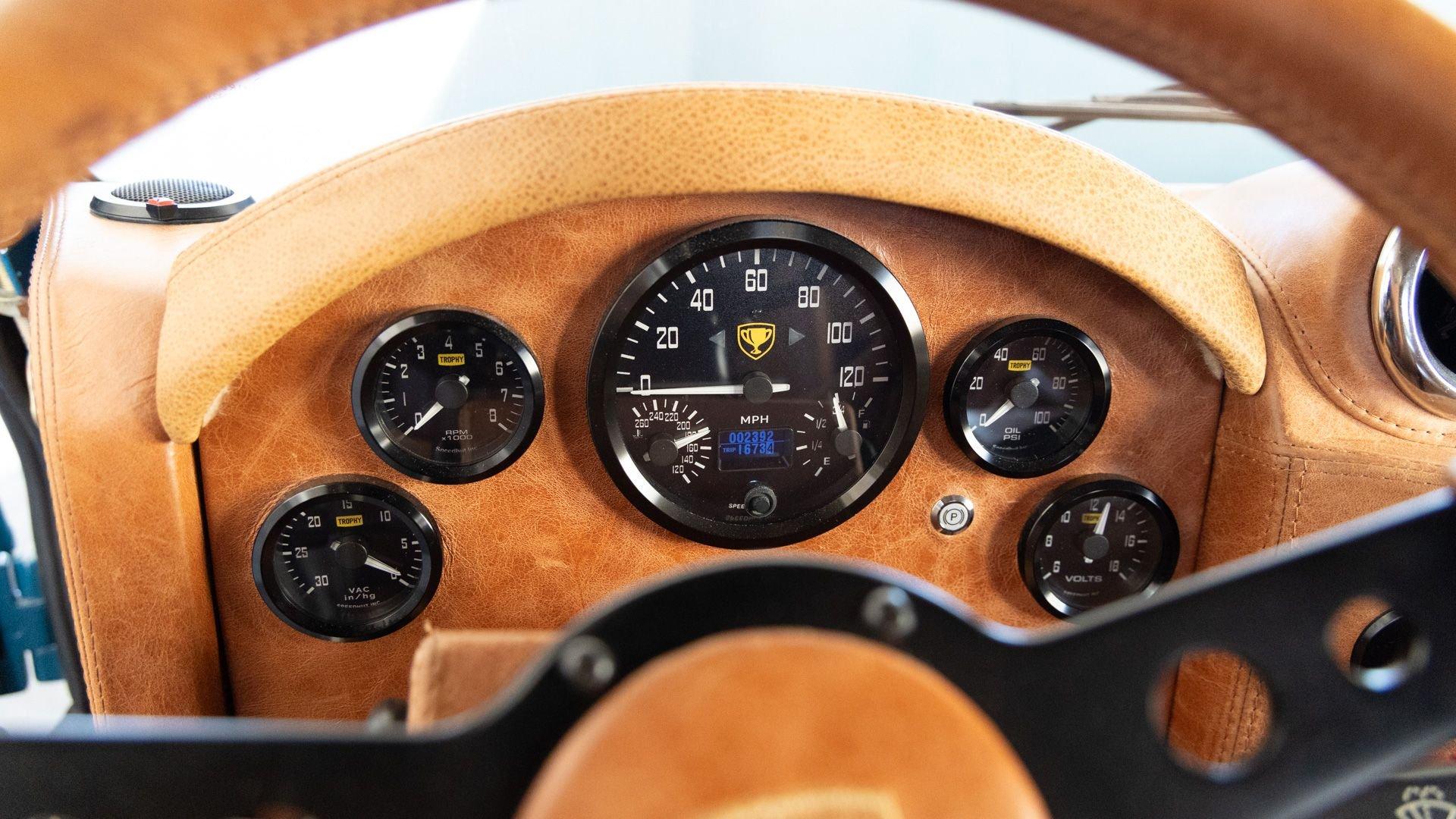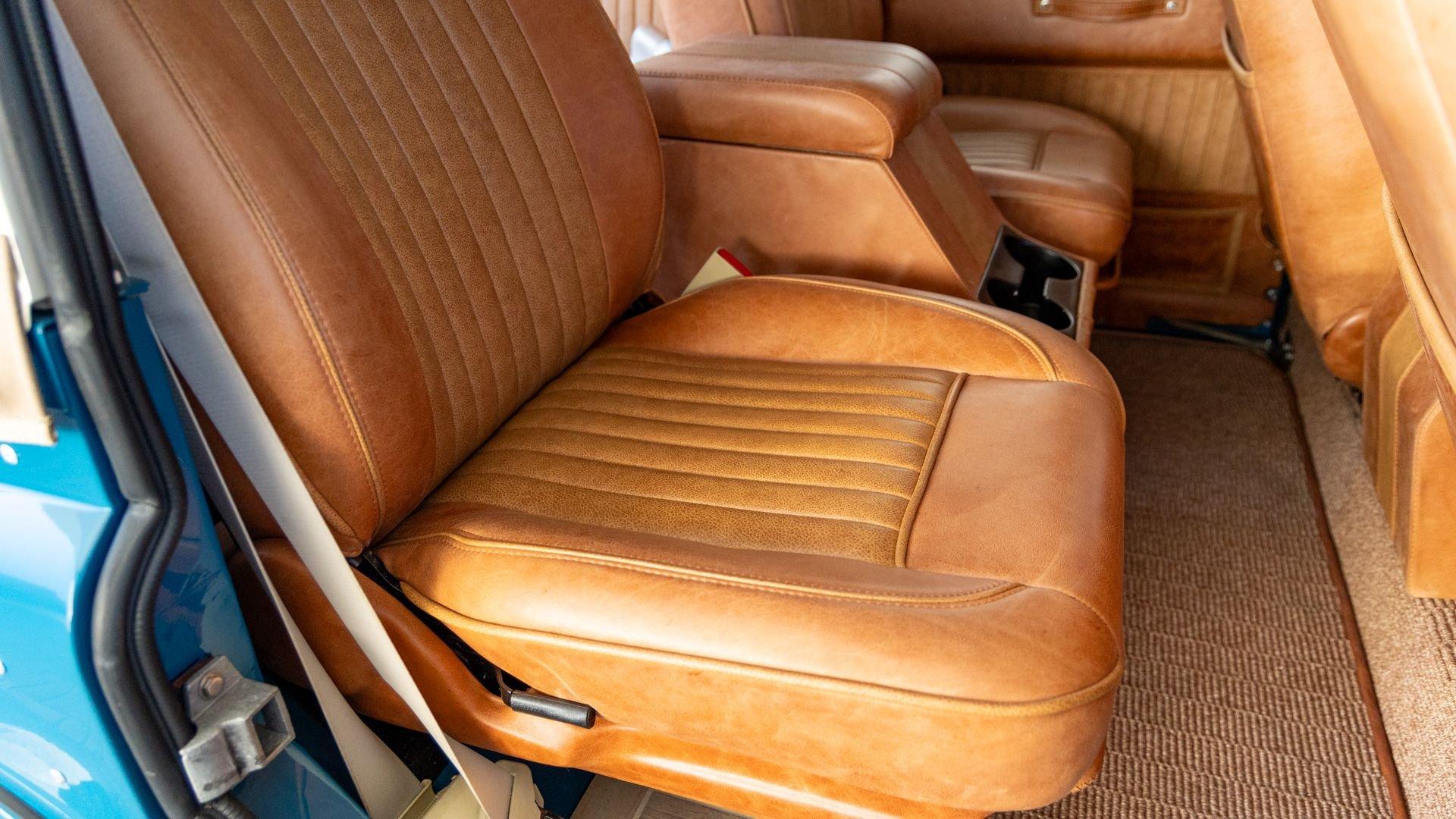 The Rover Trophy's bespoke interior is trimmed in hand-sewn Saddle Bag Brown leather and optioned with custom teak interior flooring and a larger entertainment system. Standard amenities are plentiful and include Ministry of Defender air conditioning, Speed Hut custom gauges, and a Kenwood entertainment center with Apple CarPlay with eight-speaker surround sound for the fortunate forward-facing occupants seated in custom-designed captain seats again in Saddle Bag Brown leather. A full accounting of the impressive standard features list is accounted on the Rover Trophy window sticker produced by the company that totals an impressive $245,000.