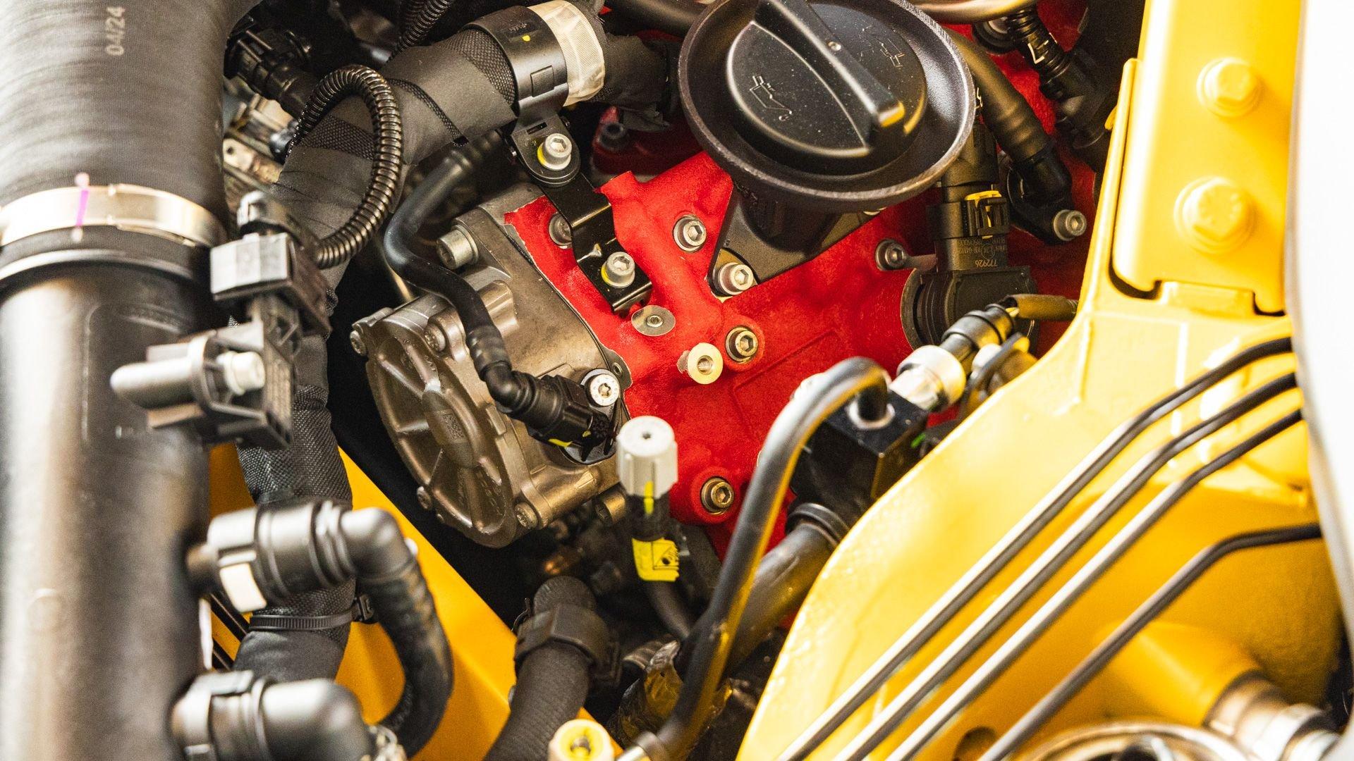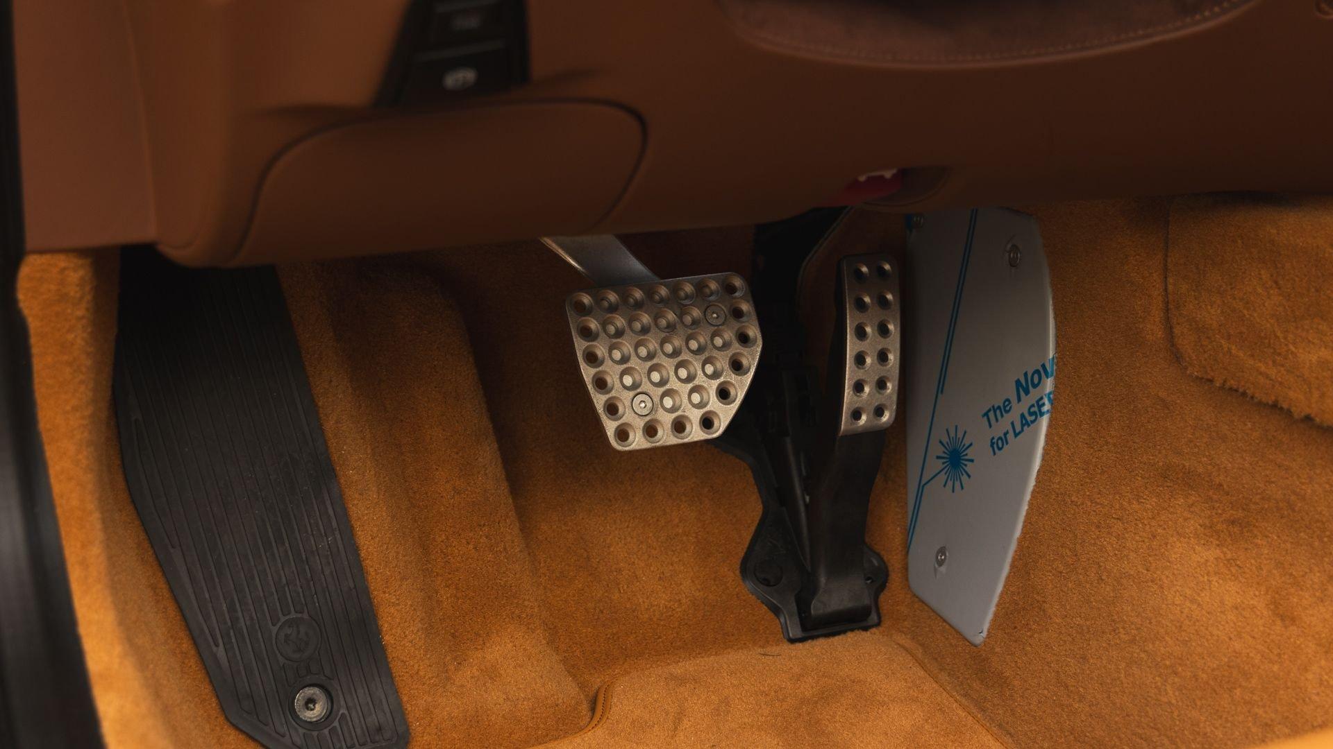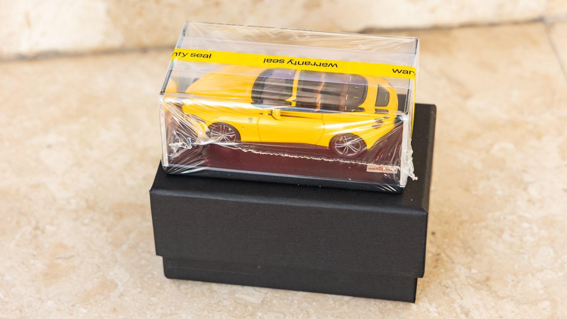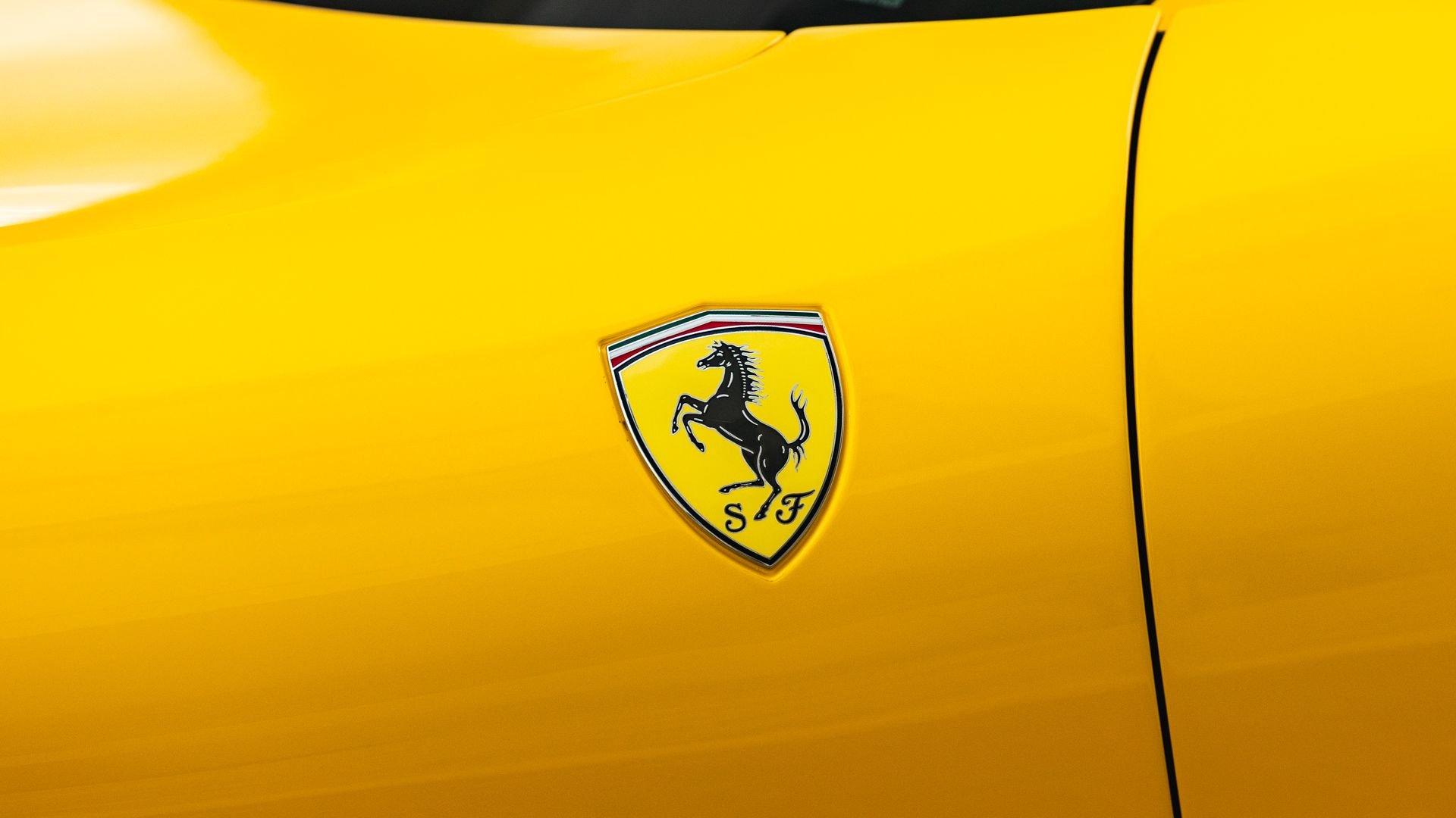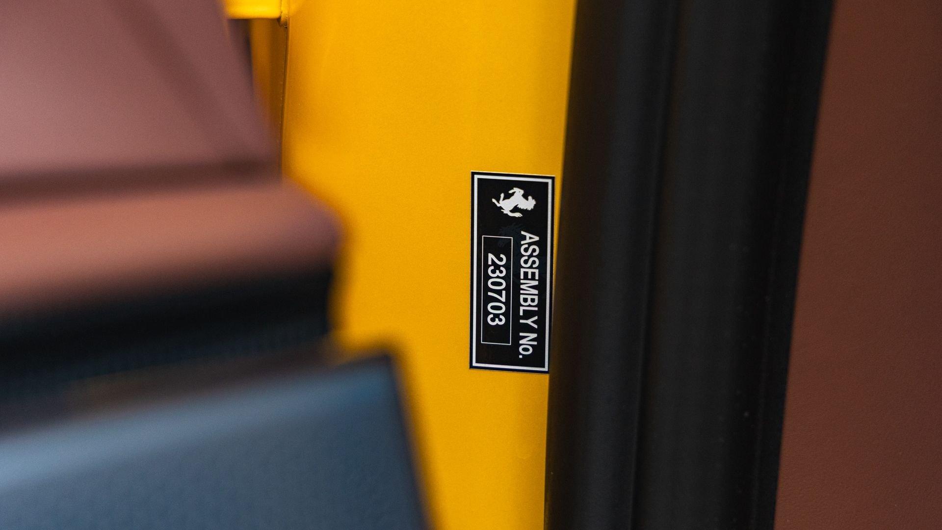 Specified in Extracampionario Giallo Triplo Strato over two-tone Beige Tradizione and Terra Bruciata leather, this 2024 Roma Spider presents a sophisticated, highly optioned configuration with numerous carbon-fiber upgrades. Exposed gloss carbon-fiber adorns the front spoiler, rear active aero spoiler, rear diffuser, exterior sill kick plates, and under-door covers, while extending the theme inside are carbon-fiber and dashboard inserts and upper tunnel trim, a carbon fiber-steering wheel with LED shift lights, and even a carbon-fiber vehicle key. Diamond-polished 20-inch forged wheels frame gold brake calipers, with black tailpipe tips and “Scuderia Ferrari” fender shields rounding out the impressive exterior specification.