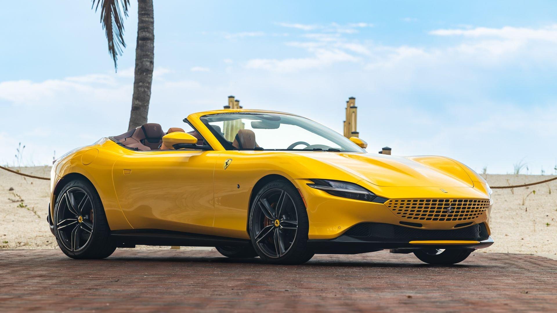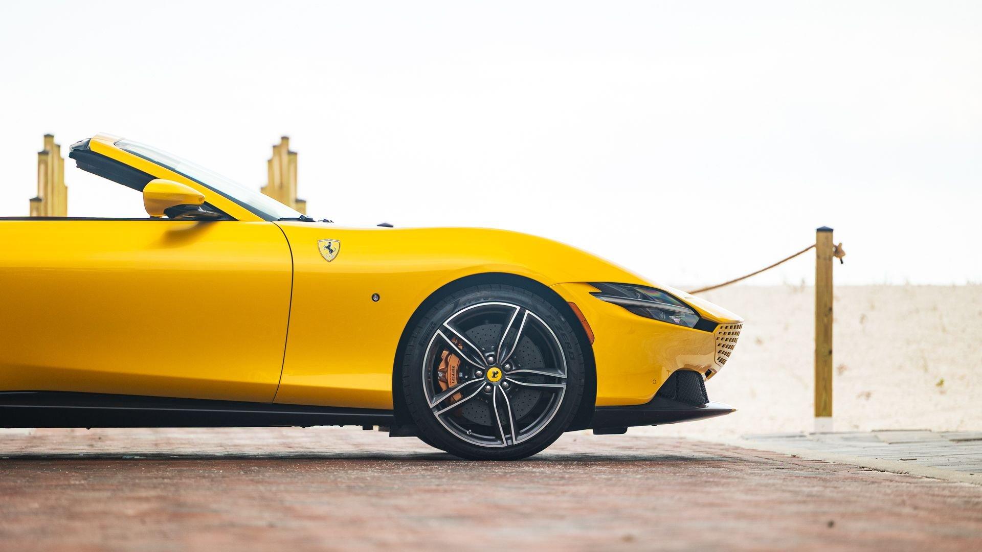 With the Roma Spider, Ferrari revived the romance of its front-engined open tourers of the 1950s and 1960s, marking the return of the conventional soft top to the Prancing Horse range on a front-engine car for the first time in 54 years. The Spider translated that spirit into a modern 2+2, clothed in a stunning silhouette with a shark-nosed prow, rising rear hips, and an integrated three-position spoiler. Beneath the beauty, it shared the Roma coupe's twin-turbo 3.9-liter V8 rated at 612 horsepower, paired with the eight-speed dual-clutch transaxle from the SF90. Top down, the car's soundtrack poured into the cabin, delivering la dolce vita in full color on any coastal road.