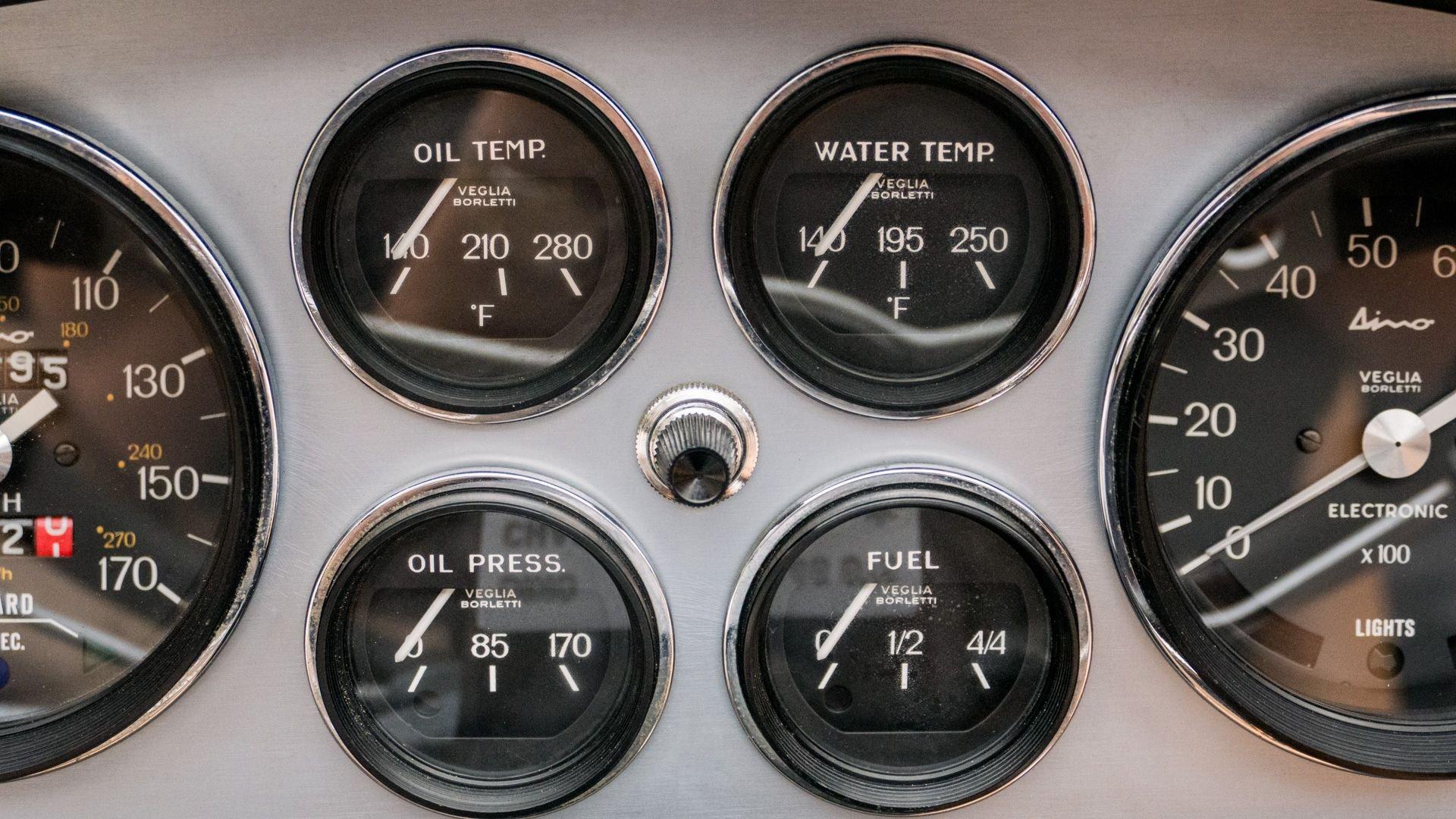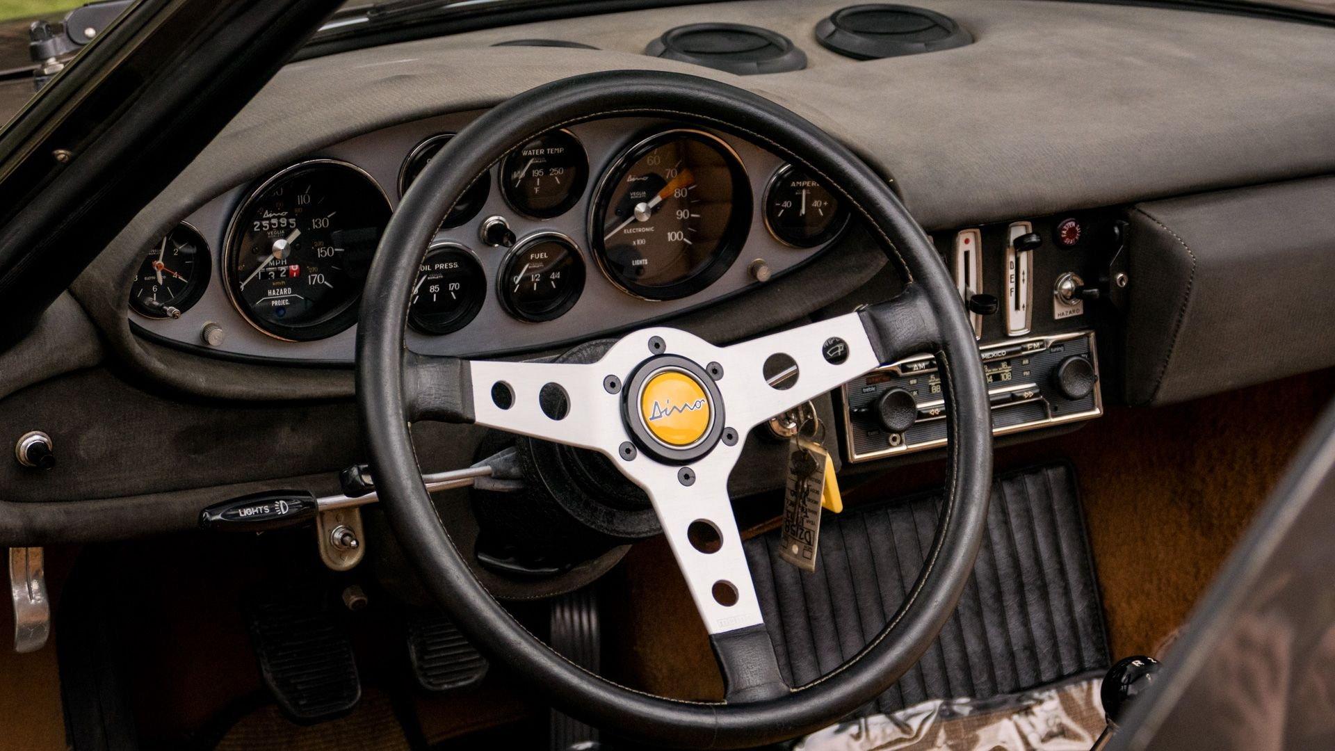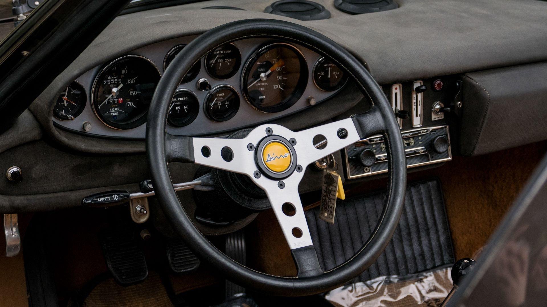 Built to U.S. specifications, this left-hand-drive Dino was equipped with the desirable and practical options of air conditioning and power windows, while retaining its standard Cromodora wheels, which suit the car particularly well.