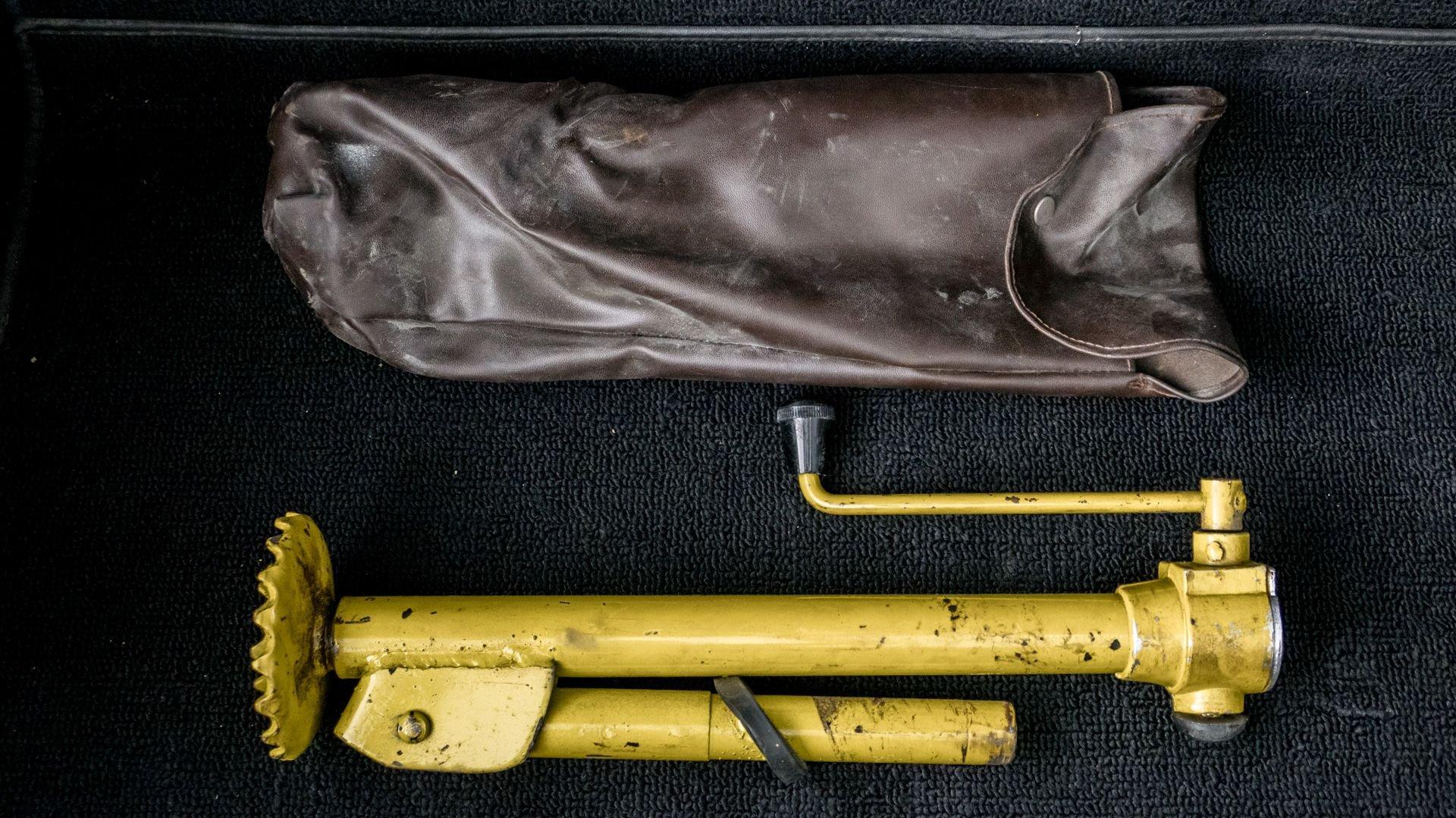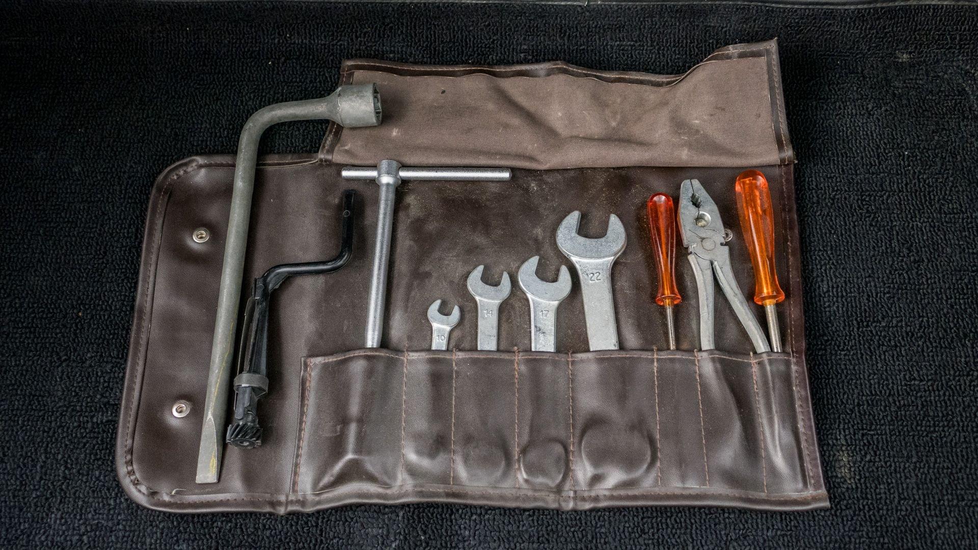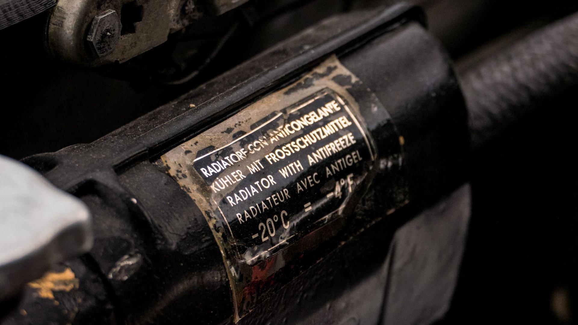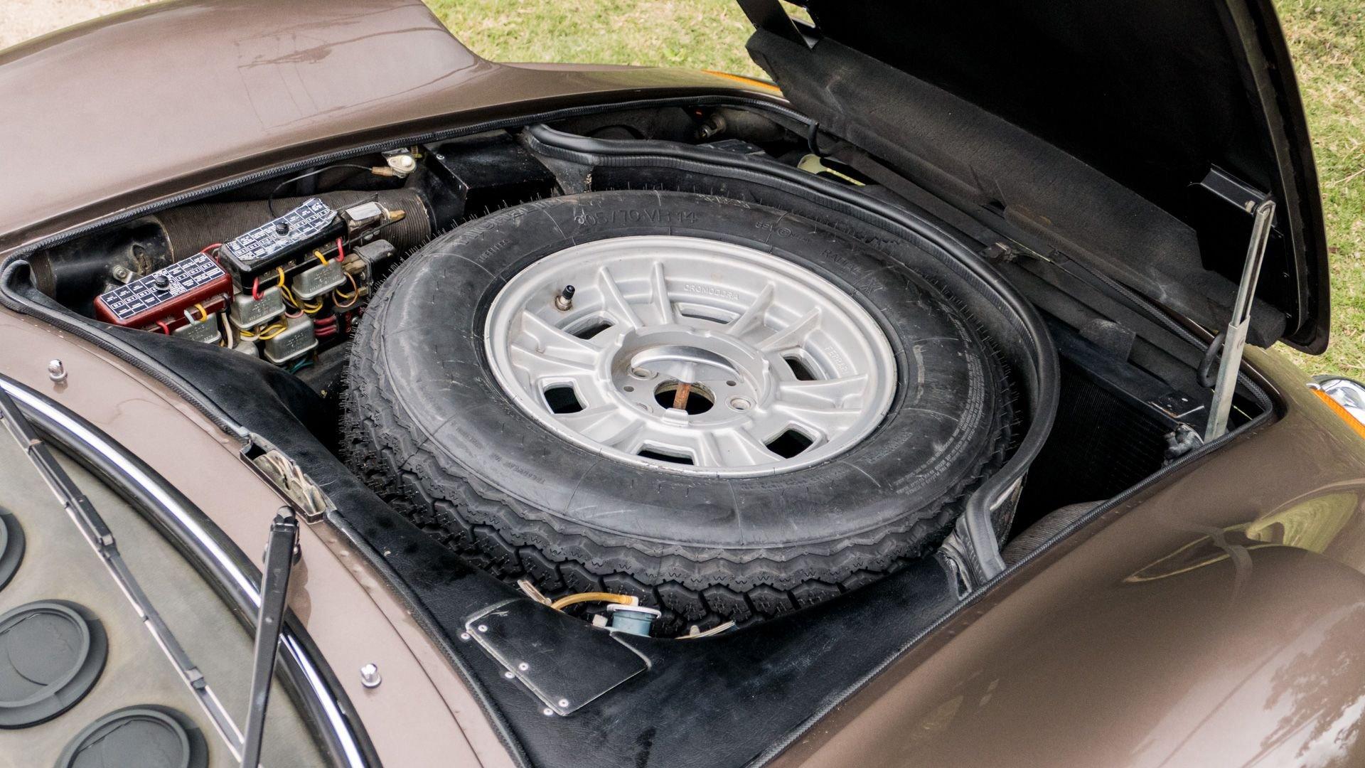 Under prior ownership, the car benefited from extensive servicing in 2021, including the installation of a new stainless steel exhaust system, Koni shock absorbers, suspension bushings, tires, a battery, and door and roof seals, in addition to a rebuild of the carburetors, electrical system repairs, and a recharge of the air-conditioning system, which had been converted to R134a refrigerant in 2009. Additionally, a replacement clutch was installed in 2016, and a Becker Mexico cassette stereo was rebuilt by Becker AutoSound of Saddle Brook, New Jersey, in 2012.